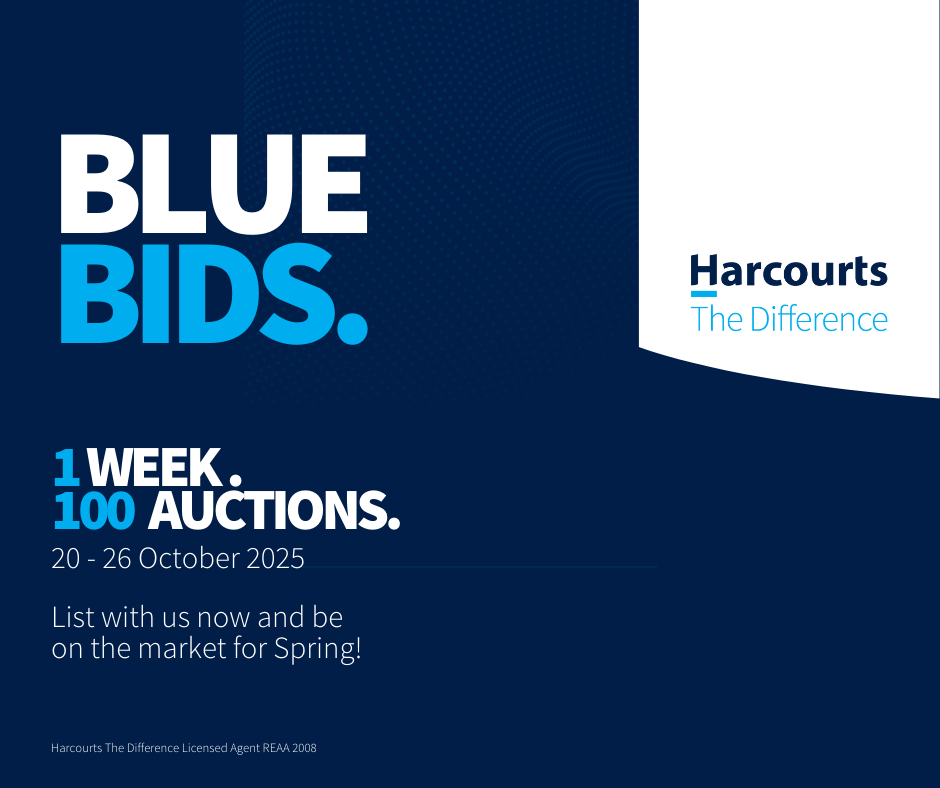 And finally, keep an eye out for Blue Bids – Harcourts' massive spring initiative with 100 properties up for auction in just one week. You'll definitely want to be part of this!