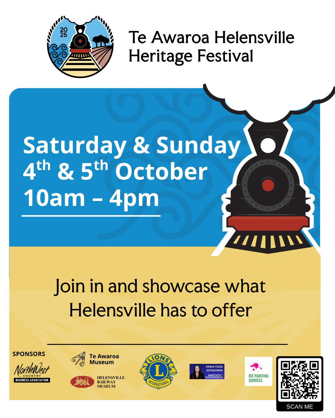 2025 marks a major milestone – 150 years since the railway first came to Helensville – and the community is celebrating in style at the Te Awaroa / Helensville Heritage Festival.