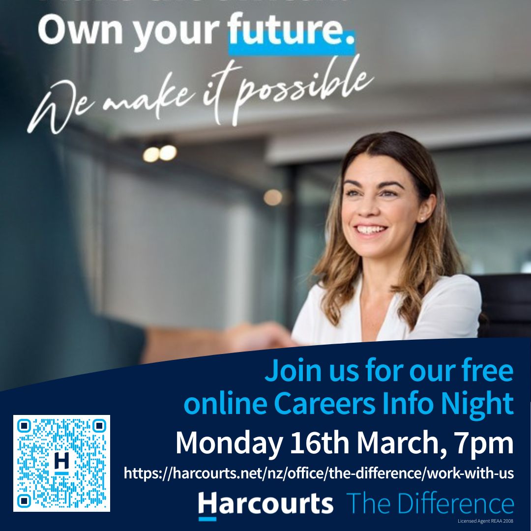 We're on the lookout for people who want more than just a job. They want to make a real difference. Join us for our Harcourts Online Career Evening on Monday 16th March and discover how you can grow with a team that values people, community, and success.