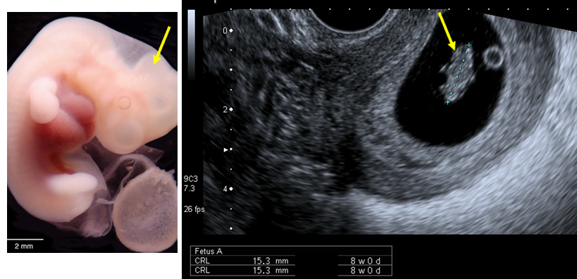 At 8 weeks, more and more parts of the anatomy start to become apparent such as the: