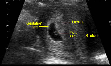 C. Incorrect. Although the yolk sac is an important sign of a developing pregnancy and may be seen before you can confidently see the embryo, it does not assure you that the baby is alive. See image below.