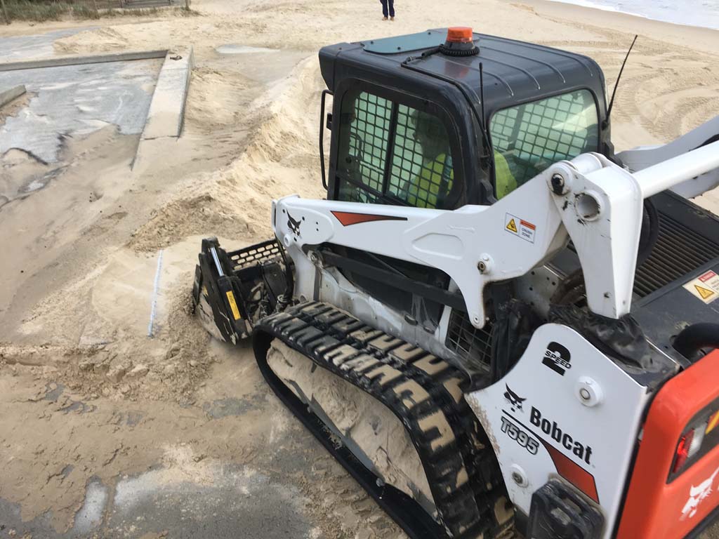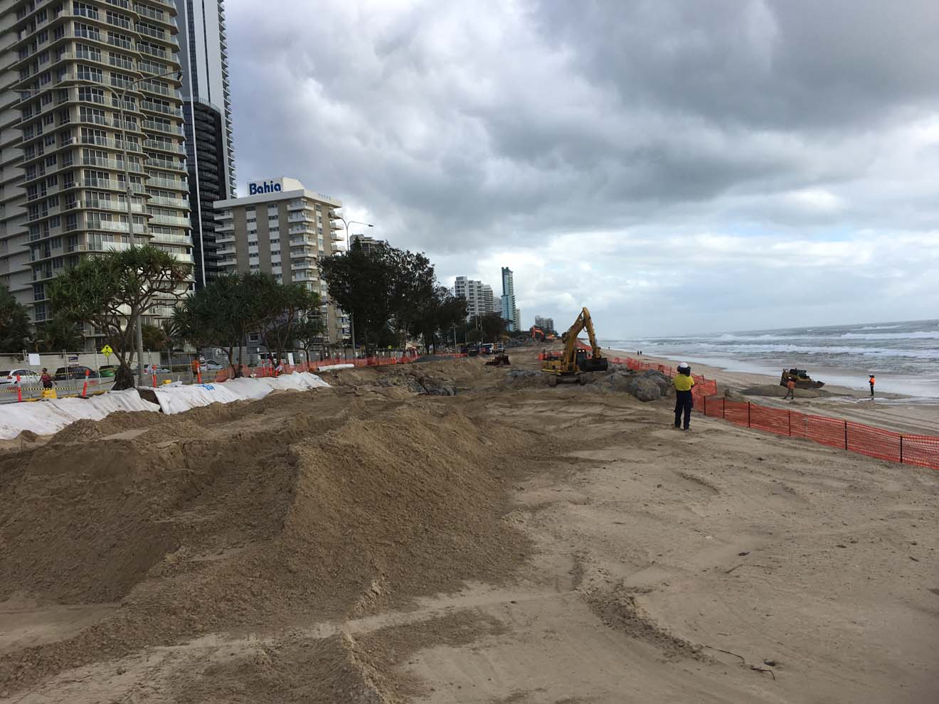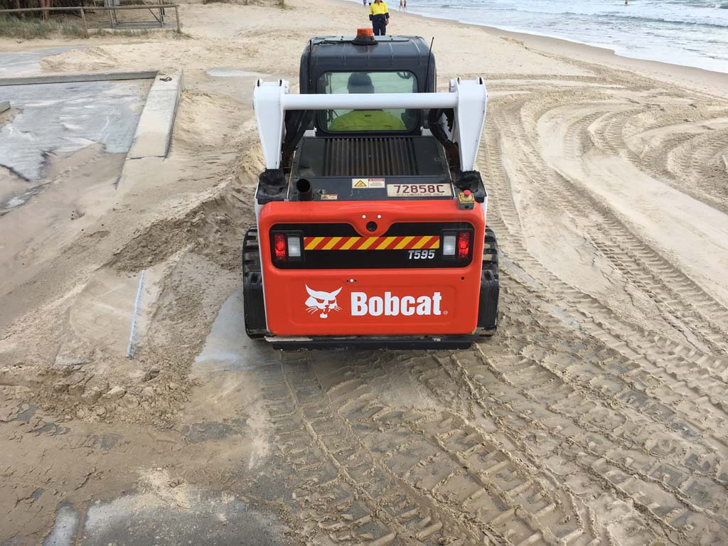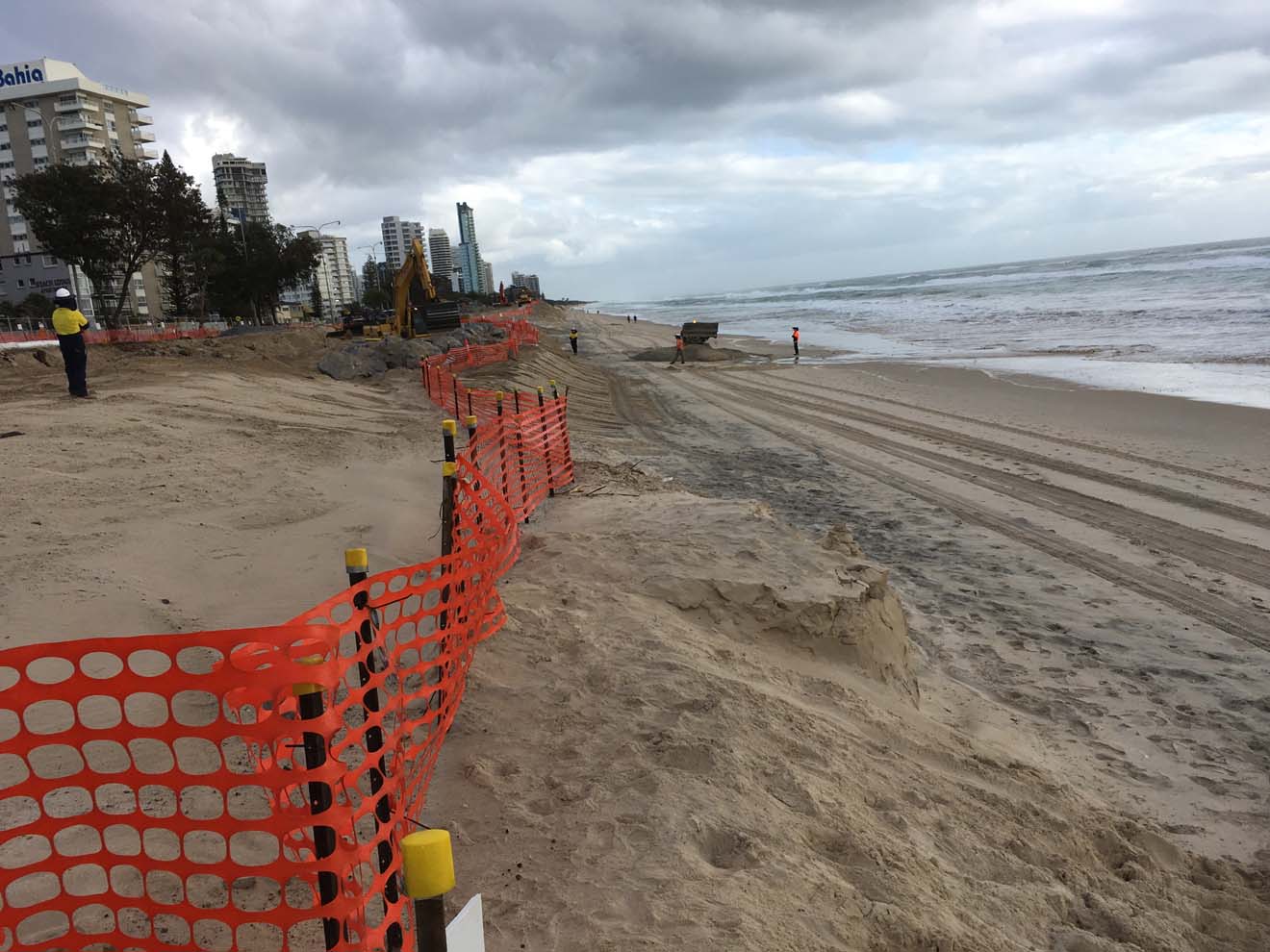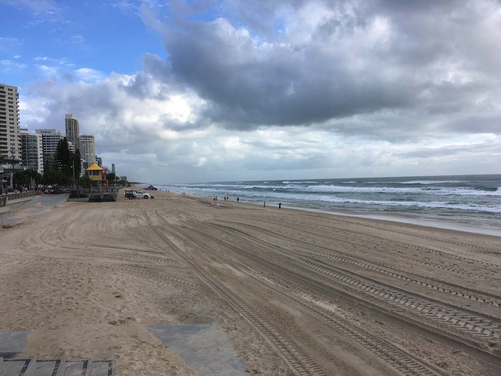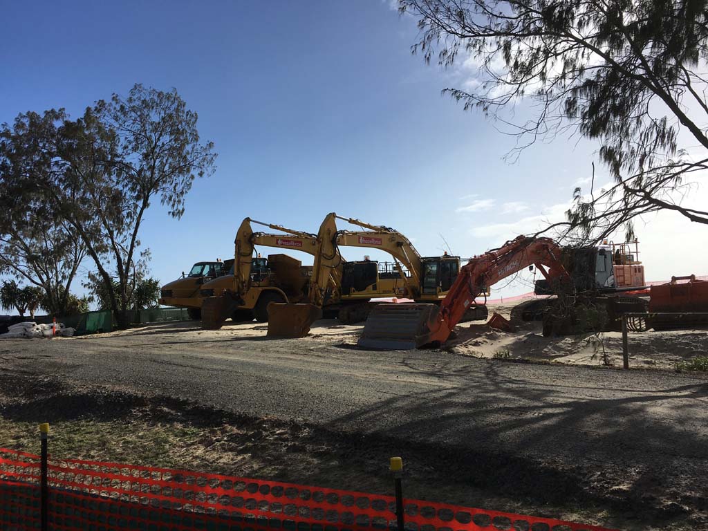 Saturday 23rd Feb - All the 'TONKA' trucks which atre restoring the beach, are parked up high and dry.
