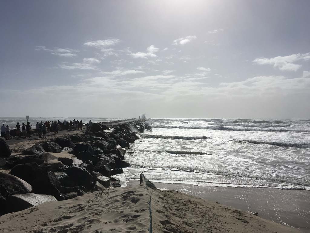 Saturday 23rd Feb - The people gathered at the seawall to check out the waves. It was well worth the ride. The waves were impressive.