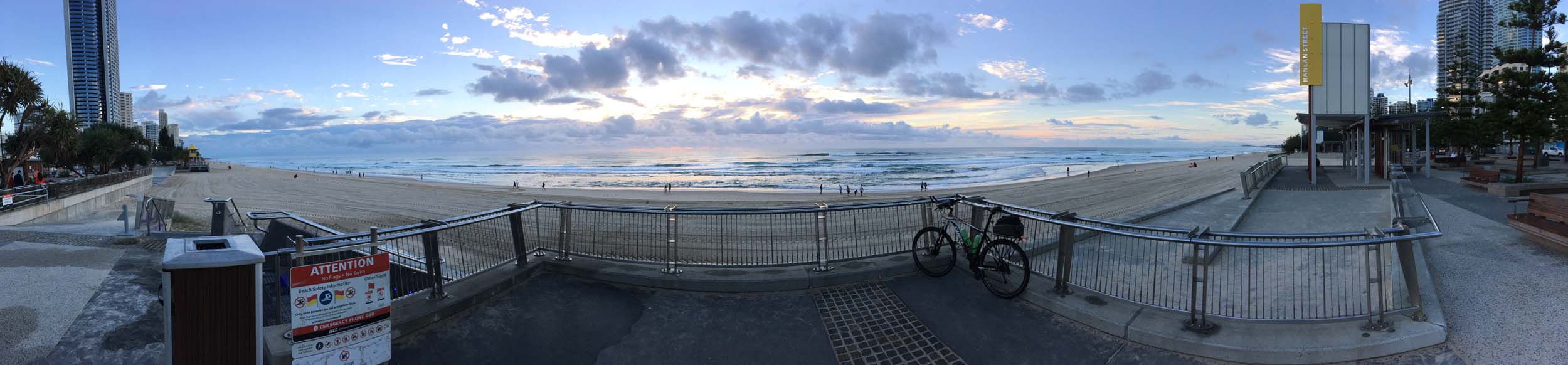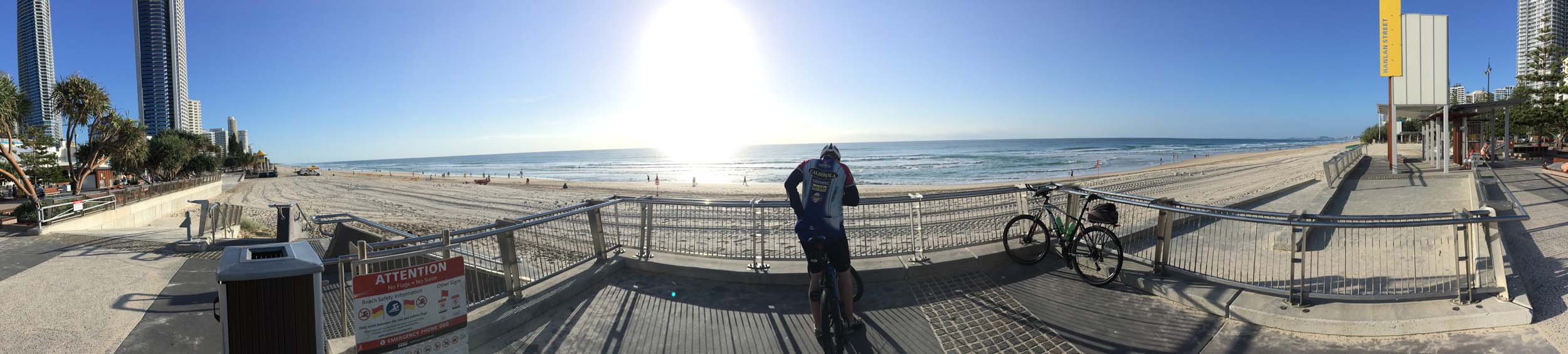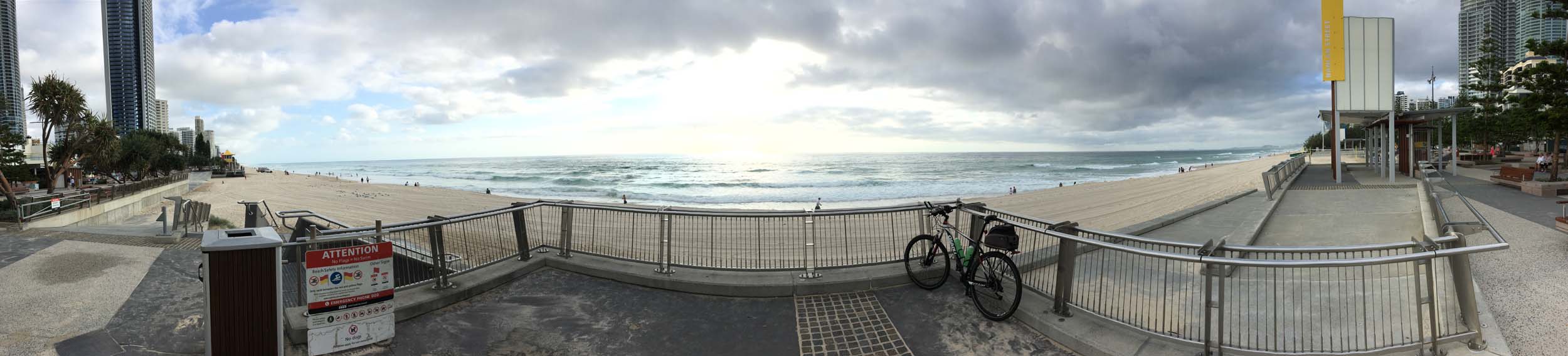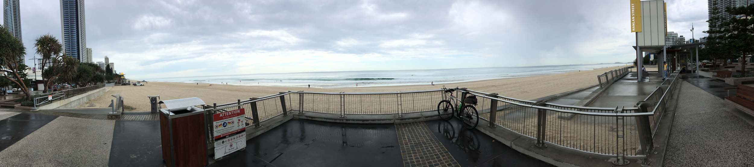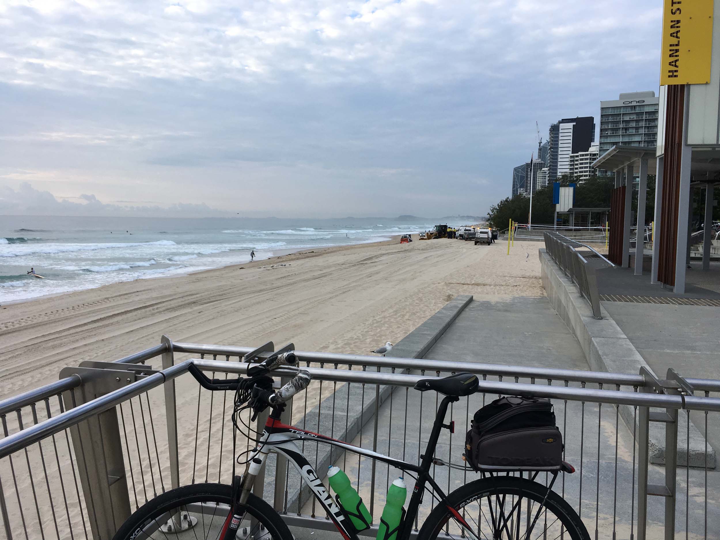 I left at 7:15am. I rode my normal Surfers/Spit via MacIntosh Park route to Broadbeach.