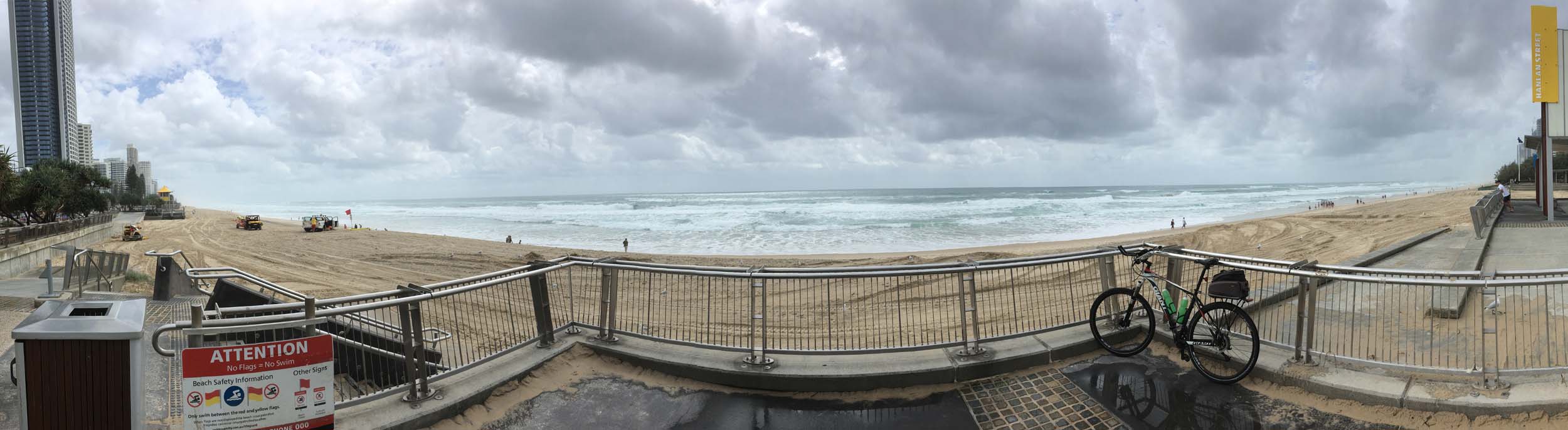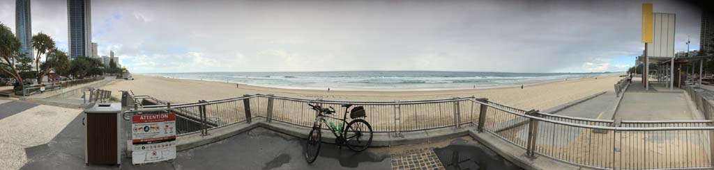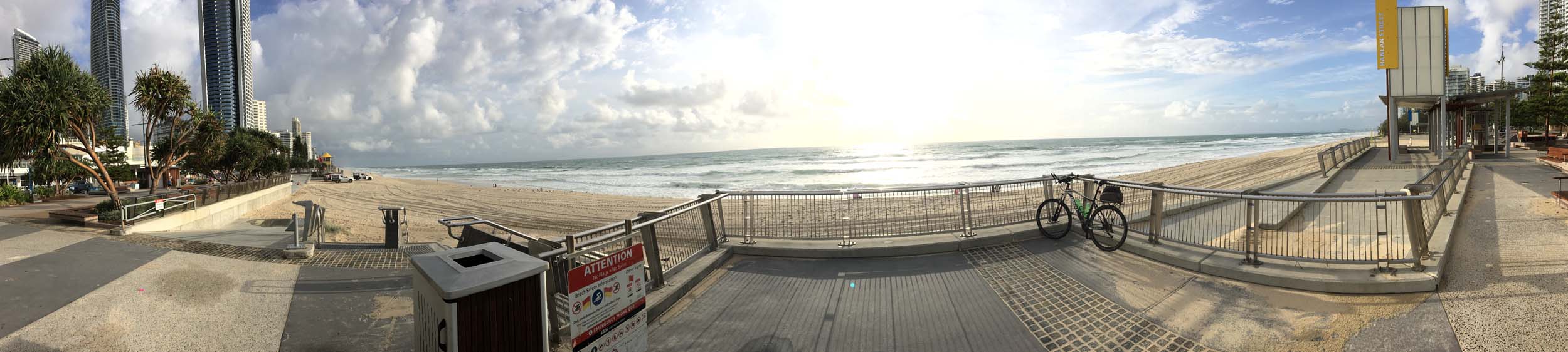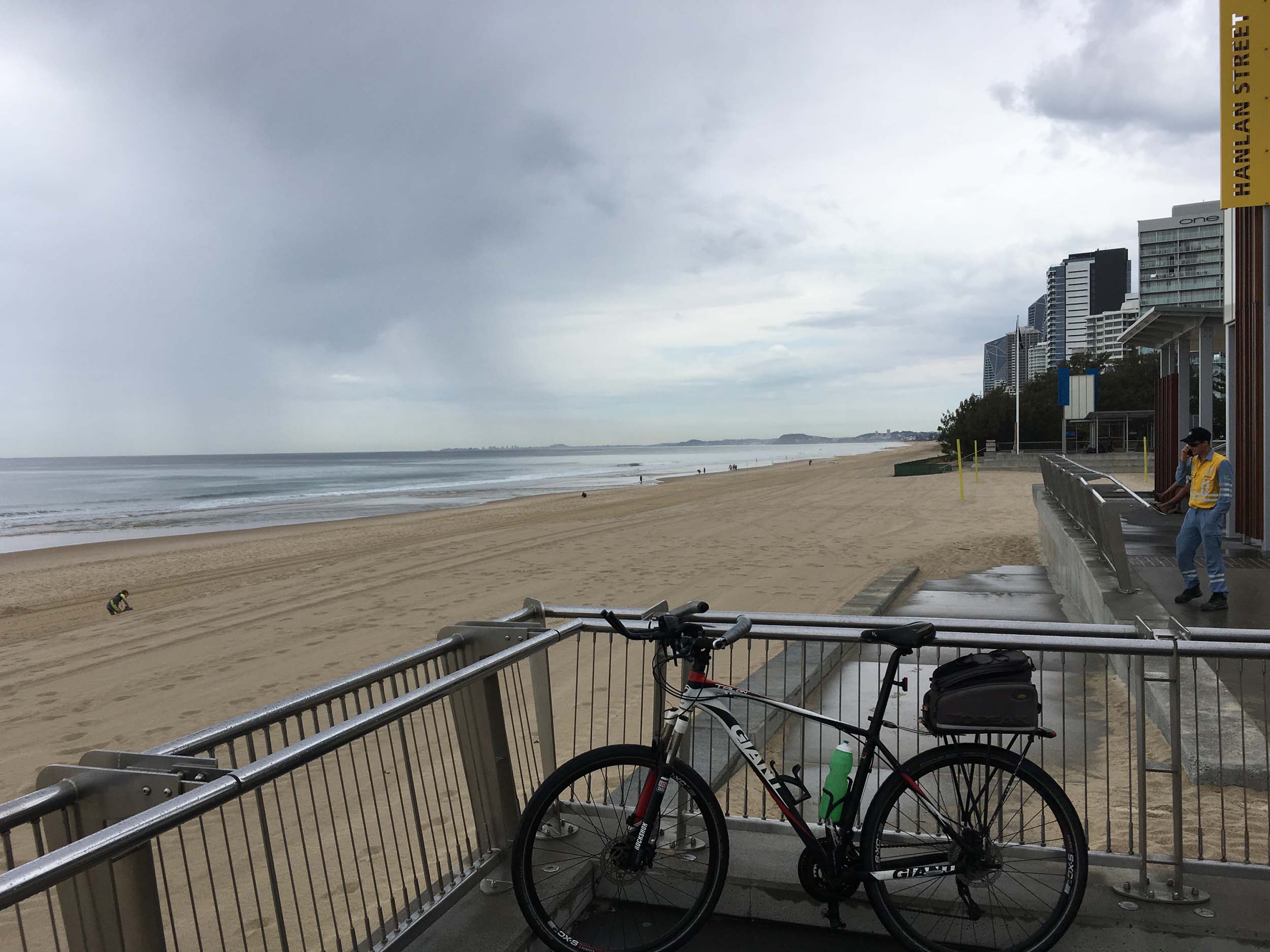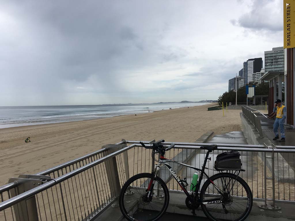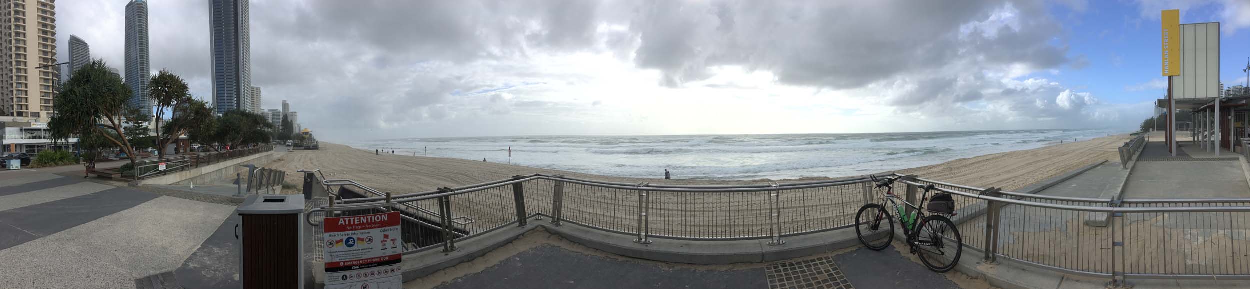 I left at 7:15am. I rode my normal Surfers/Spit via MacIntosh Park route to Broadbeach.
