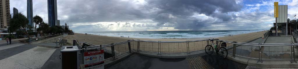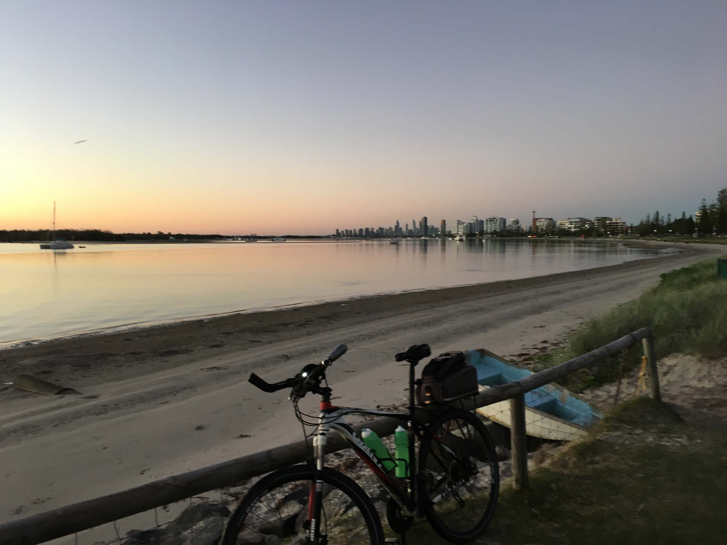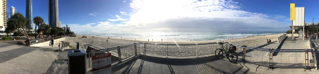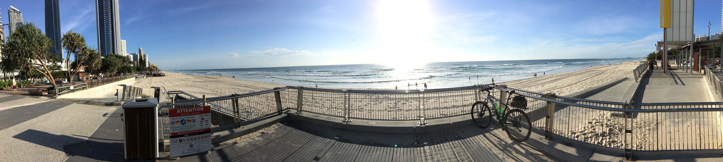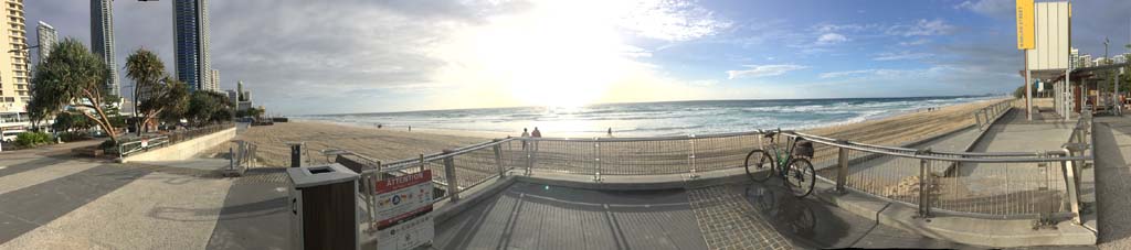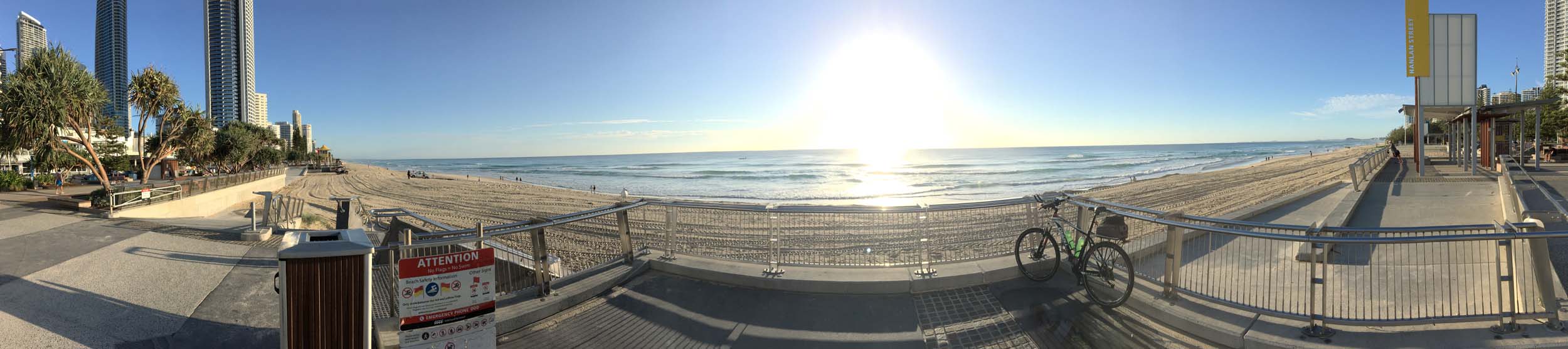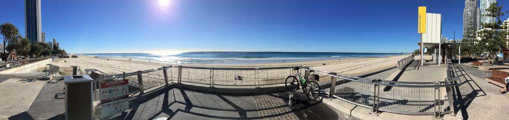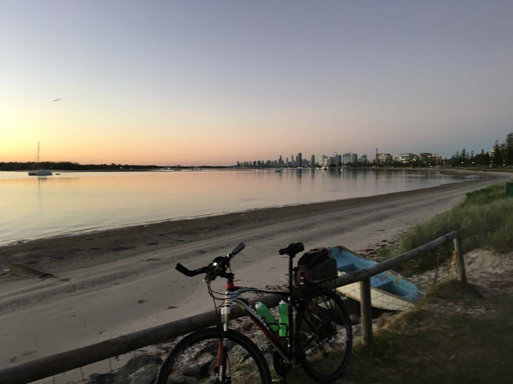 I left at 7:15am. I rode my normal Surfers/Spit via MacIntosh Park route to Broadbeach.