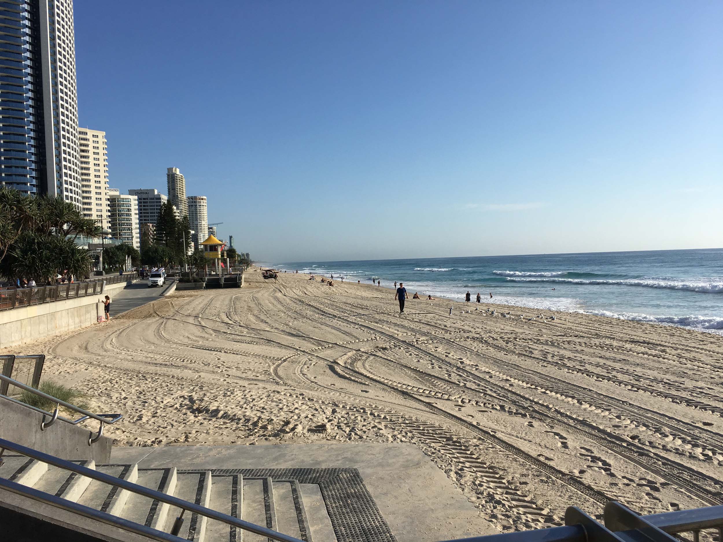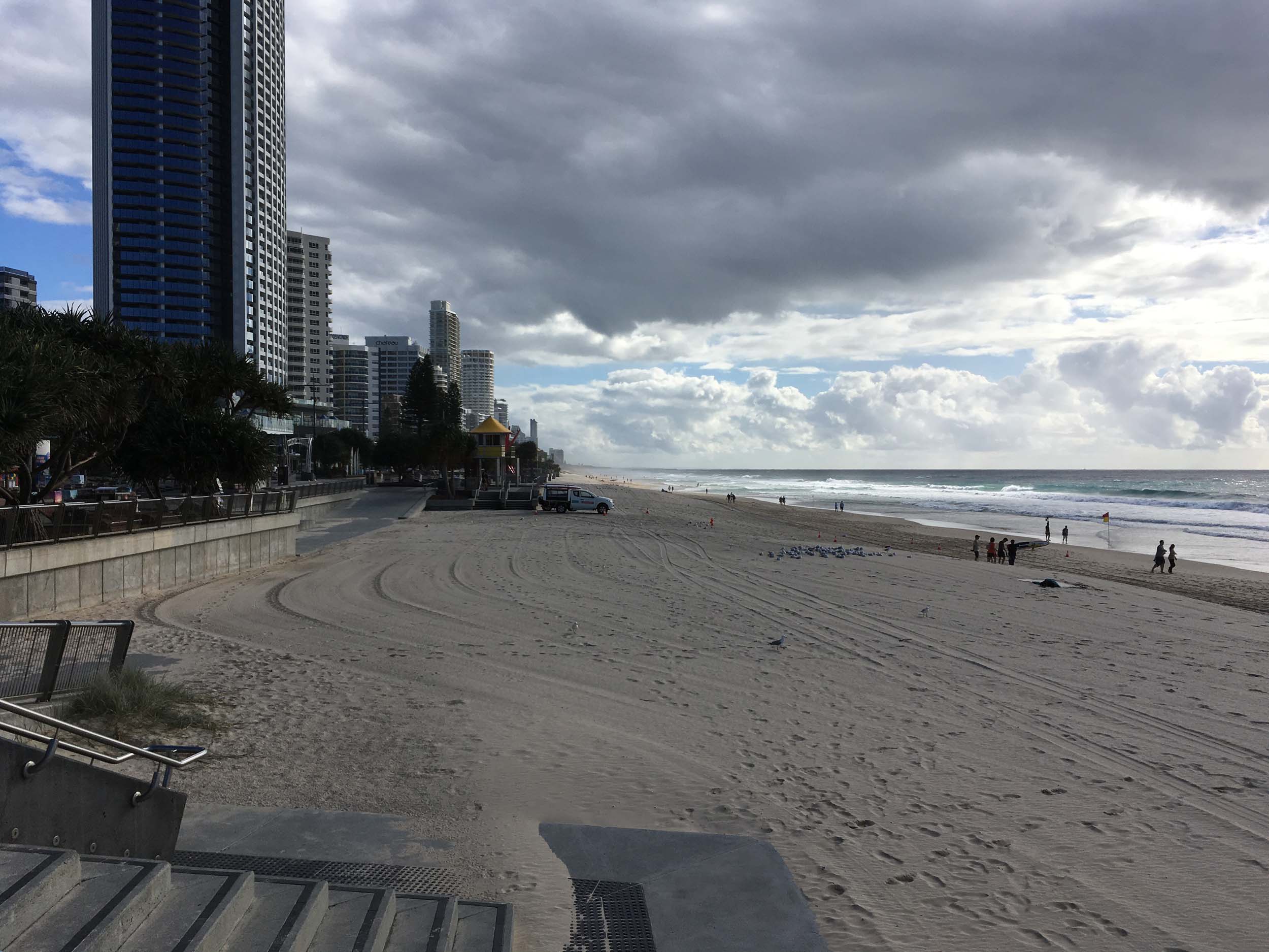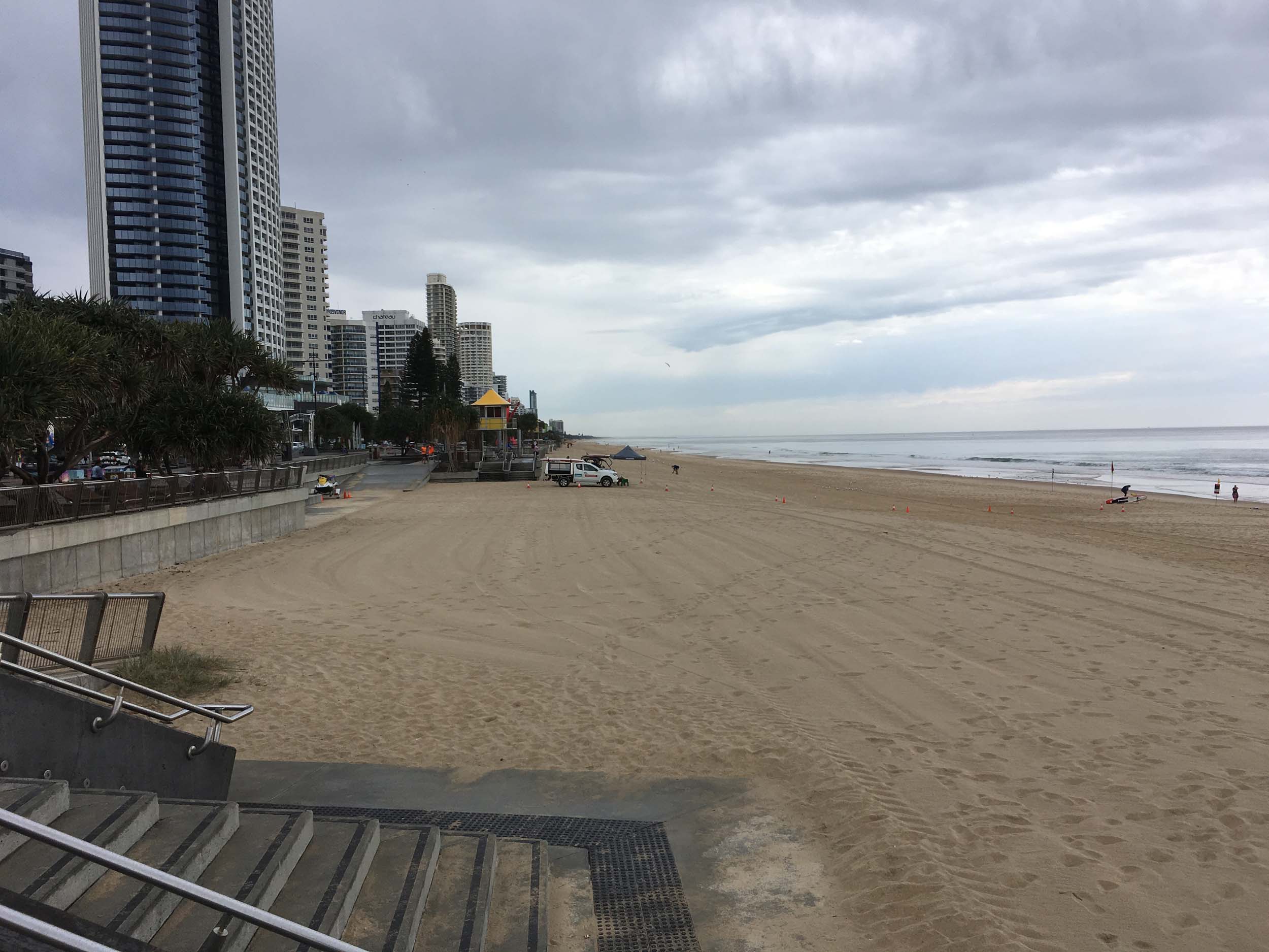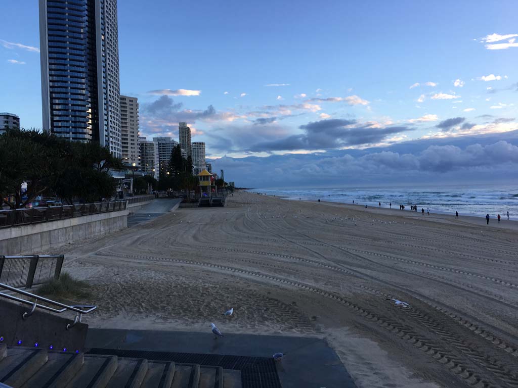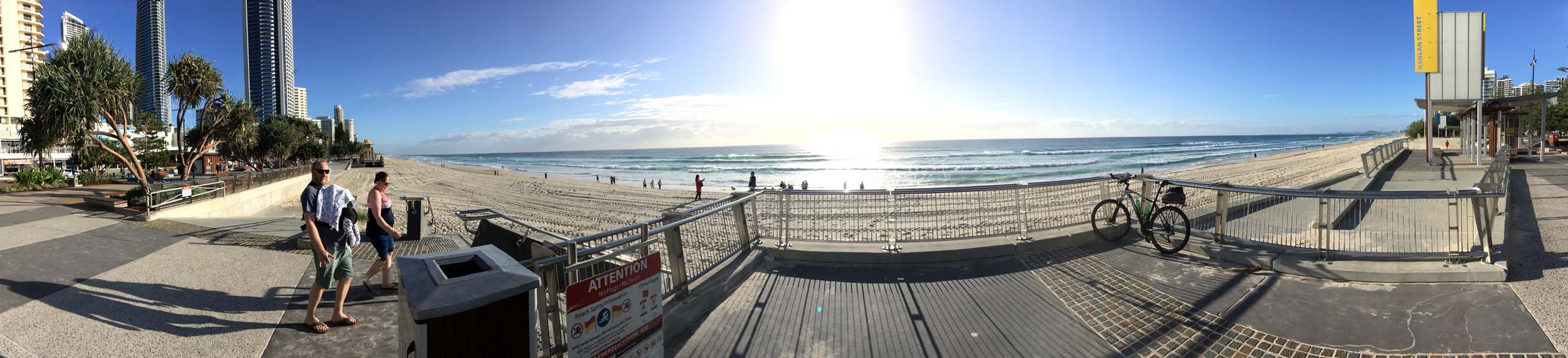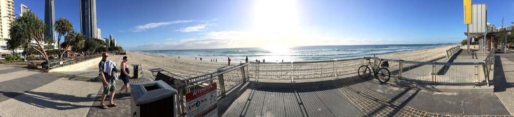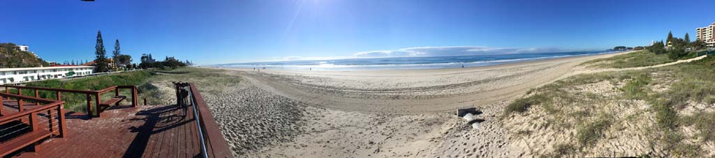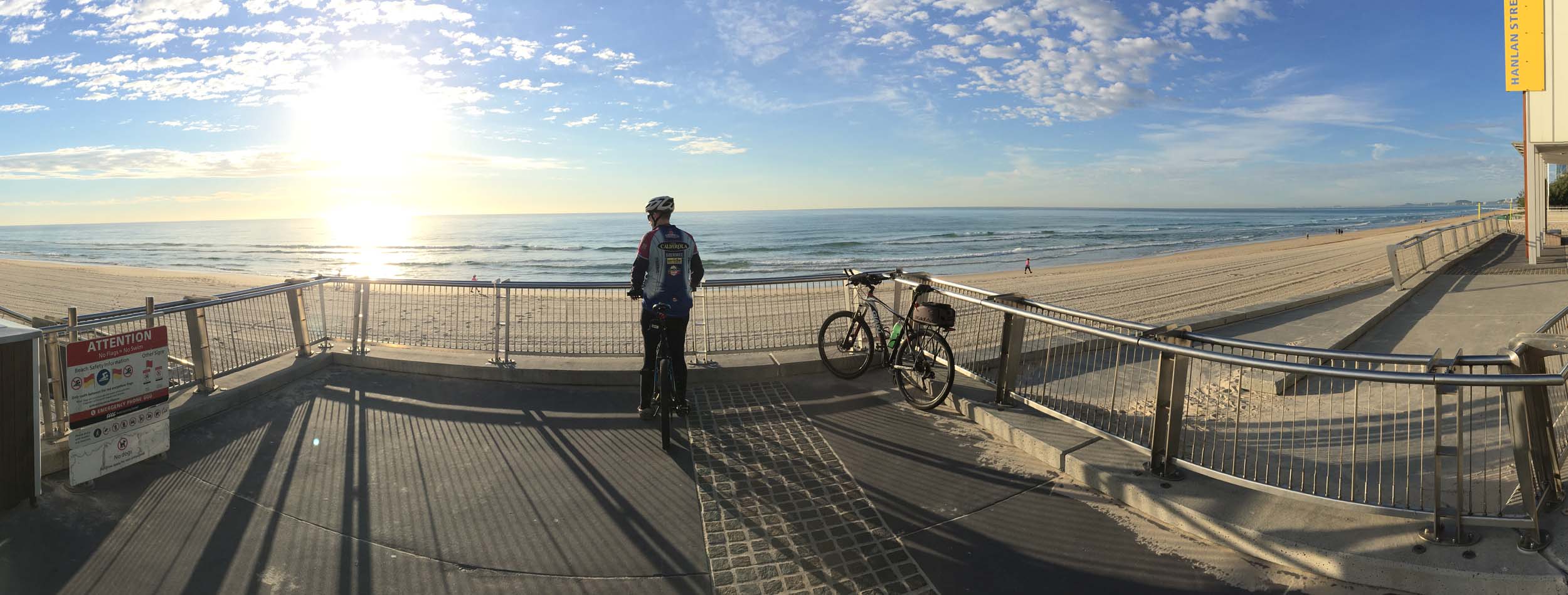 I left at 7:15am. I rode my normal Surfers/Spit via MacIntosh Park route to Broadbeach.