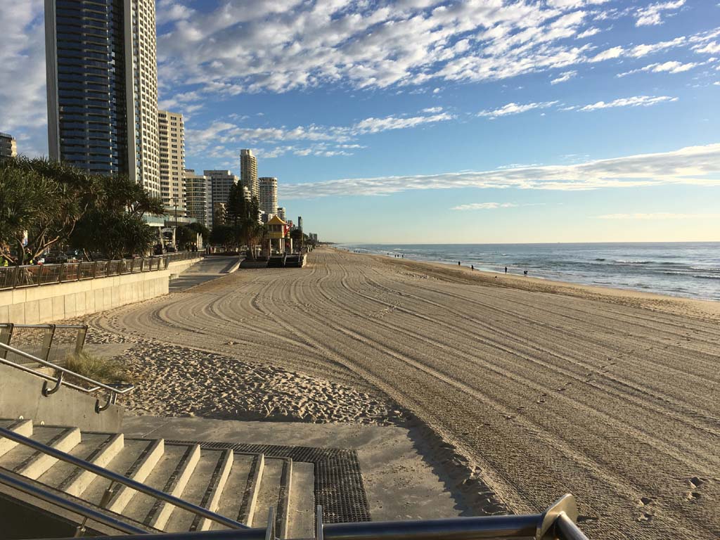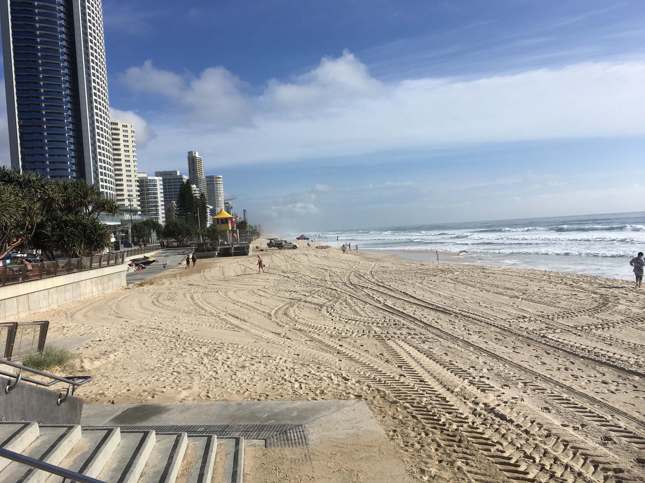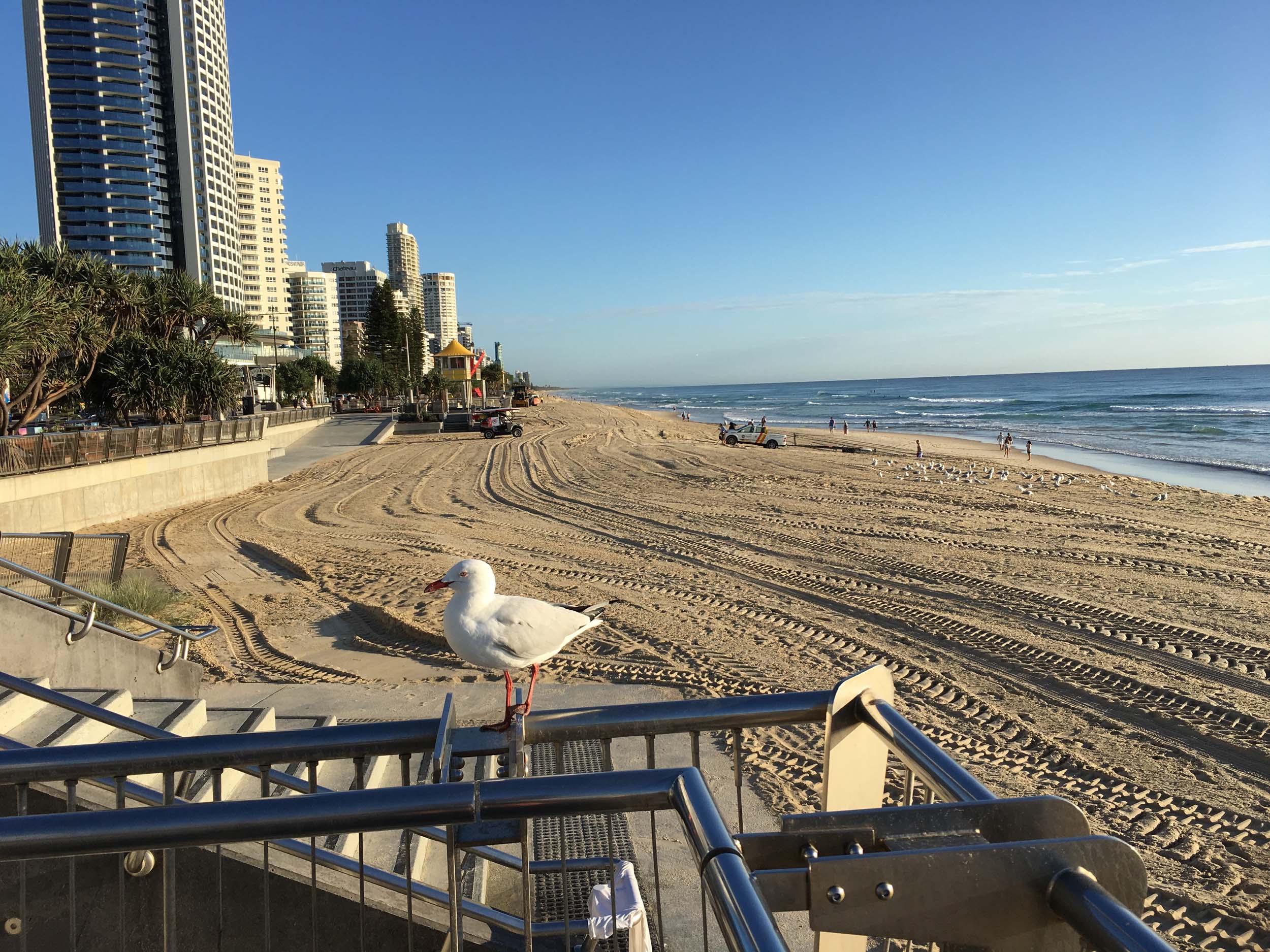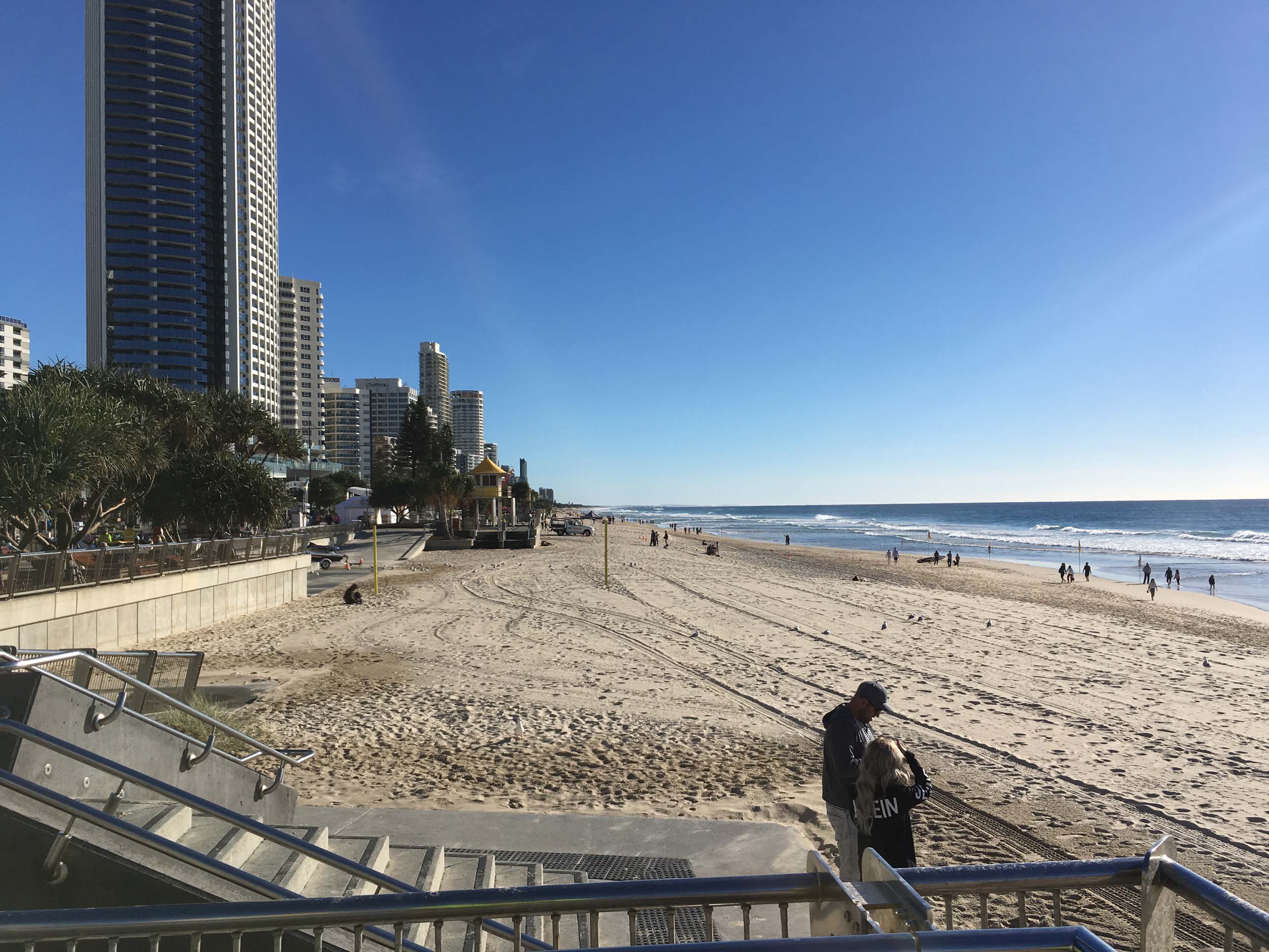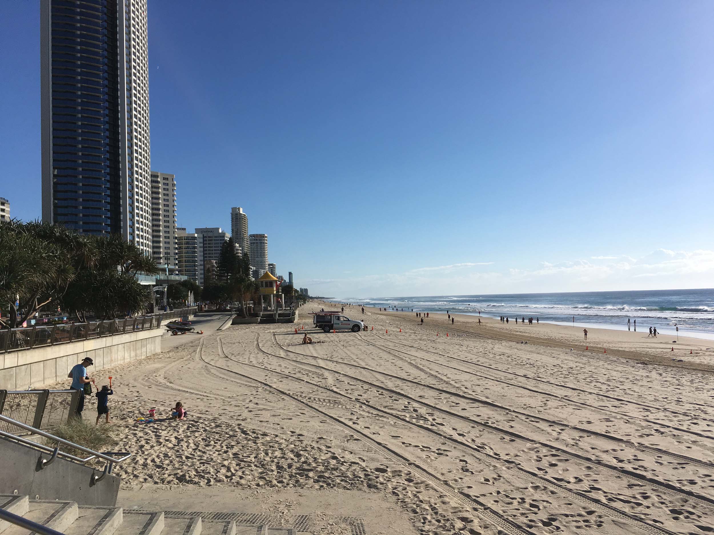 I left at 7:15am. I rode my normal Surfers/Spit via MacIntosh Park route to Broadbeach.