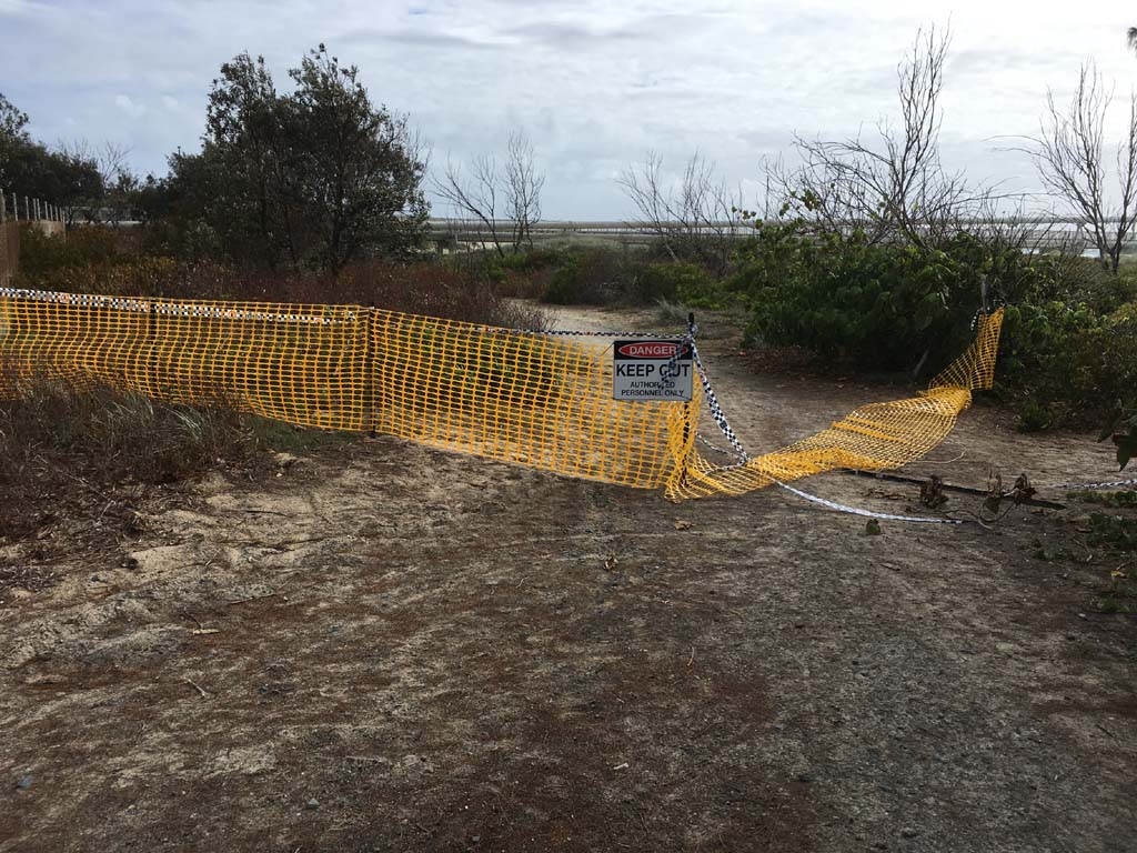 Then I rode along the Esplanade to the Southport SLSC, where I get back onto the Shared path which eventually turns into the Federation Walk. As I approached the Sand Pumping pier, the police cordoned off area barrier HAS FINALLY BEEN REMOVED. About bloody time.