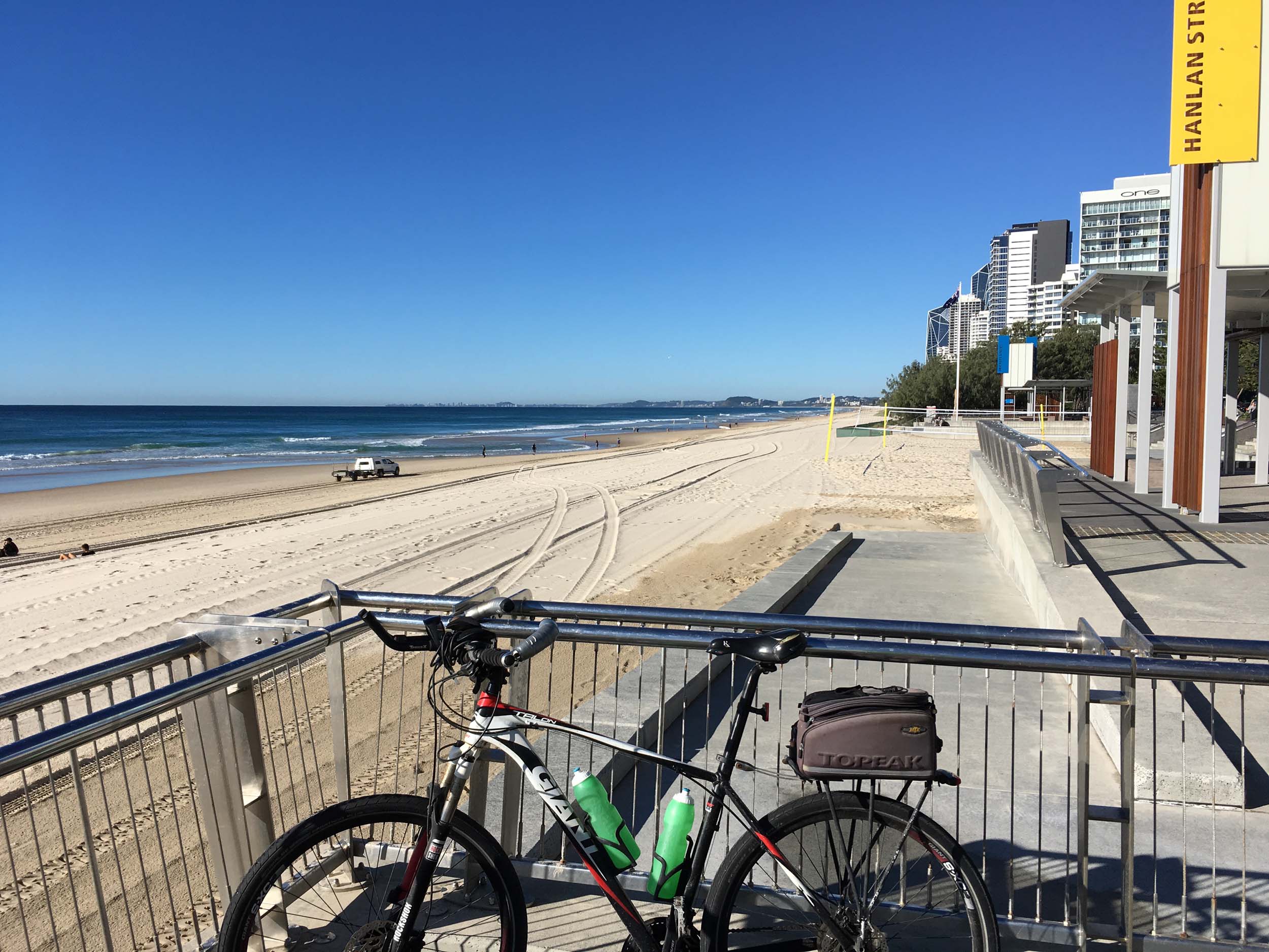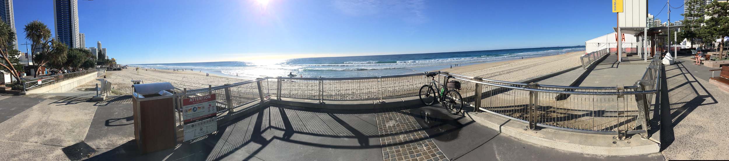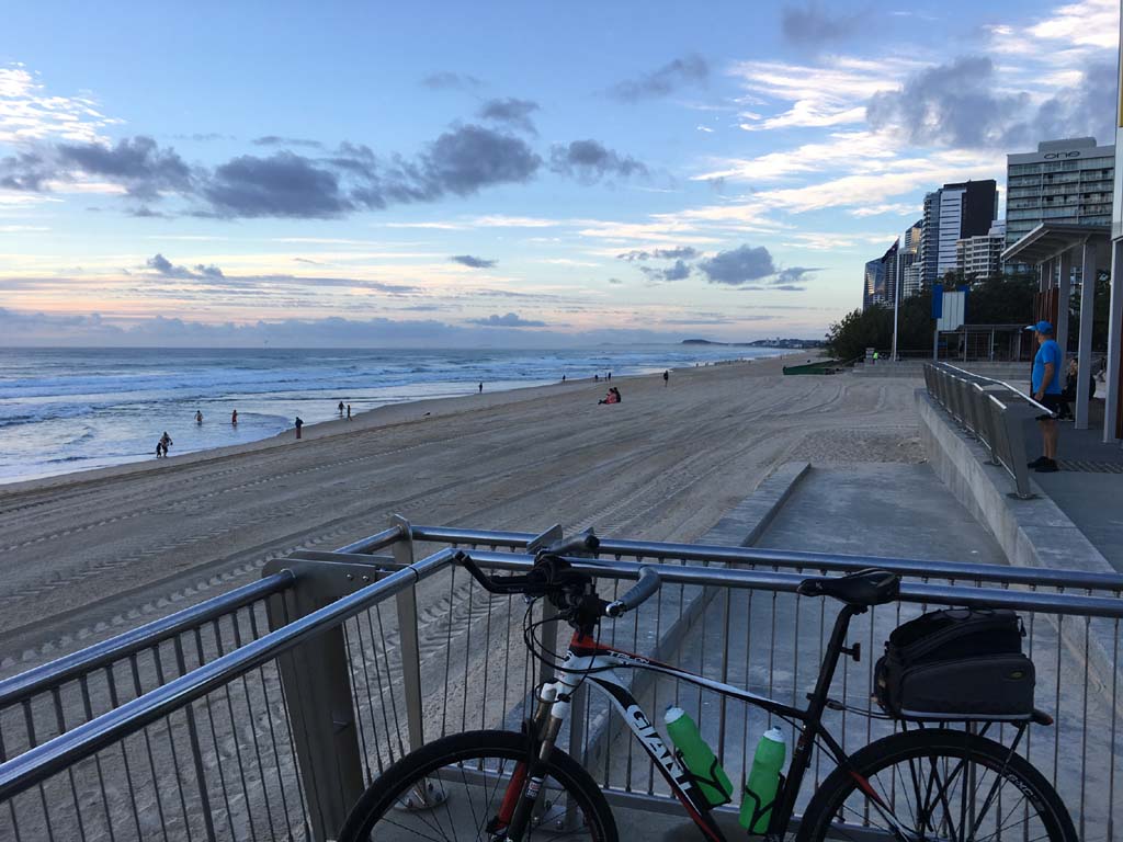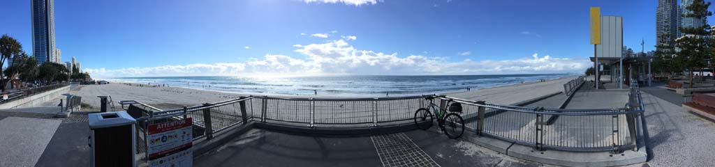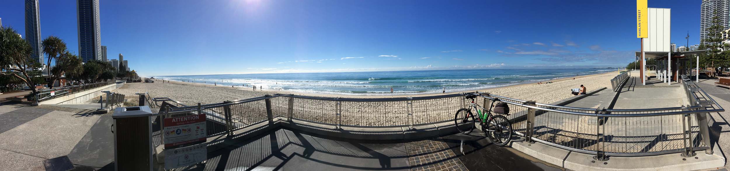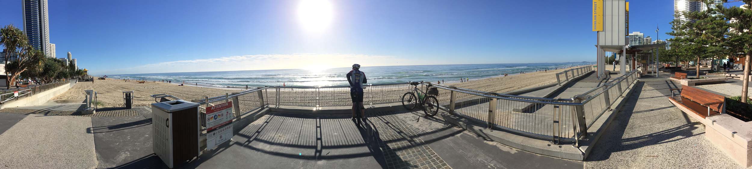 I left at 7:30am. I rode my normal Surfers/Spit via MacIntosh Park route to Broadbeach.