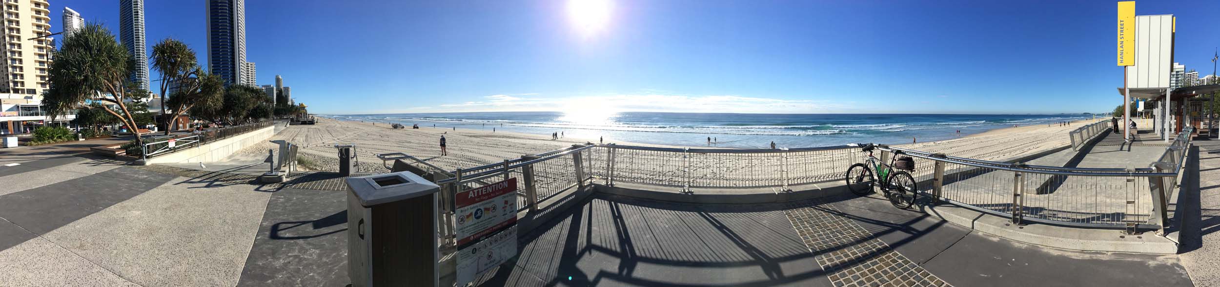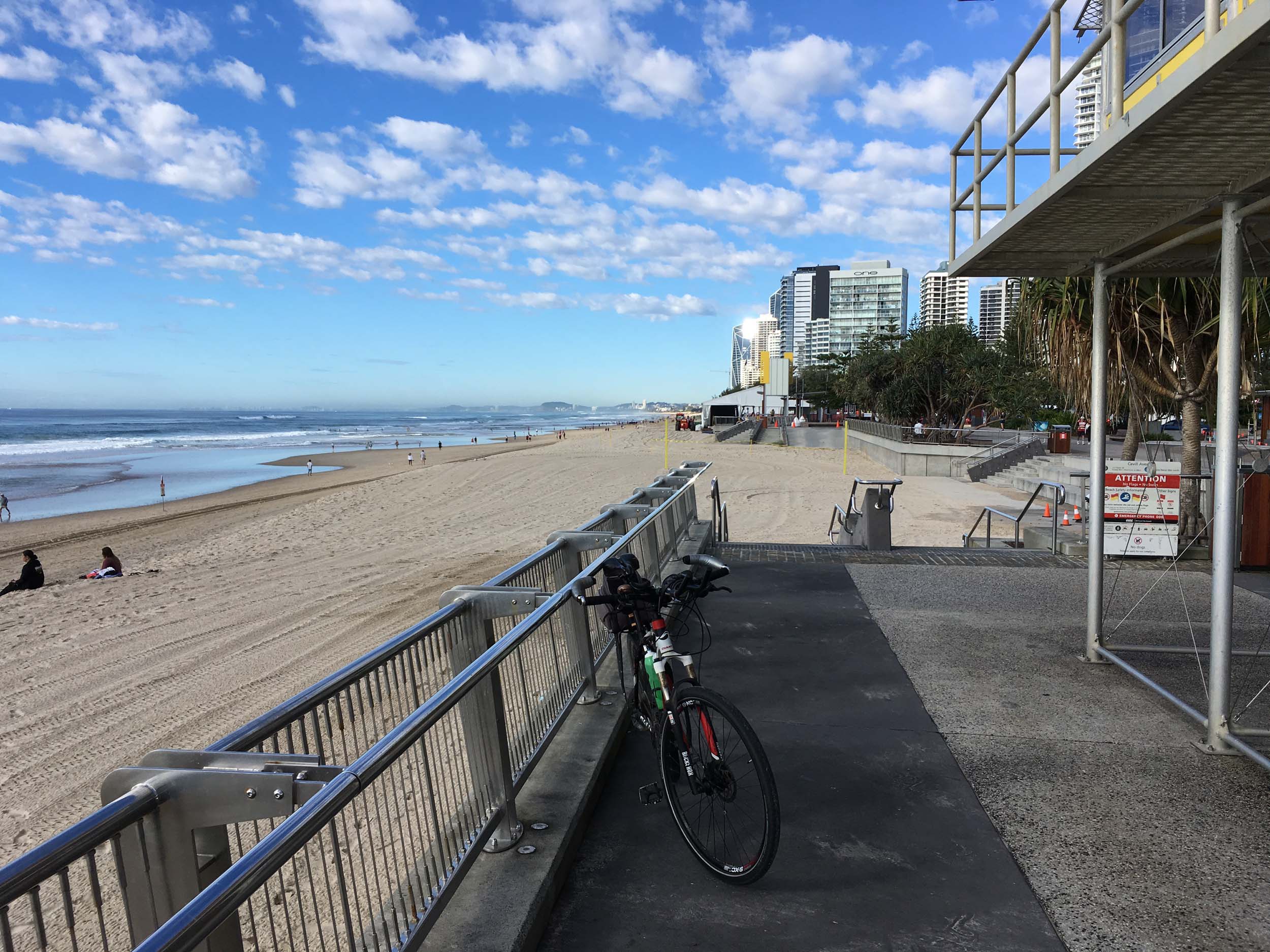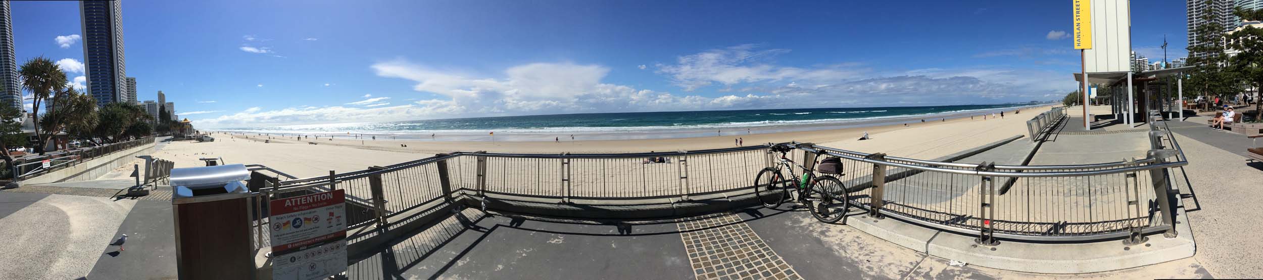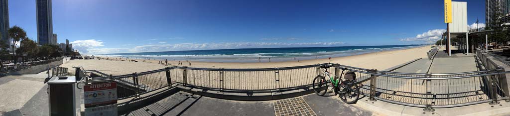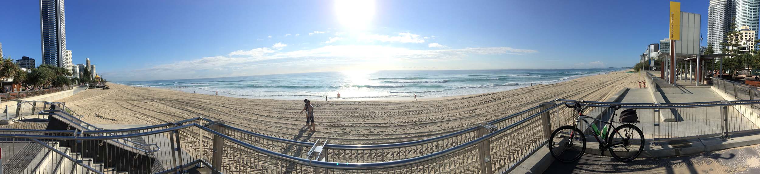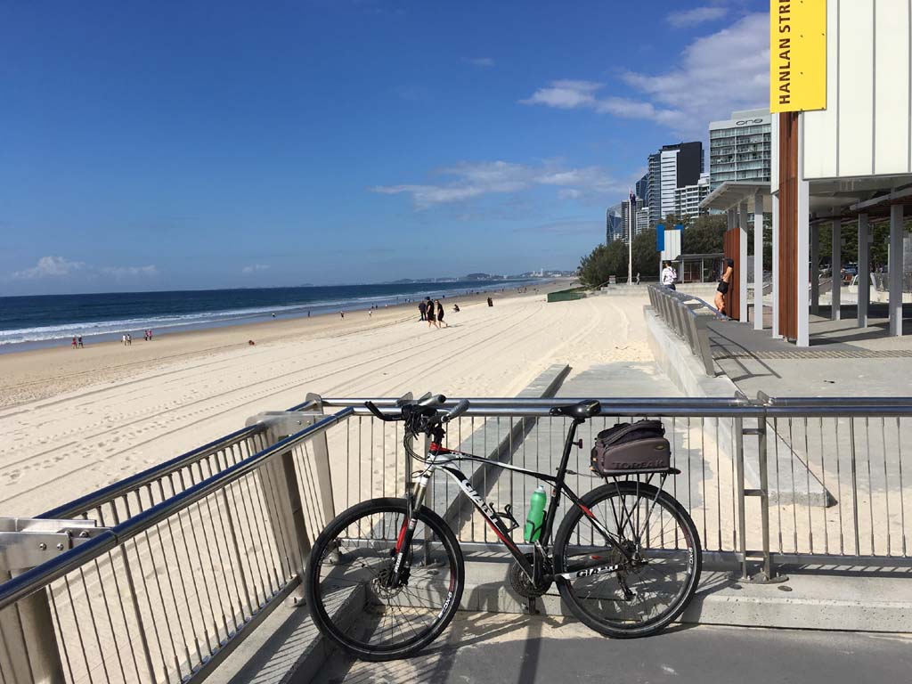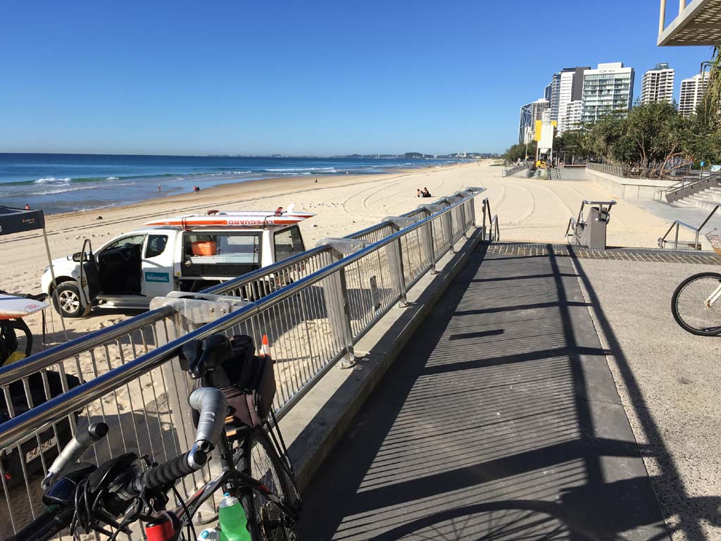 I left at 7:30am. I rode my normal Surfers/Spit via MacIntosh Park route to Broadbeach.