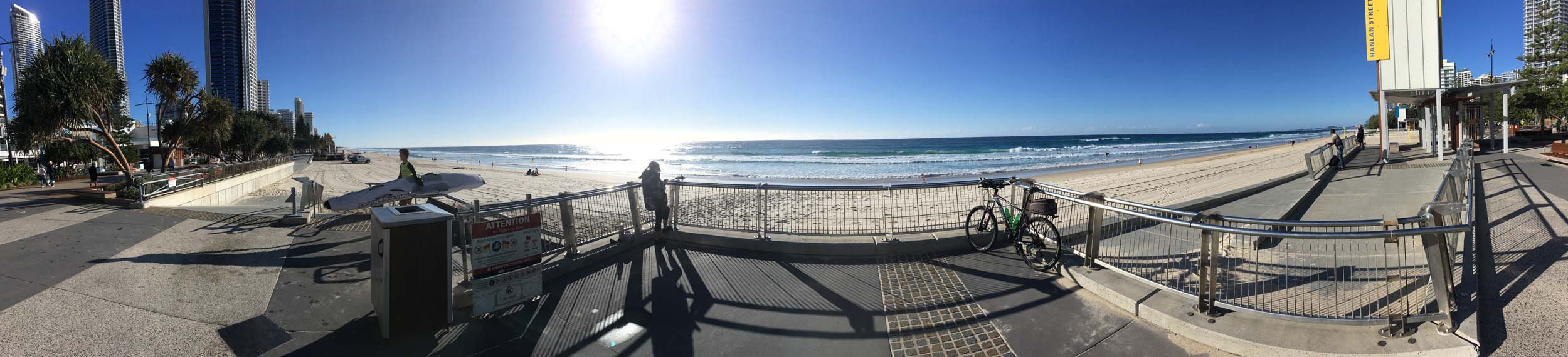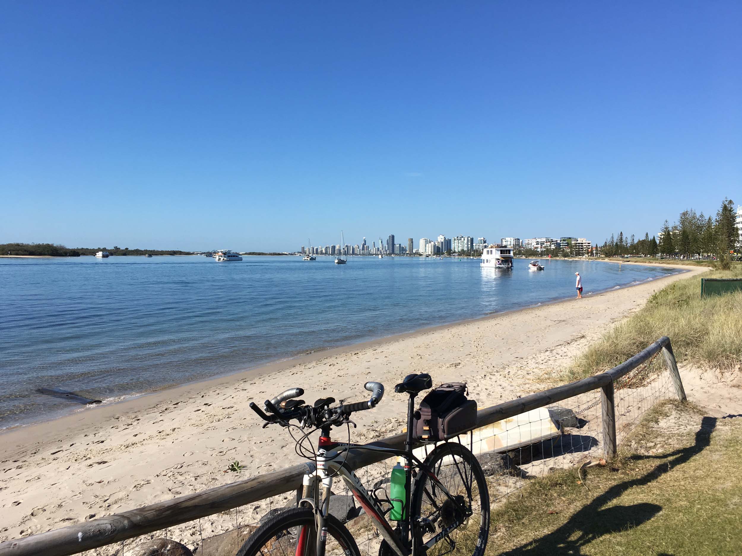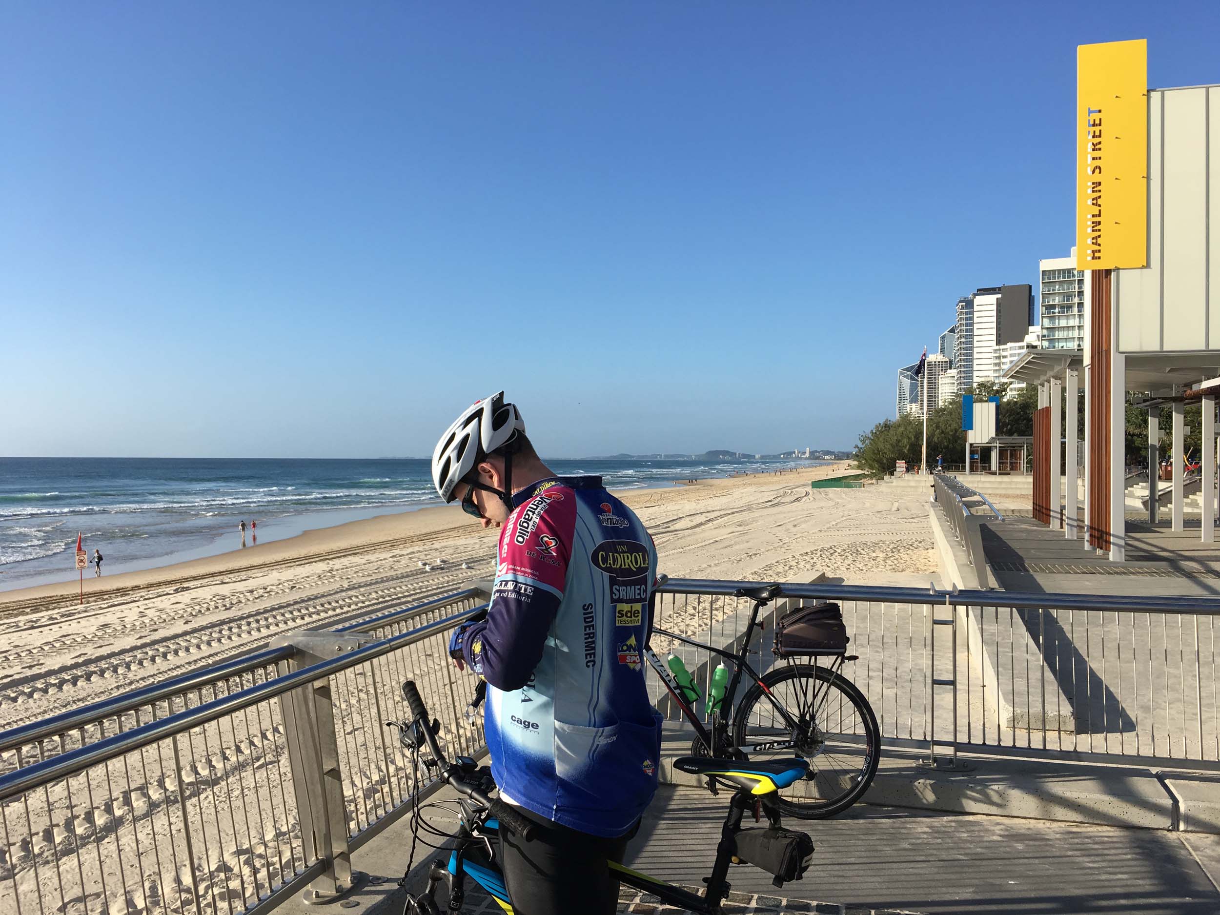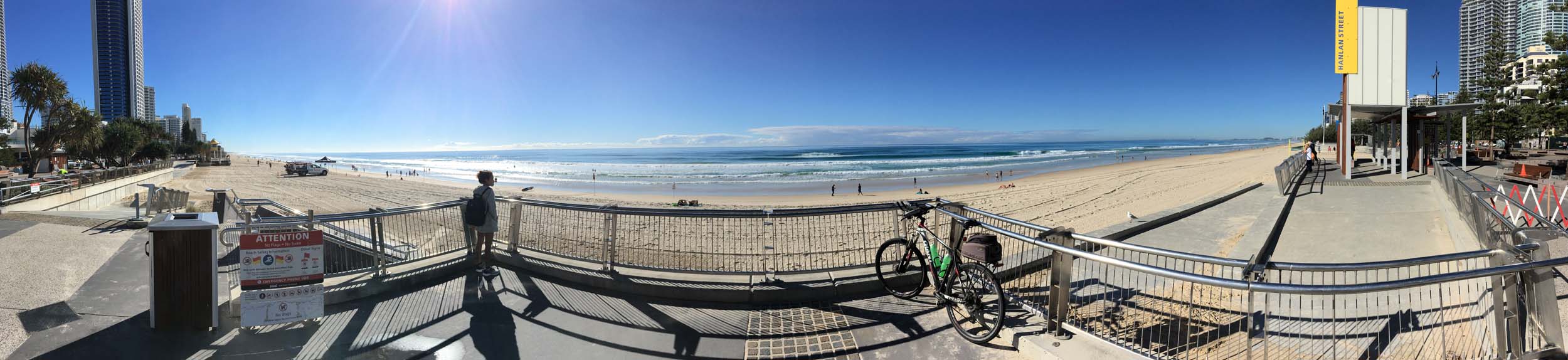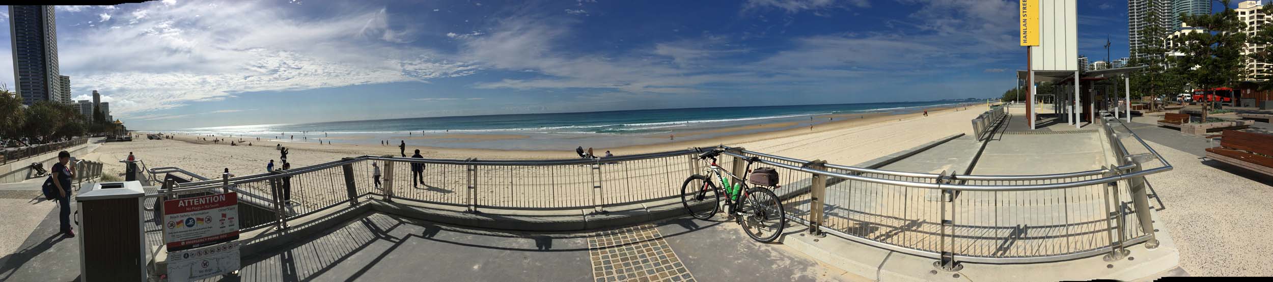 I left at 7:30am. I rode my normal Surfers/Spit via MacIntosh Park route to Broadbeach.