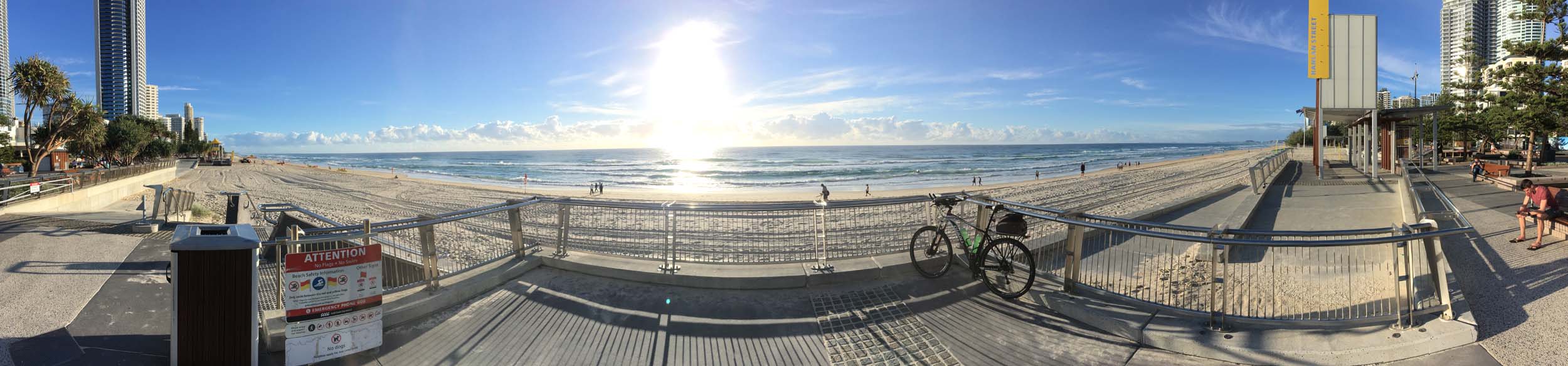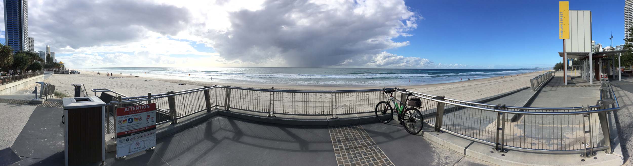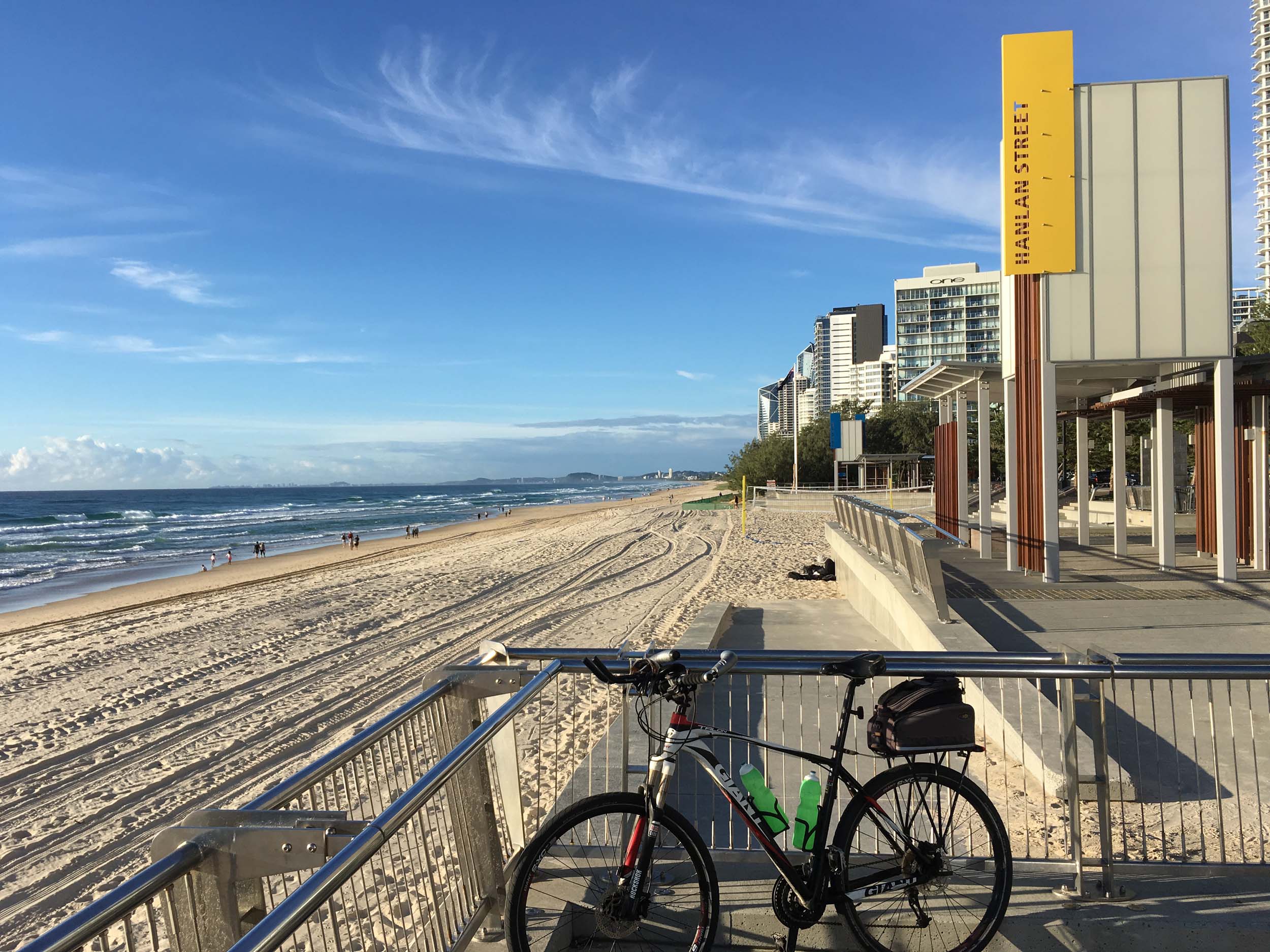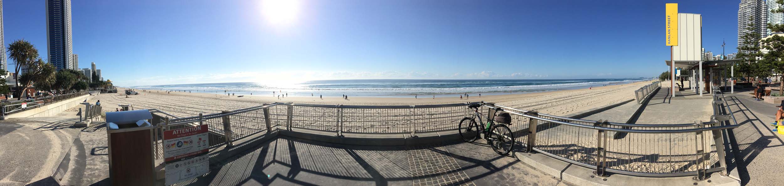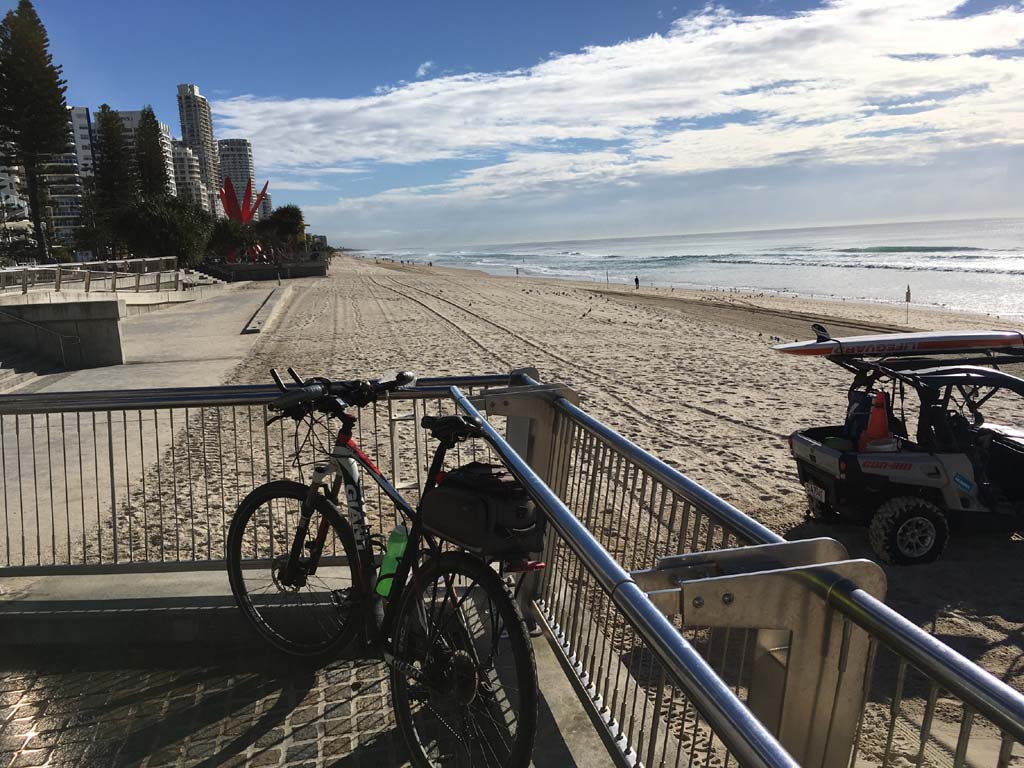 I left at 7:30am. I rode my normal Surfers/Spit via MacIntosh Park route to Broadbeach.