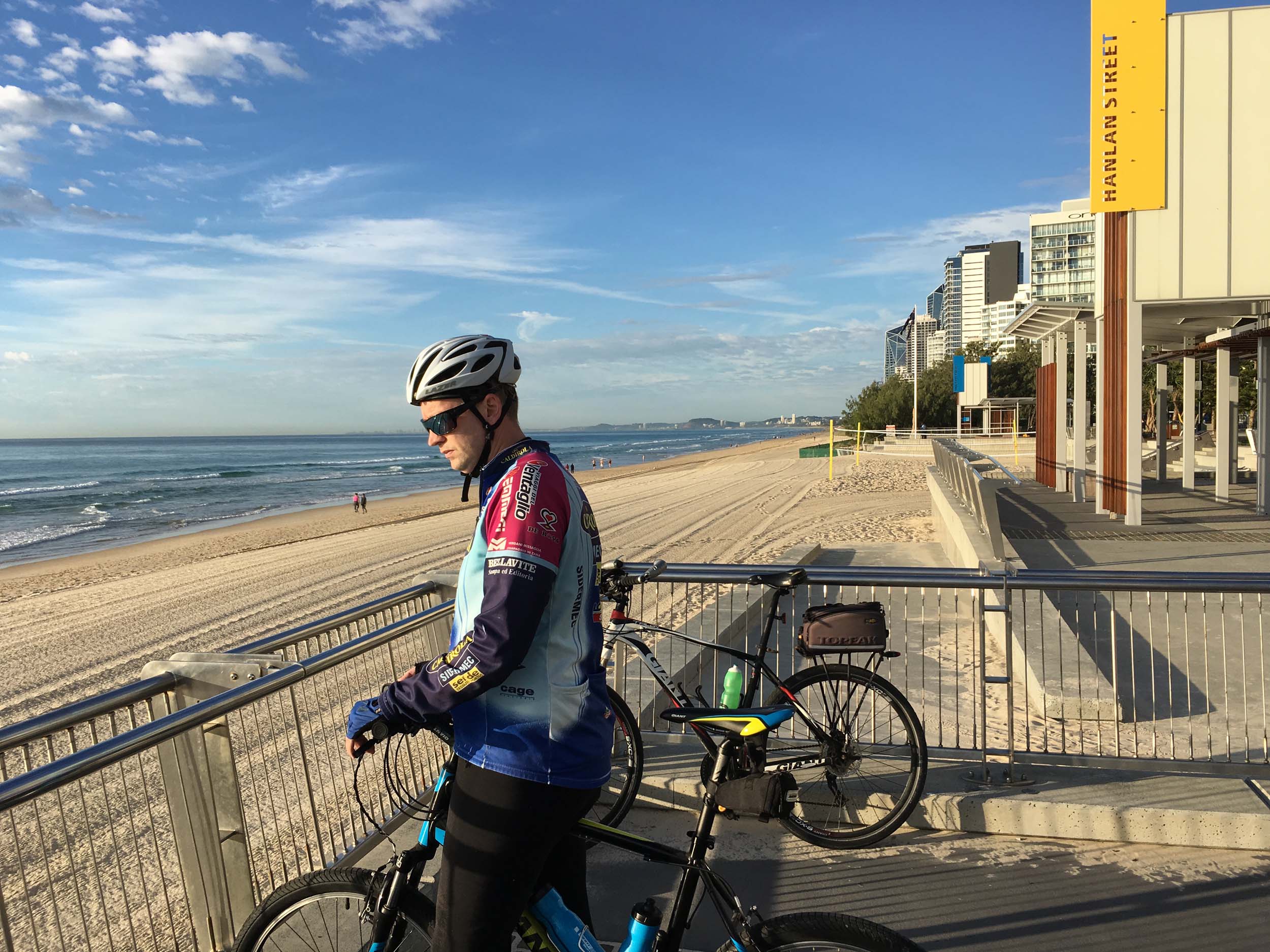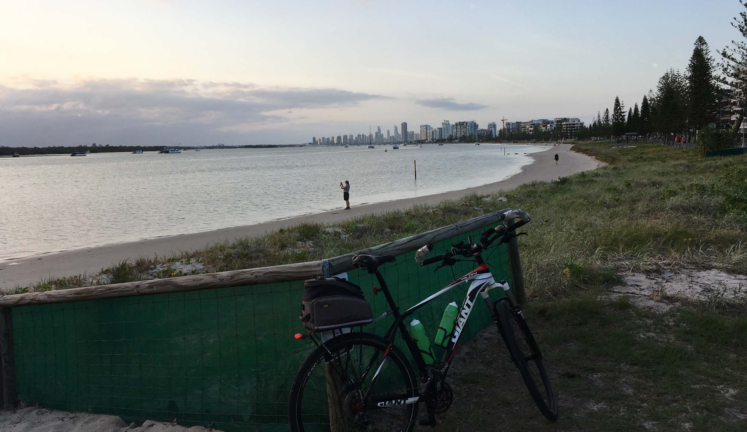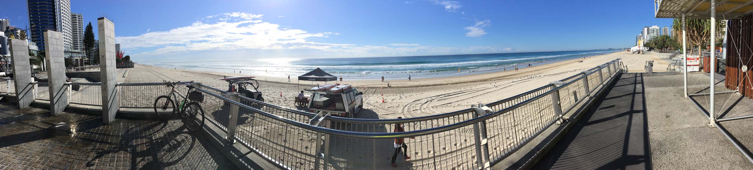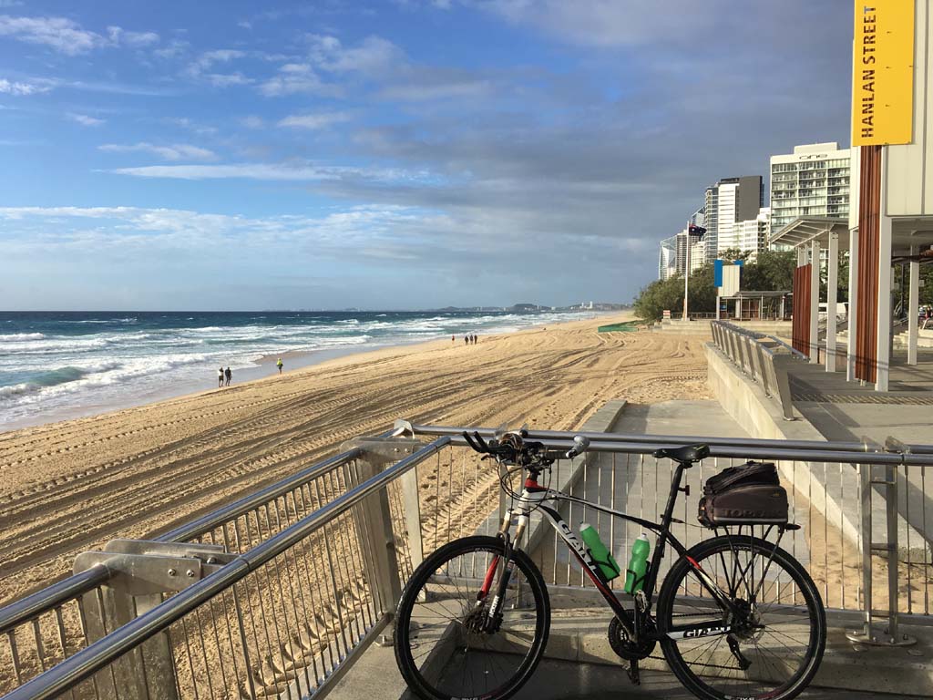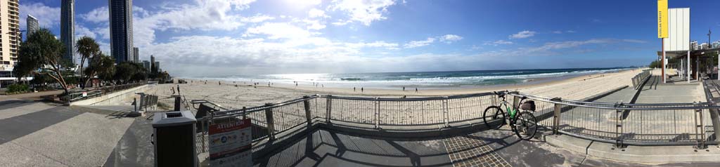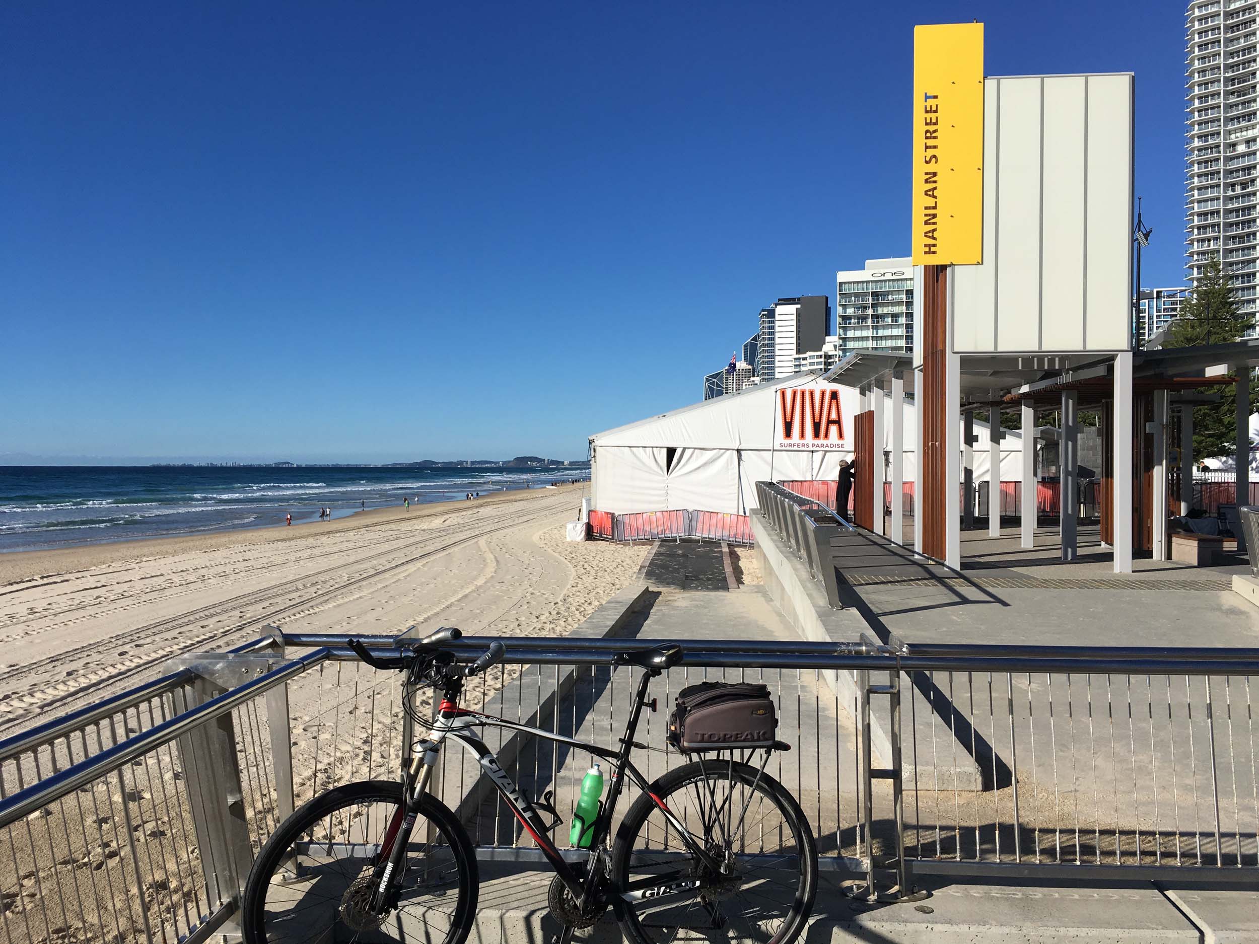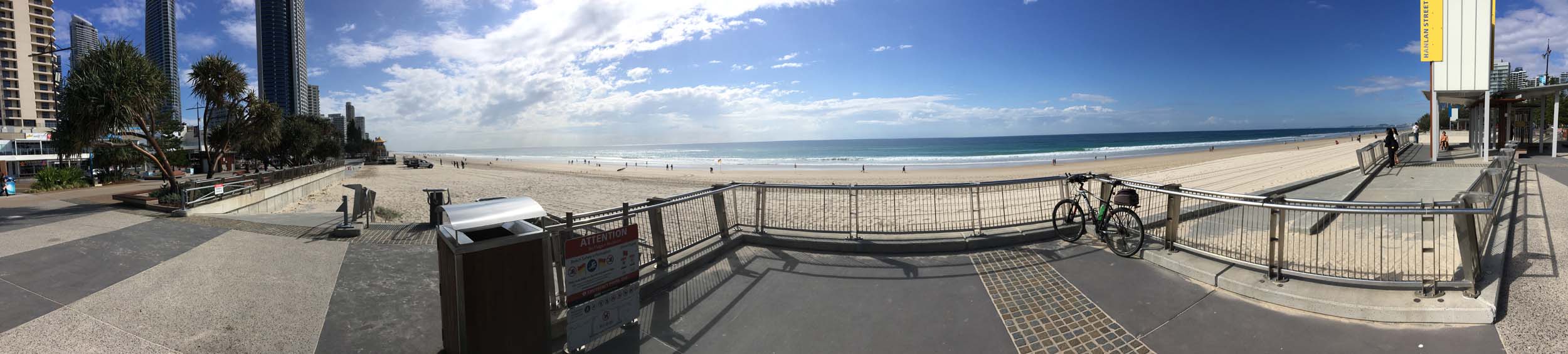 I left at 7:30am. I rode my normal Surfers/Spit via MacIntosh Park route to Broadbeach.