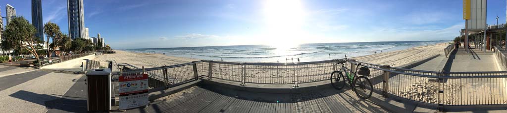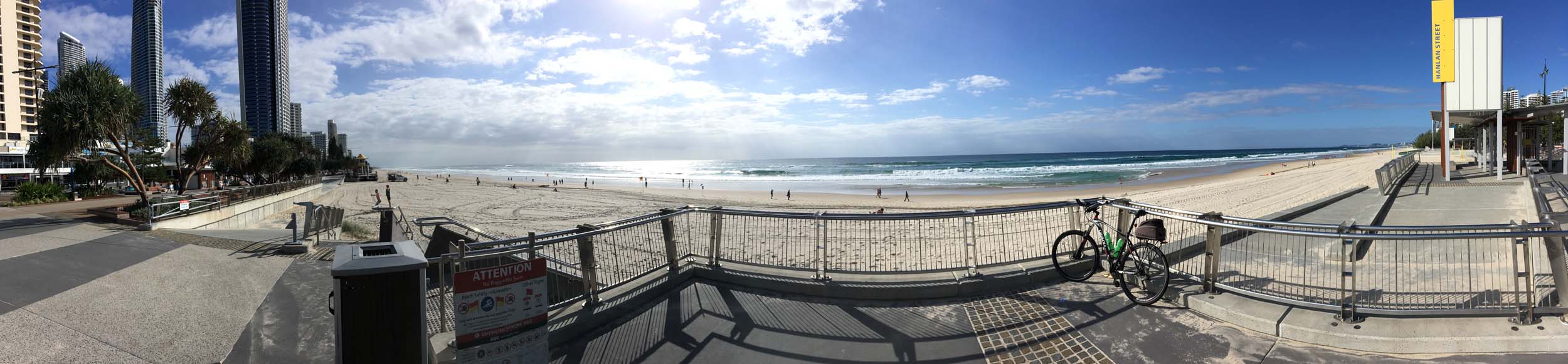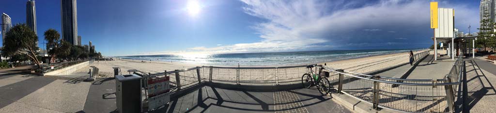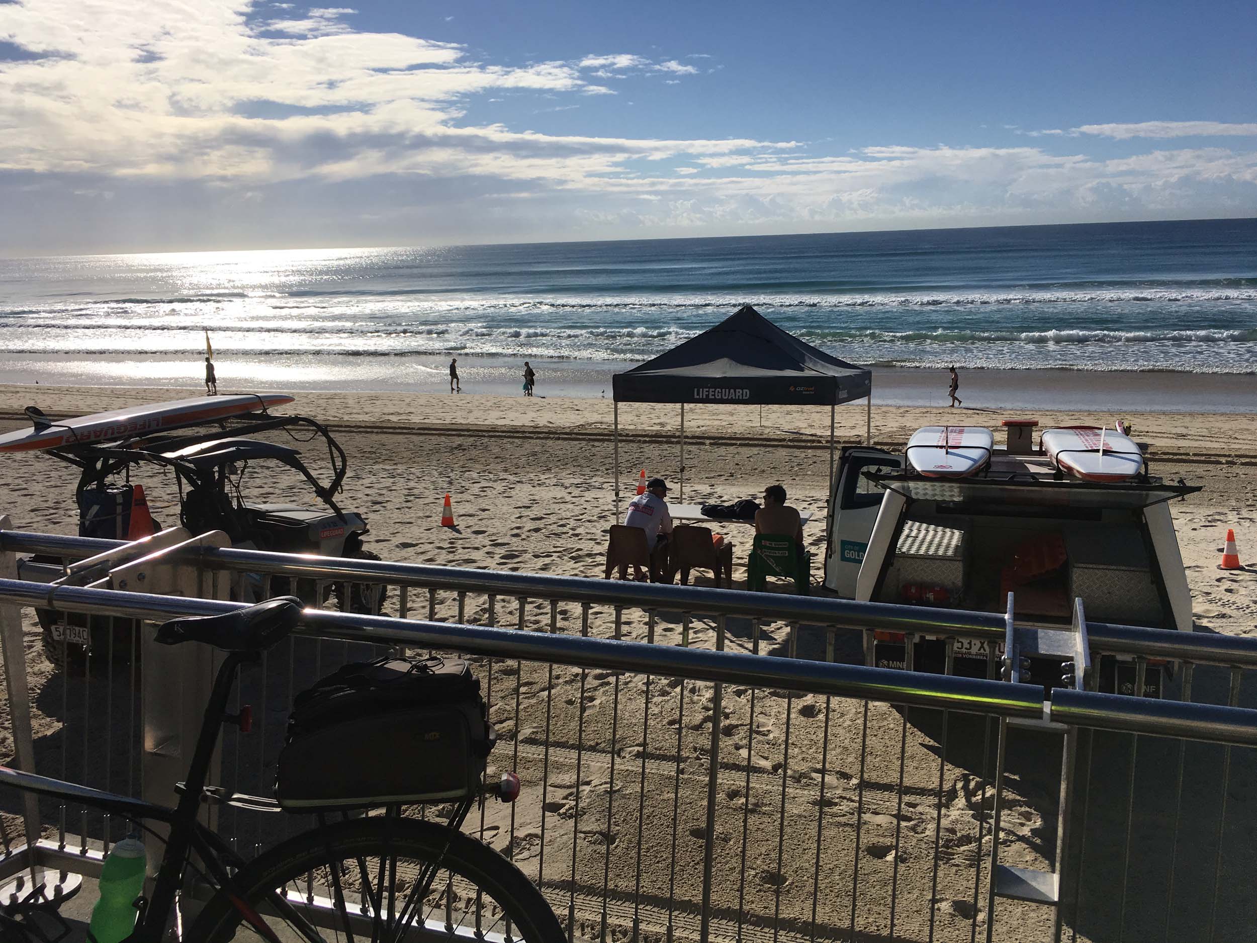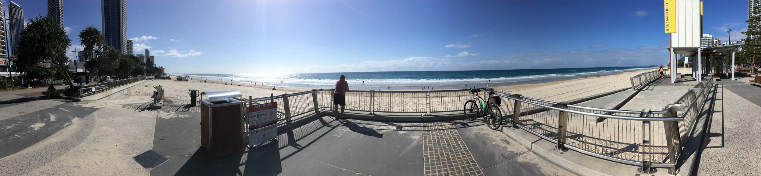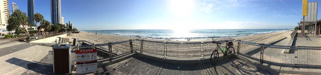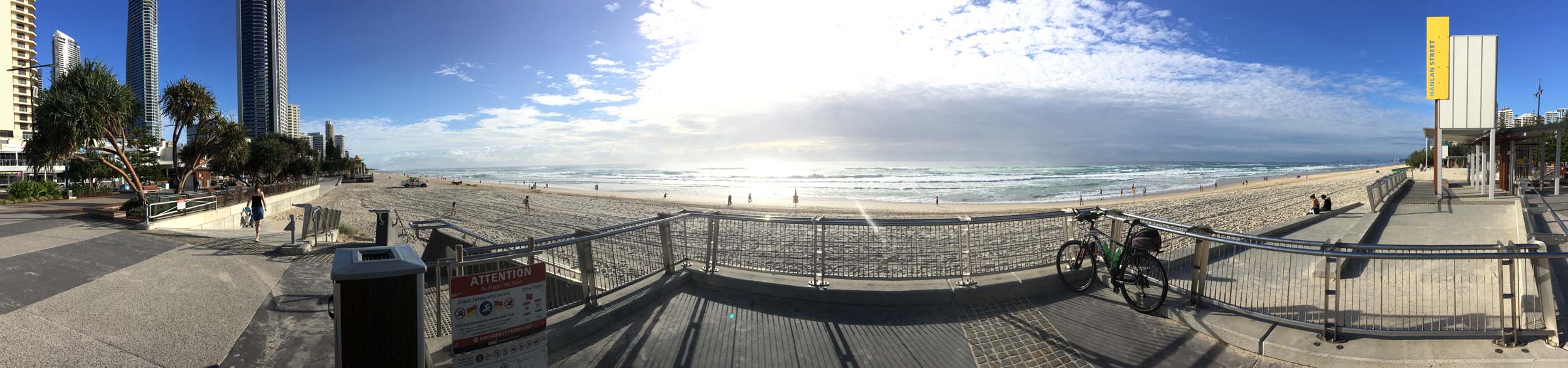 I left at 7:30am. I rode my normal Surfers/Spit via MacIntosh Park route to Broadbeach.
