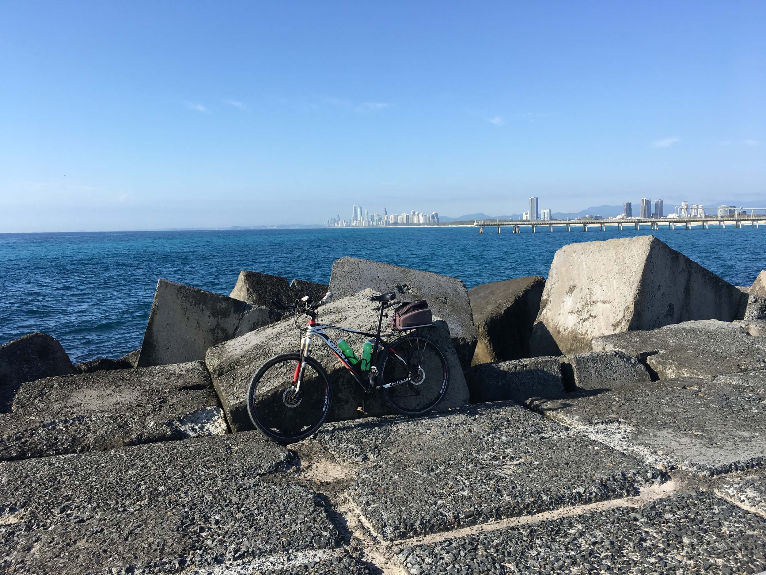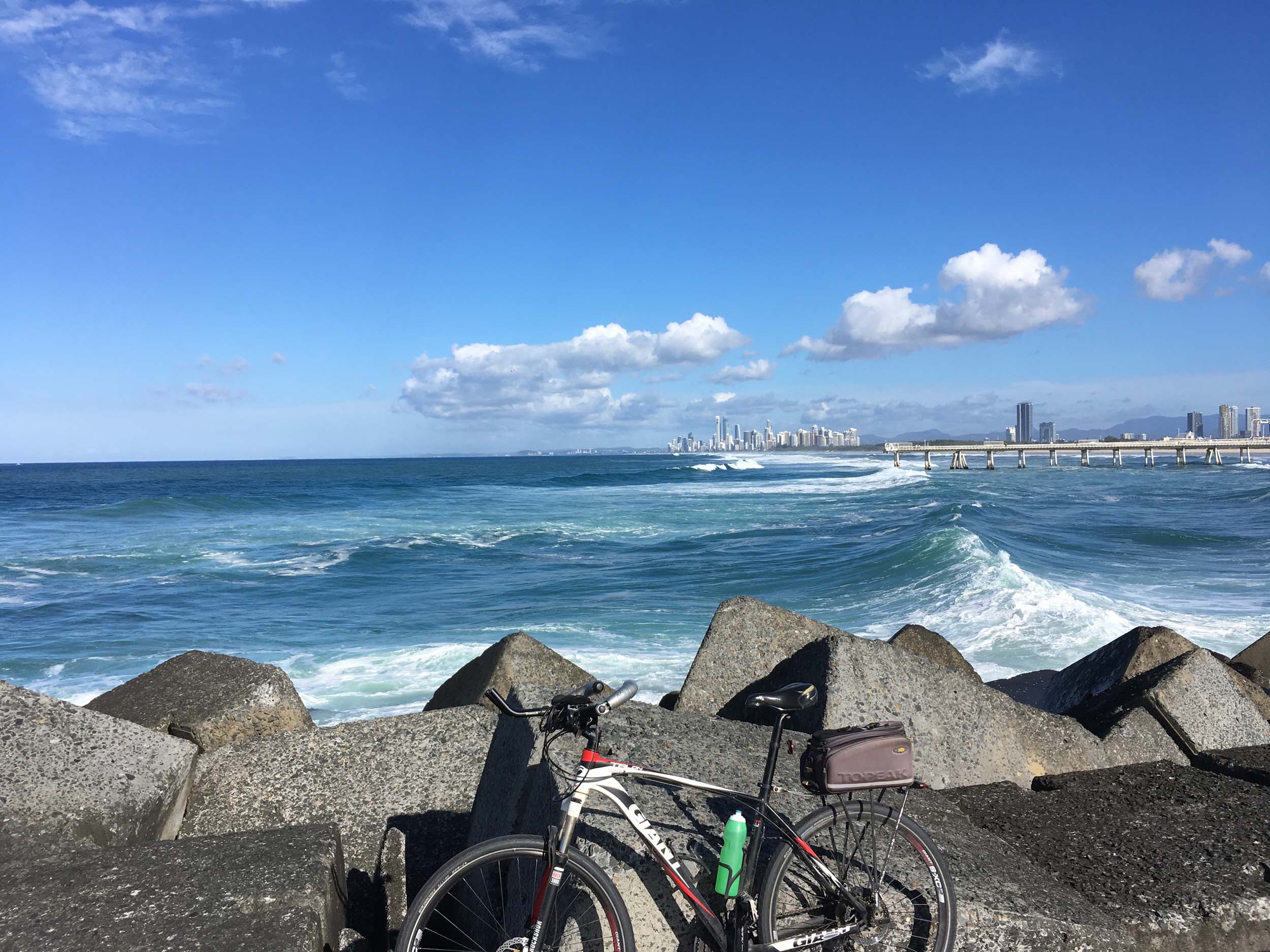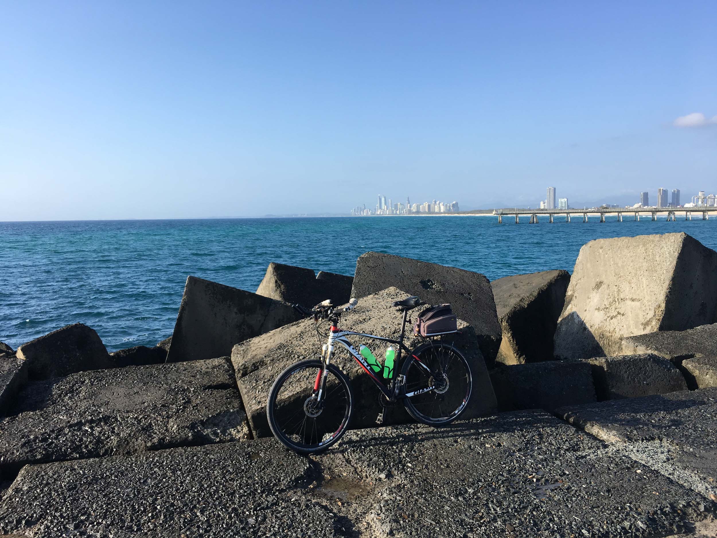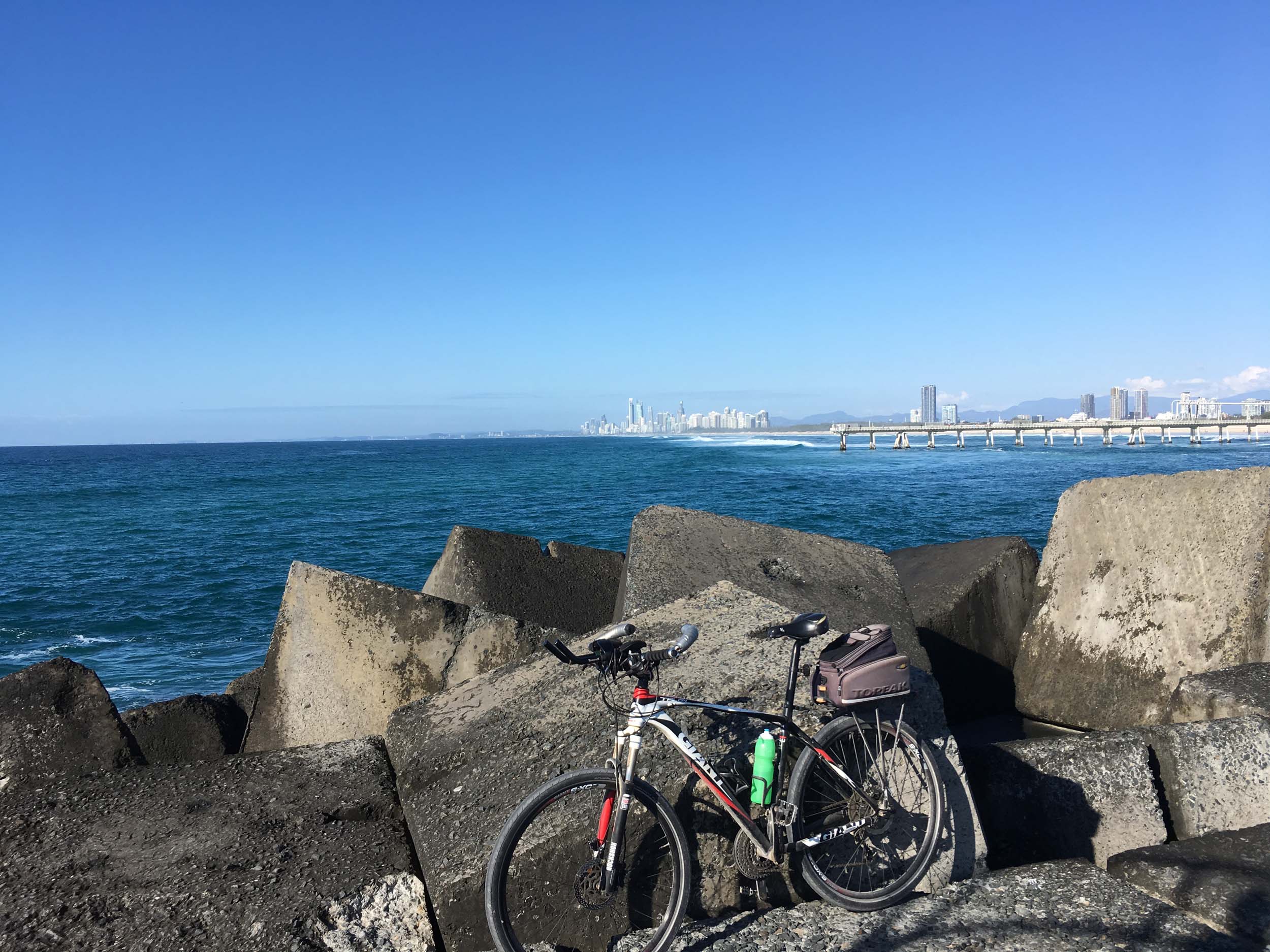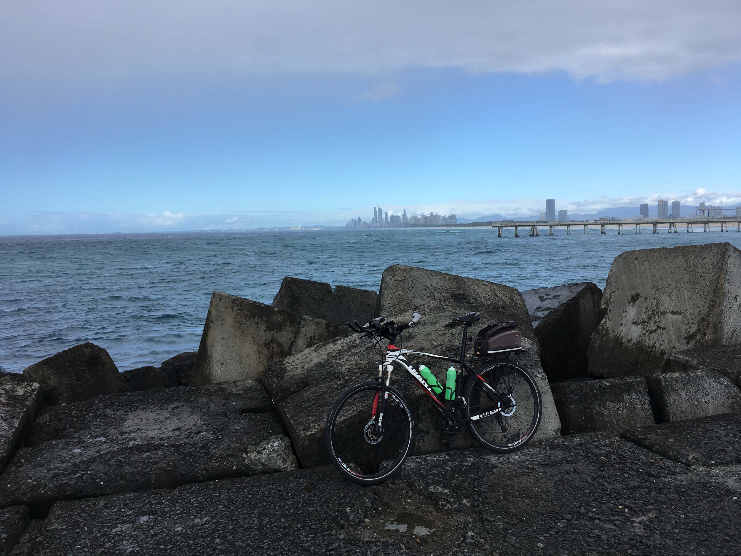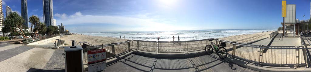 I left at 7:30am. I rode my normal Surfers/Spit via MacIntosh Park route to Broadbeach.