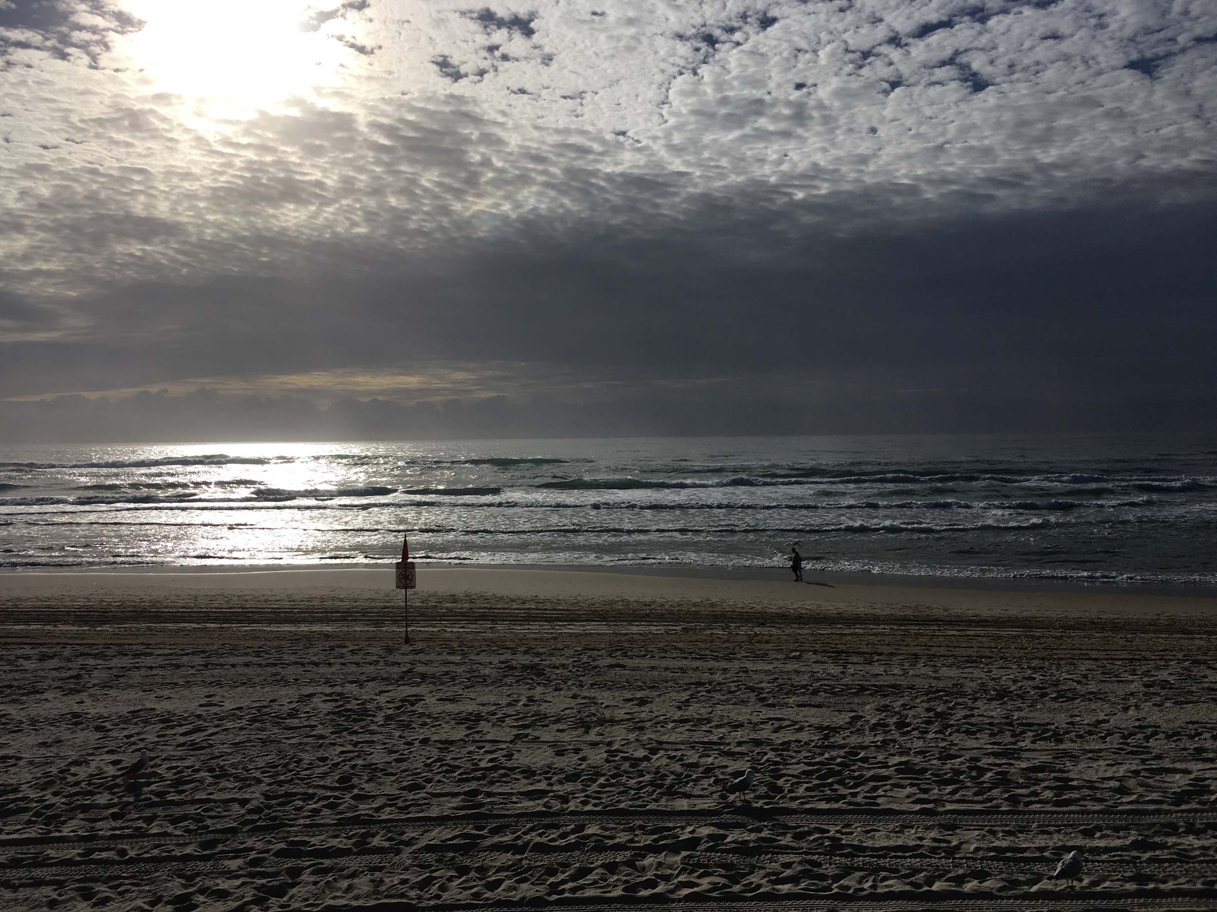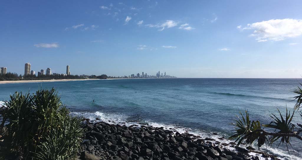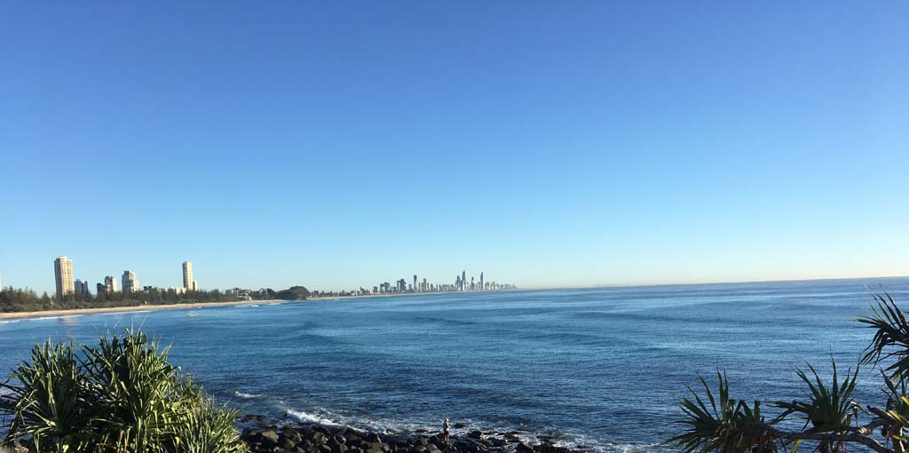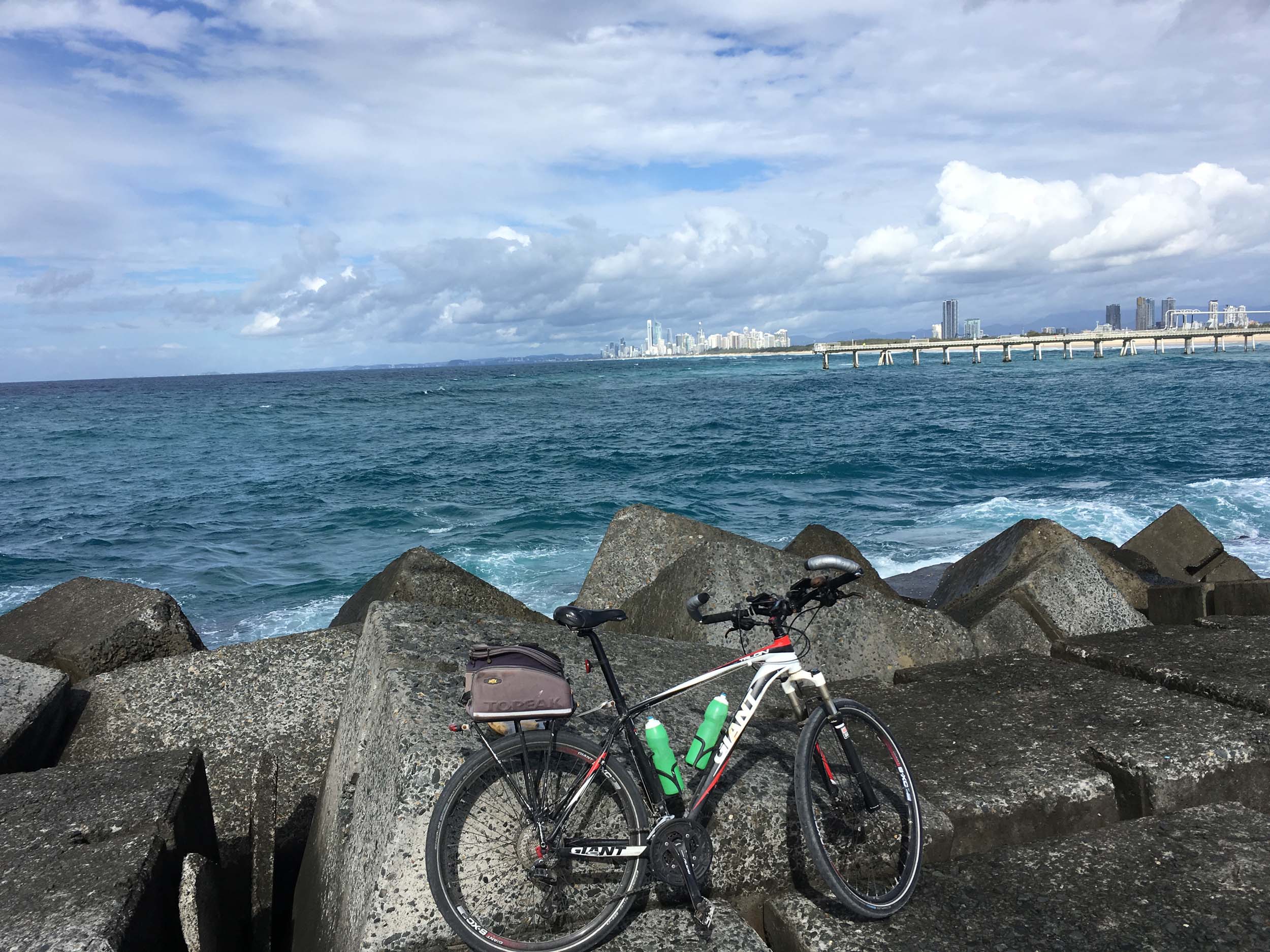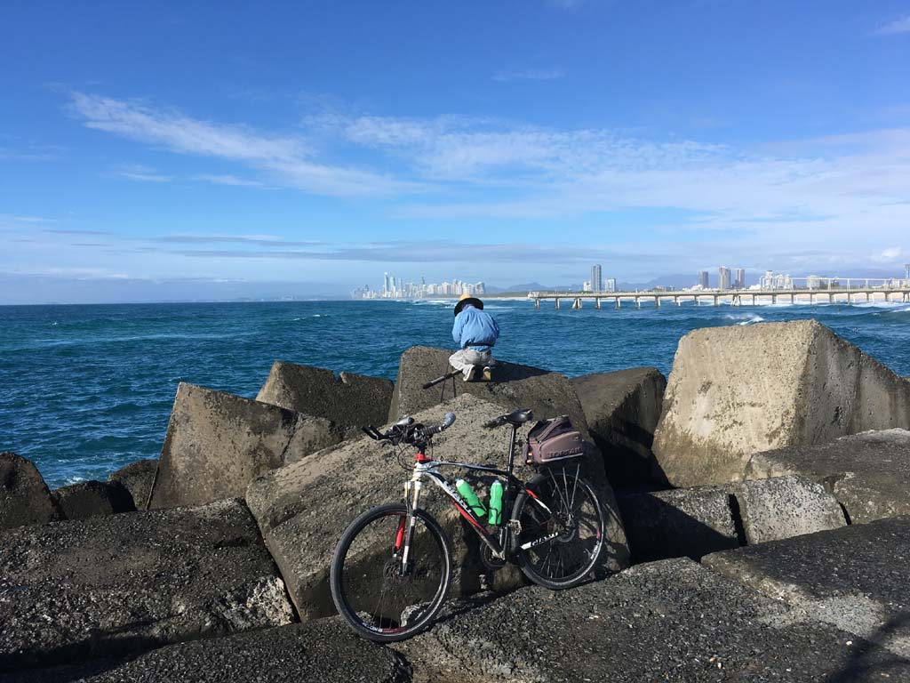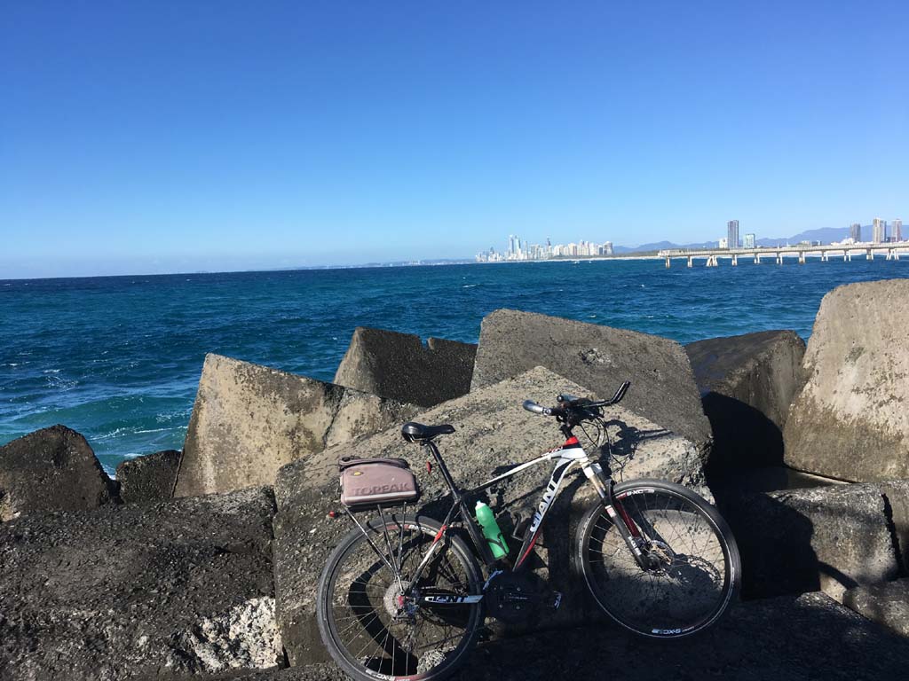 After sunrise, I had brekky and left at 7:53am. I rode my normal route with the Burleigh Heads option. The breeze was a slight, building headwind the whole way to Burleigh Heads.