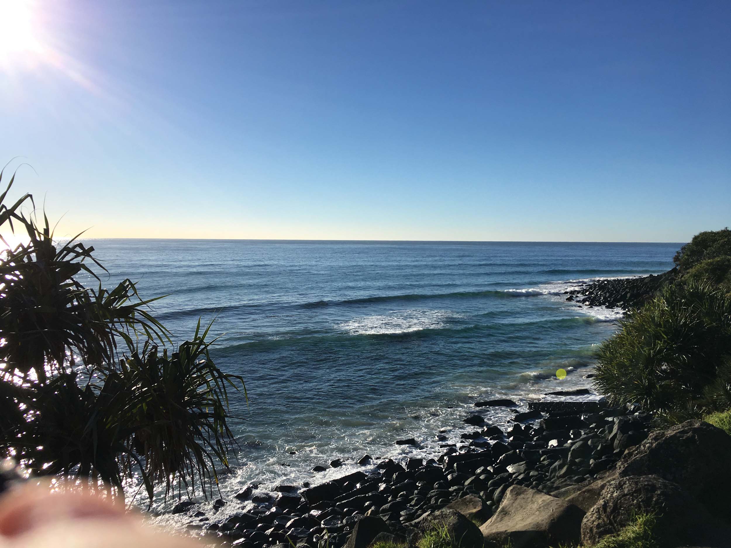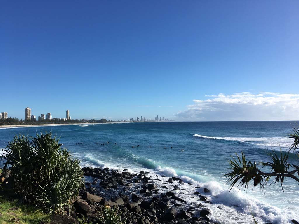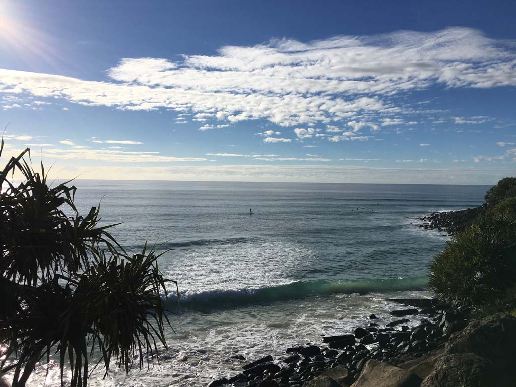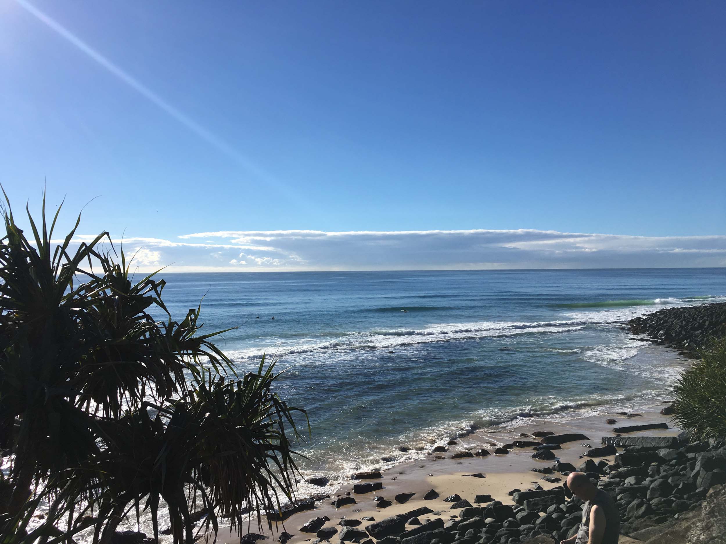 After sunrise, I had brekky and left at 7:53am. I rode my normal route with the Burleigh Heads option. The breeze was a slight, building headwind the whole way to Burleigh Heads.