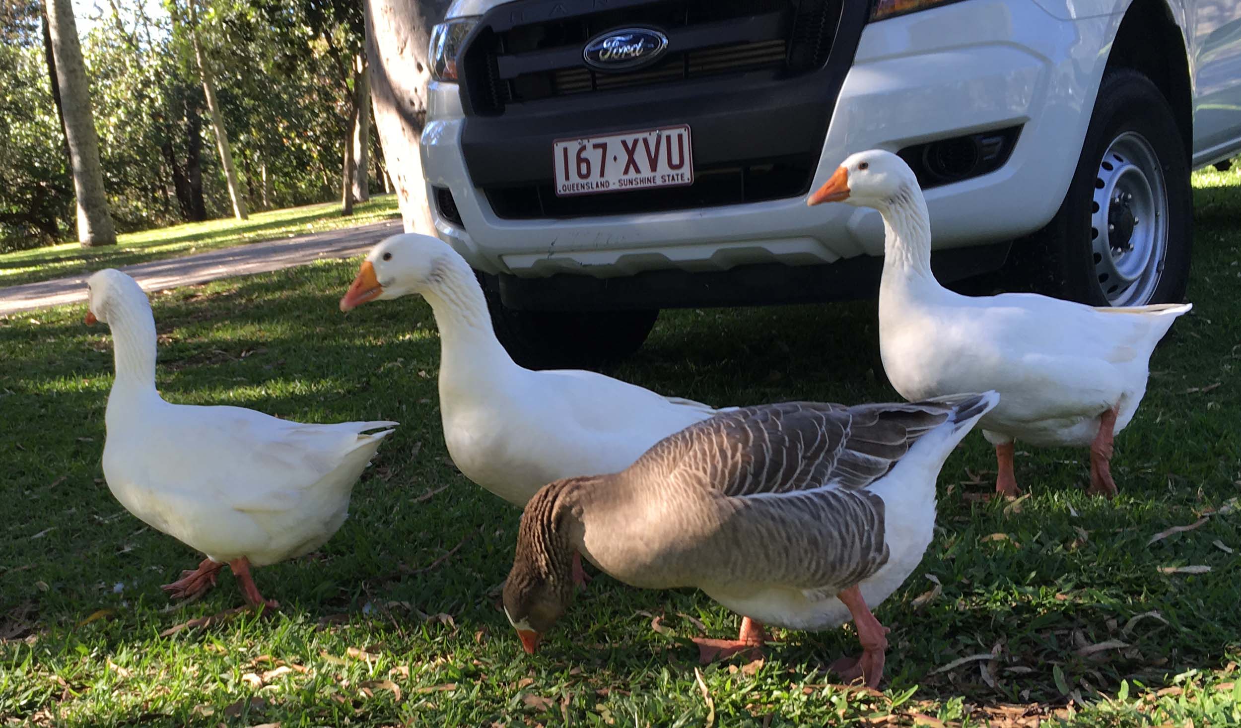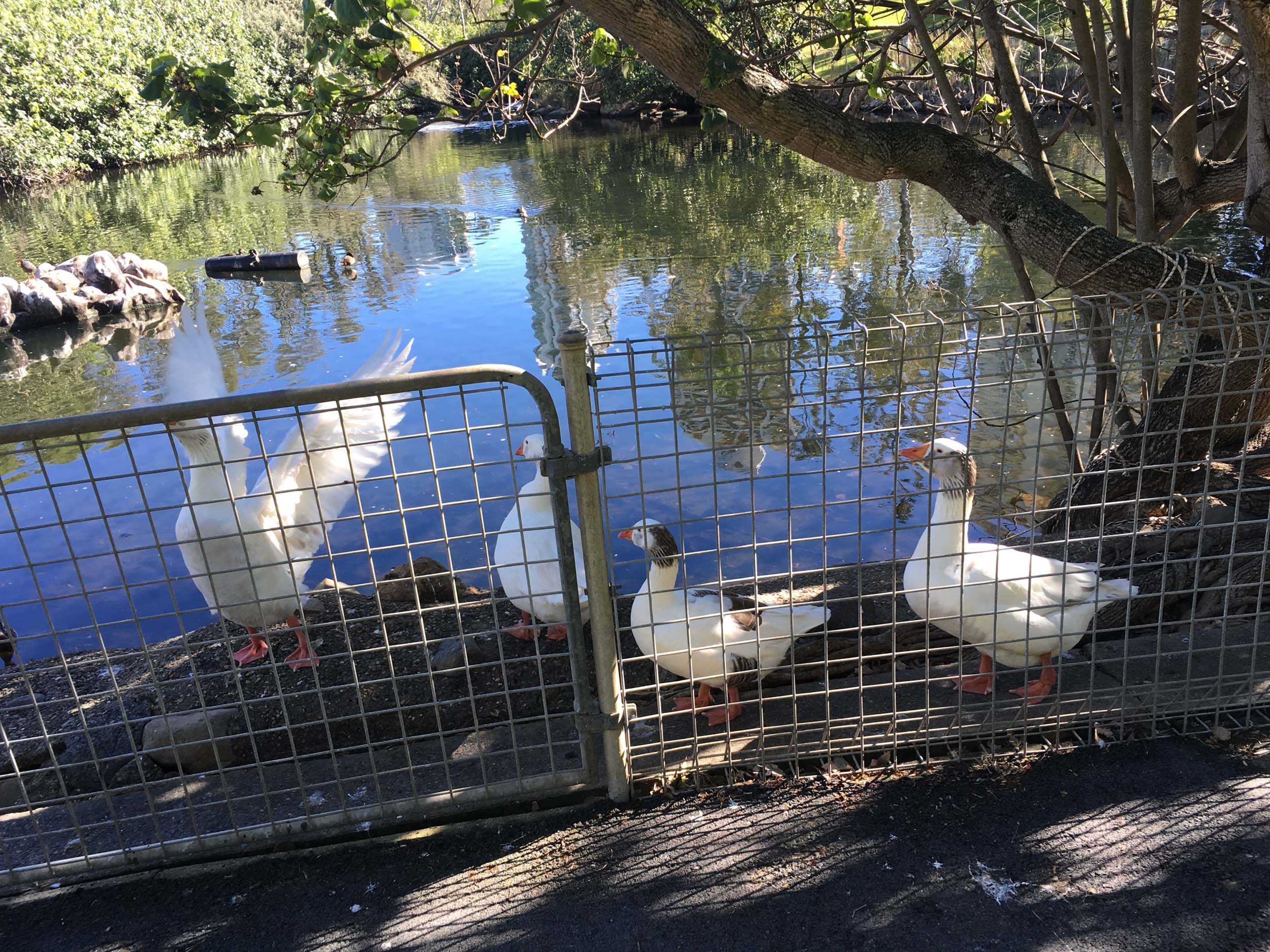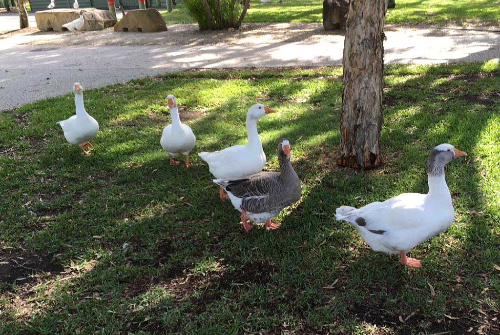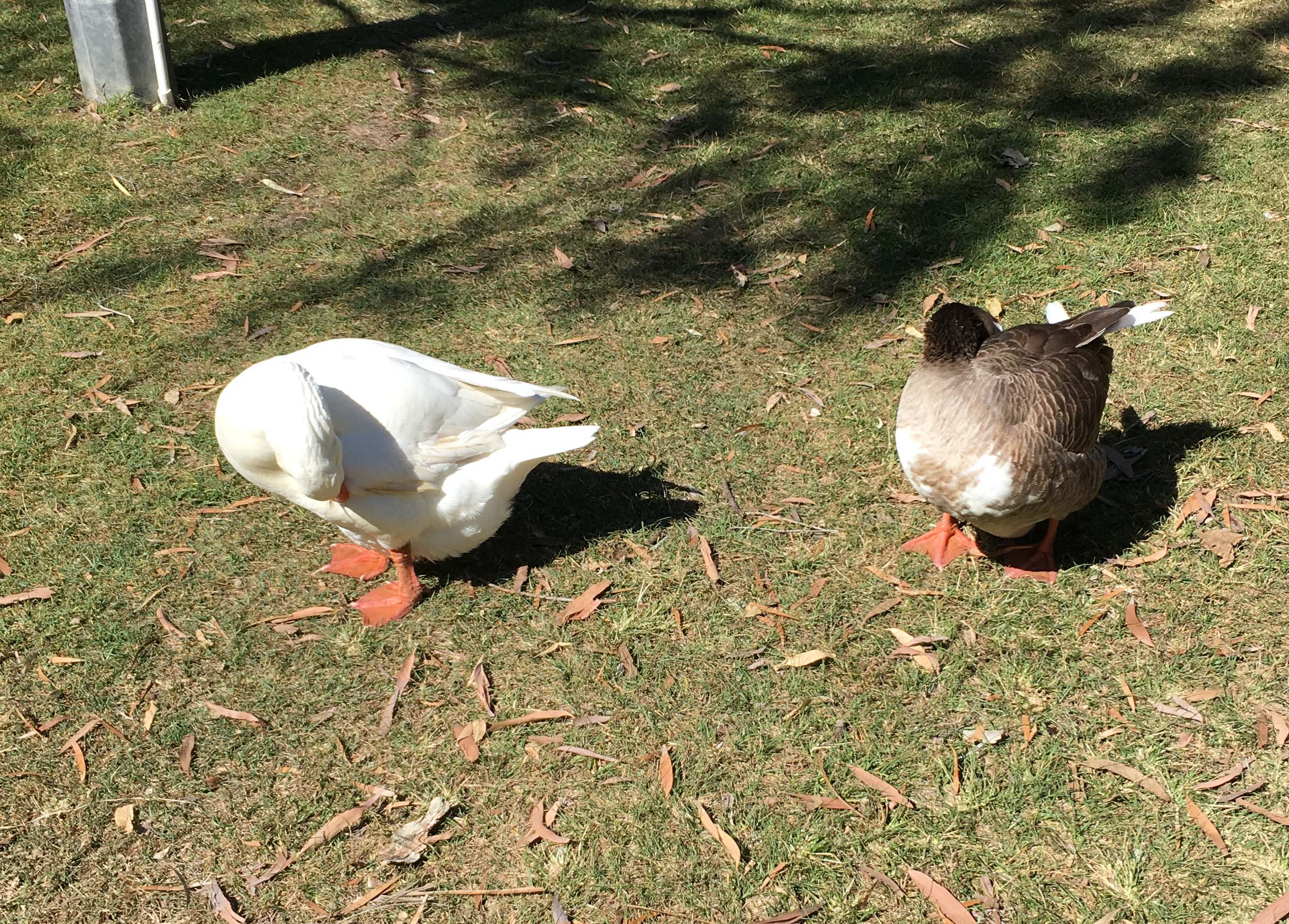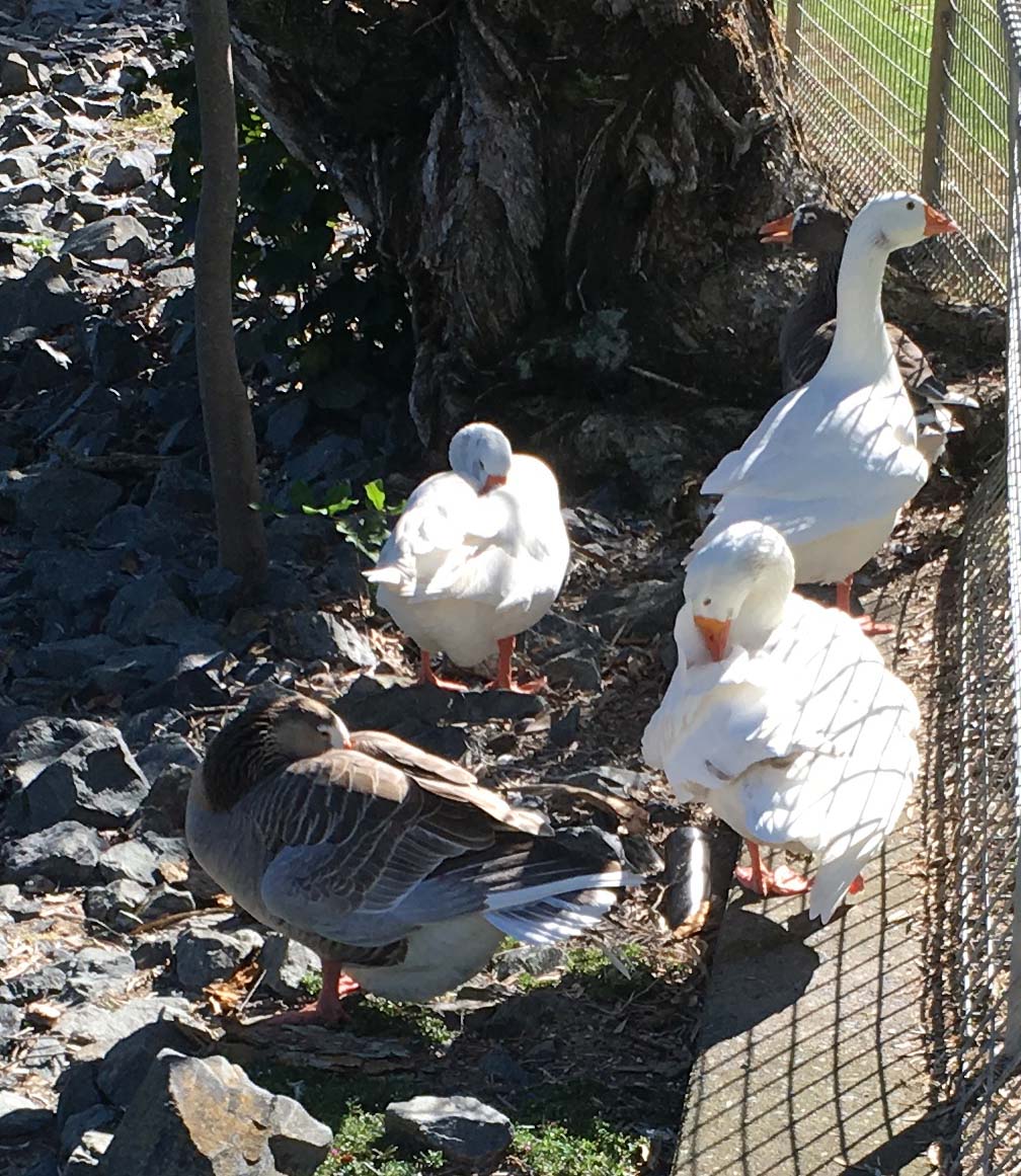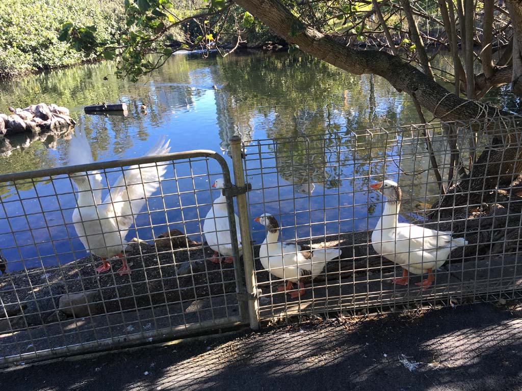 I planned to ride with Jay (my eldest son) but after the weather report on Friday night, we decided to give it a miss. I woke at 6:17am and checked the weather, it was blowing and raining, so it was a good decision not to ride. About 8am, the weather had improved a lot, so I decided to ride my normal route. I left home at 8:18am and while heading south, I had to push into a bugger of a headwind. At MacIntosh Is, I spoke to Mark (the head gardener). On weekends, the 8 geese are let off the island for about 3 hours, then put back on the island.