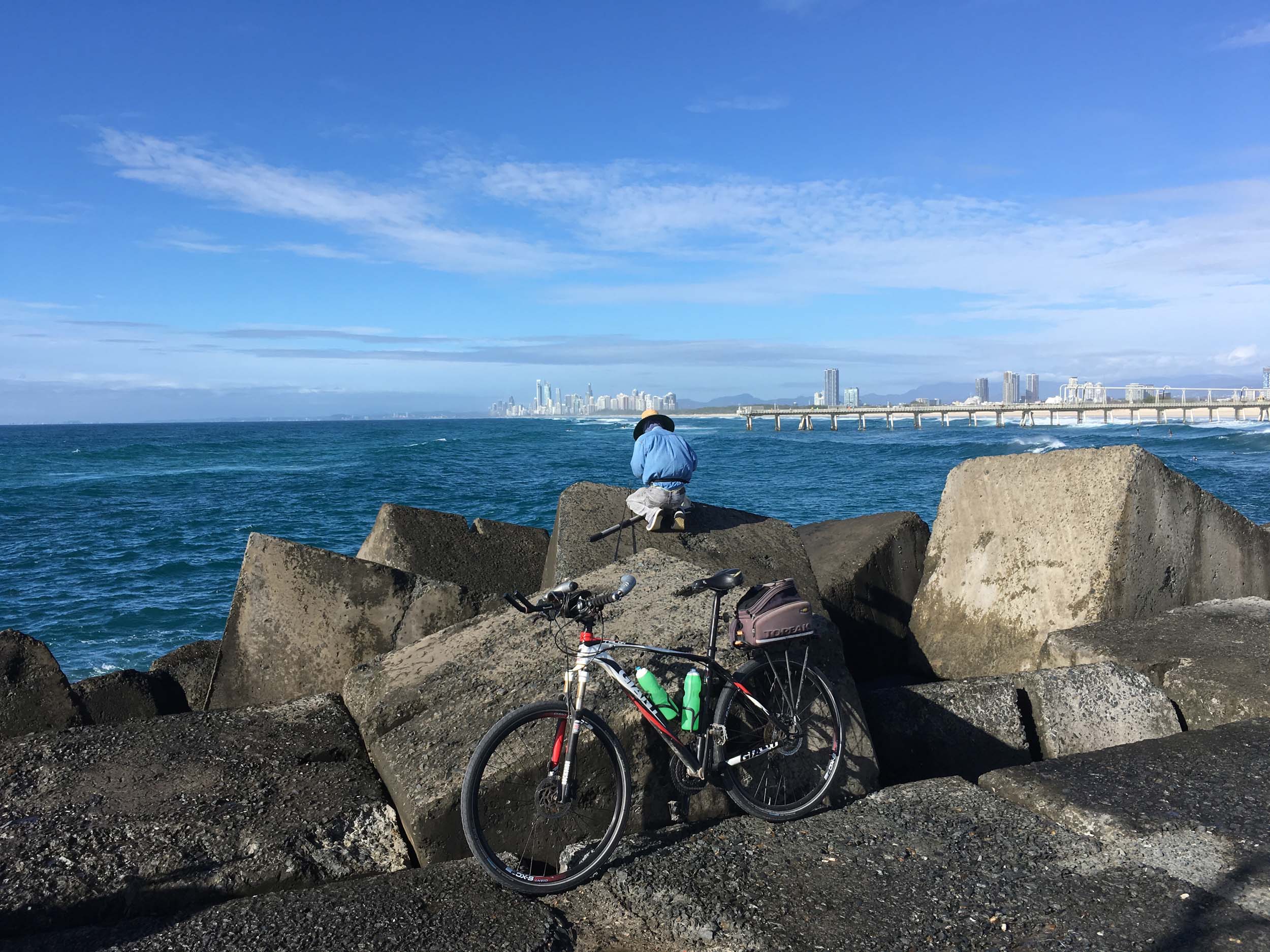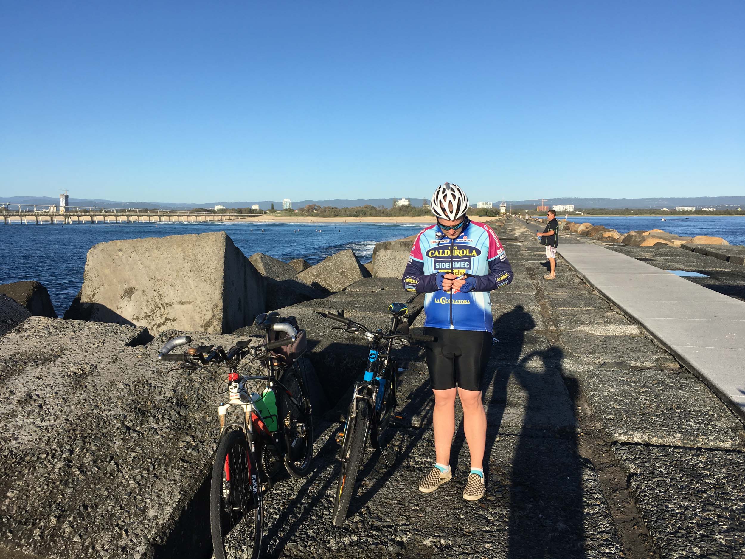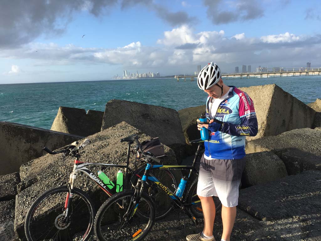 I rode to the ends of both Spits (east and West). Headed off for a coffee at cafe Rockpool via another lap of MacIntosh Is. Spoke to Kamal who is manager of cafe Rockpool. He asked when he would see Mase (grandson) again, I said soon. After coffee I headed back home.
