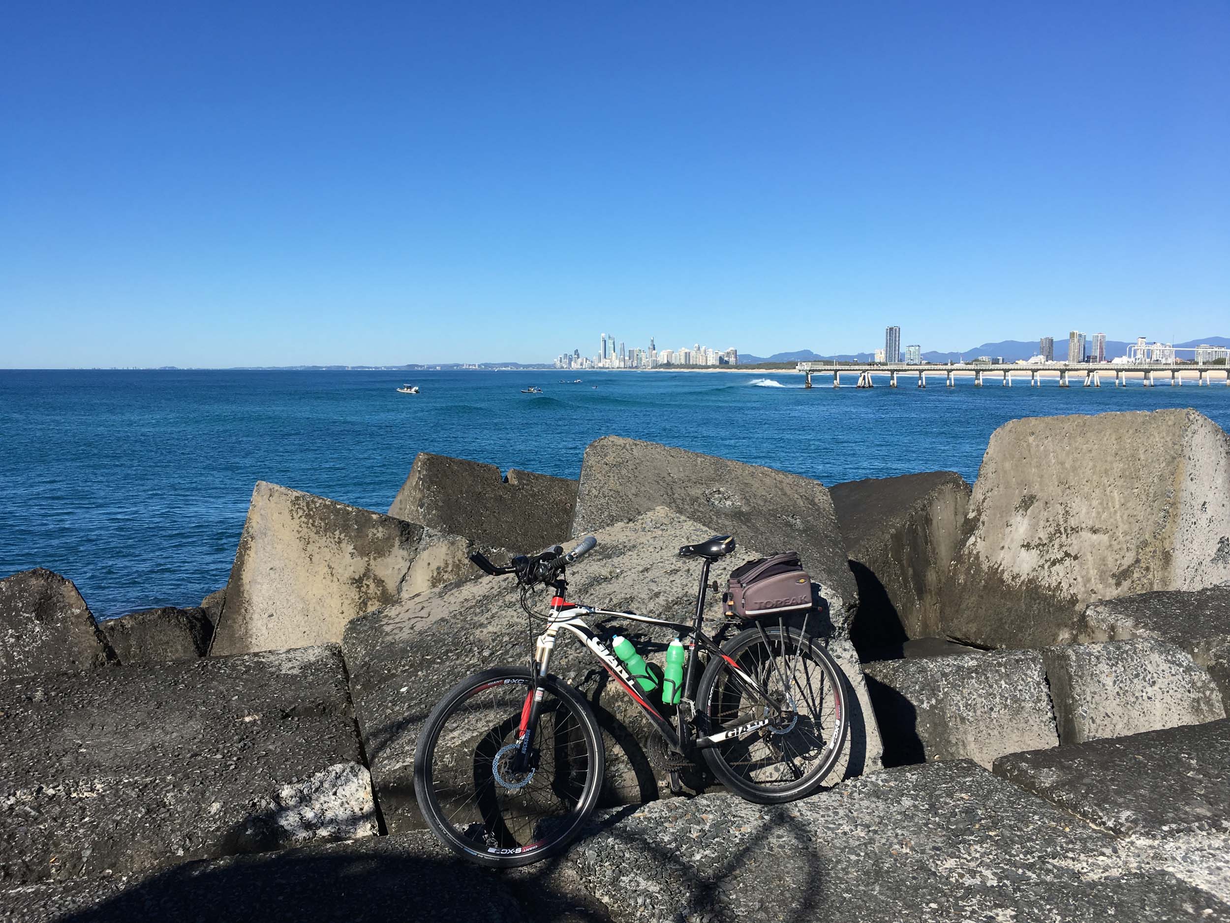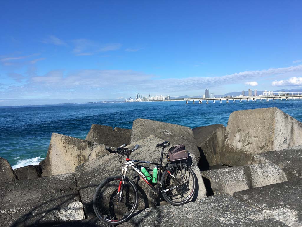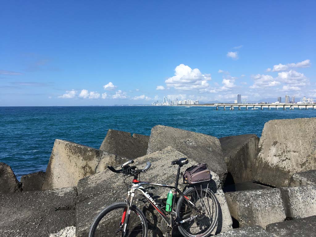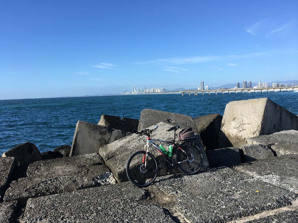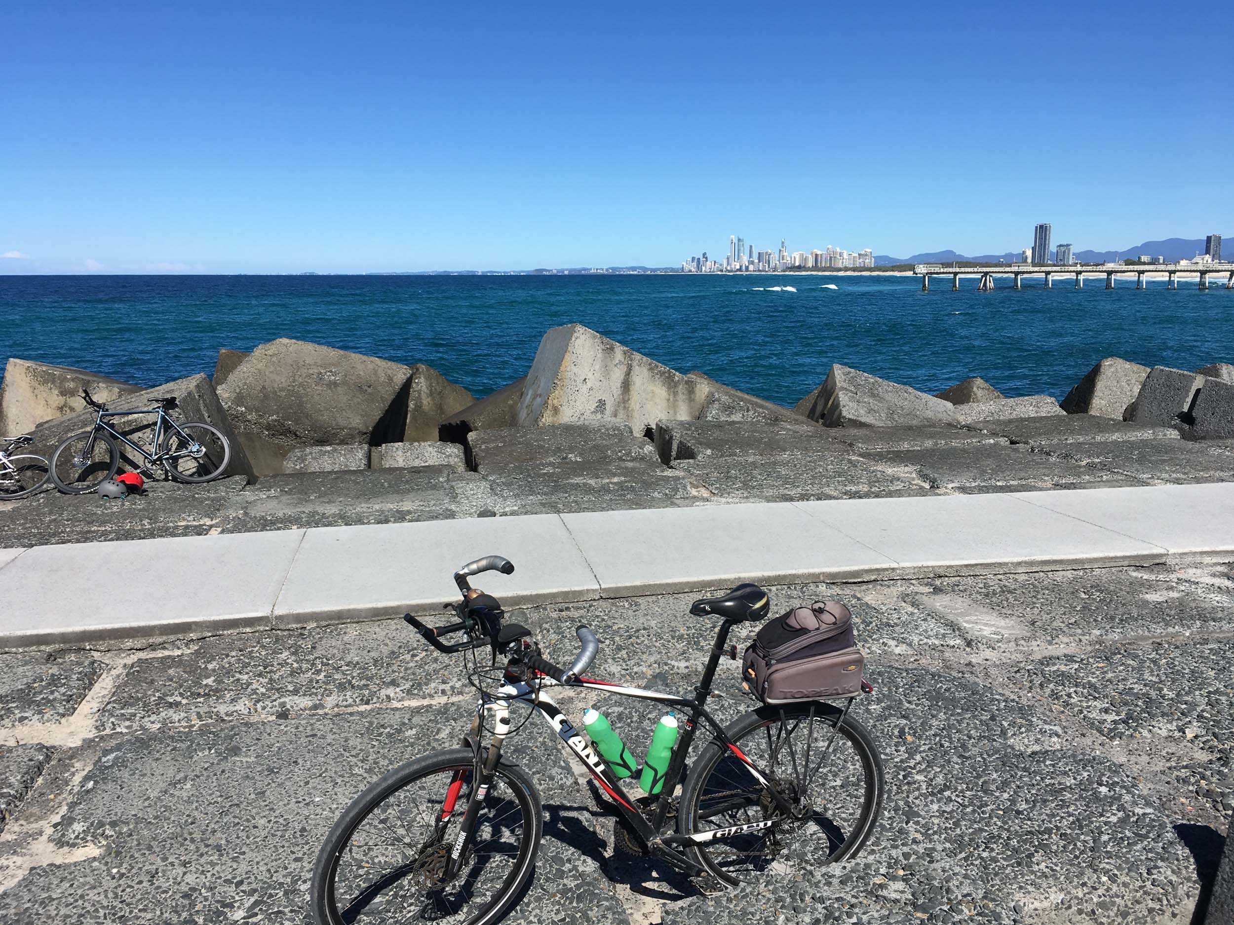 Yesterday week, Jay mentioned friding to Broadbeach. Today I suggested that we include down to Surfers. We rode upto Lands End first, then to both Spits and then to Surfers, then home via MacIntosh Island park and Lands End again.