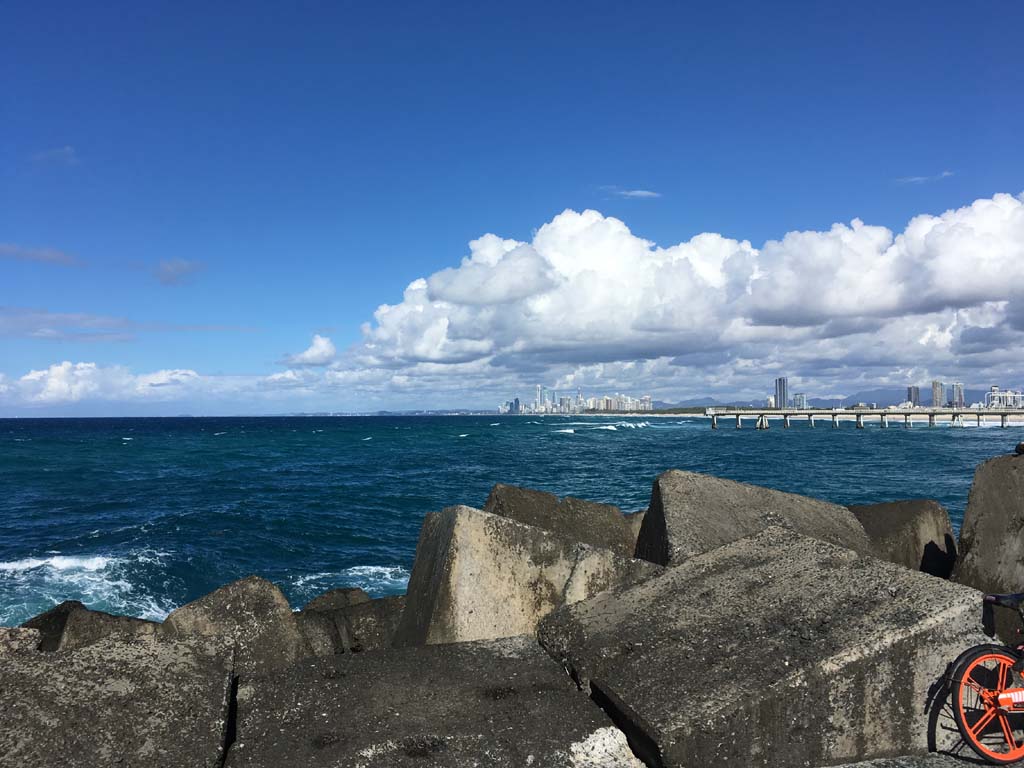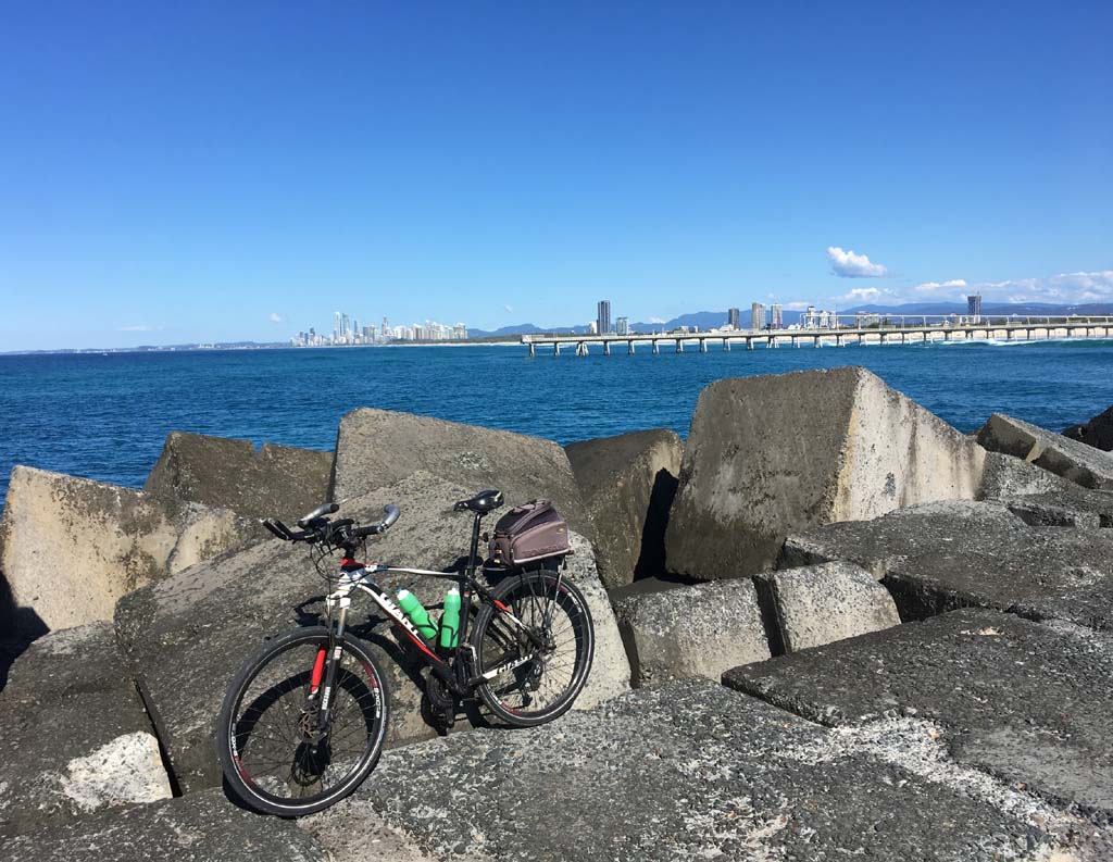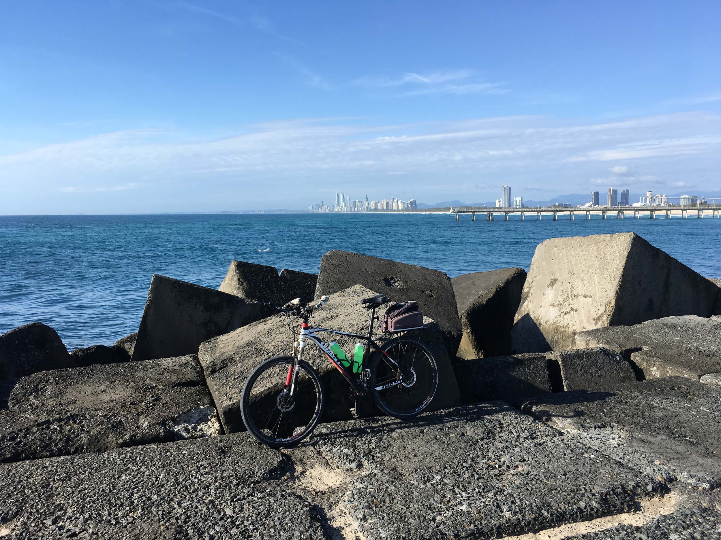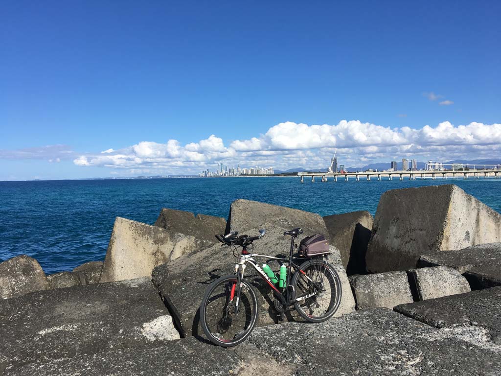 Yesterday week, Jay mentioned friding to Broadbeach. Today I suggested that we include down to Surfers. We rode upto Lands End first, then to both Spits and then to Surfers, then home via MacIntosh Island park and Lands End again.