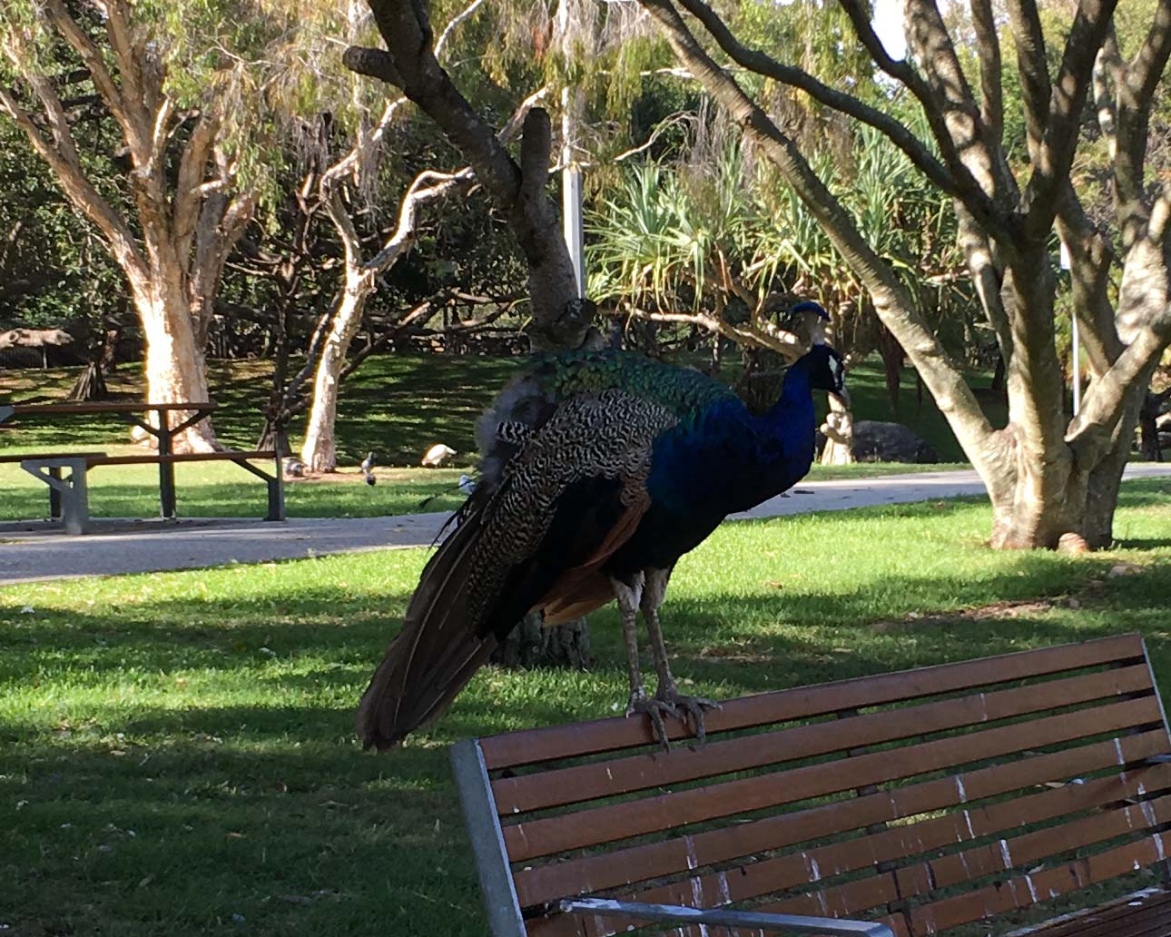Stopped for a coffee at Cafe Rockpool after completing another lap of MacIntosh Is. The Peacocks were out in force. Spoke to Kamal who is manager of cafe Rockpool. After coffee I headed back home. Another brilliant ride.