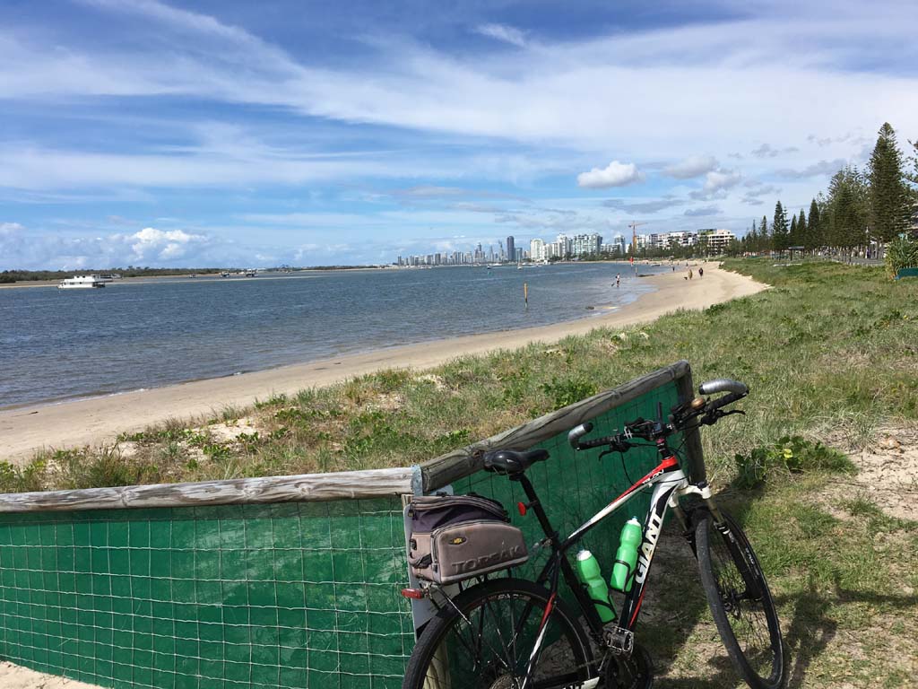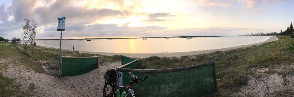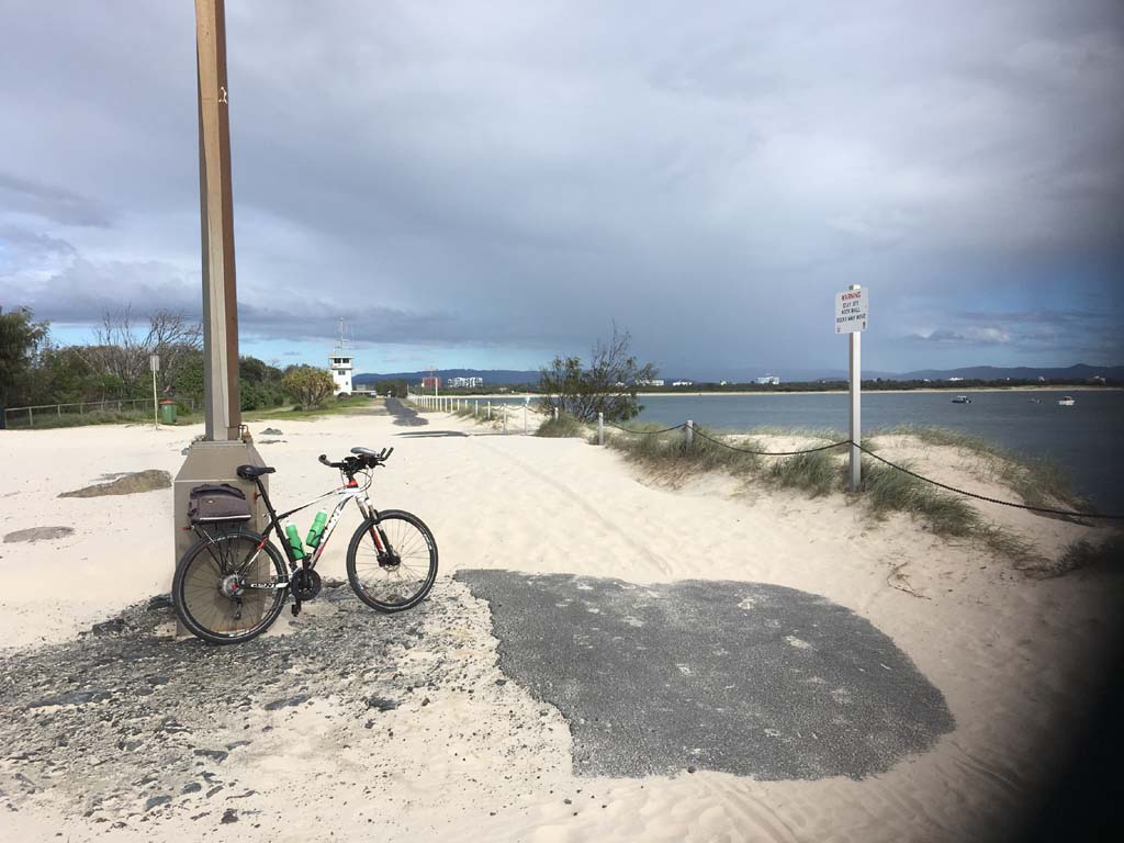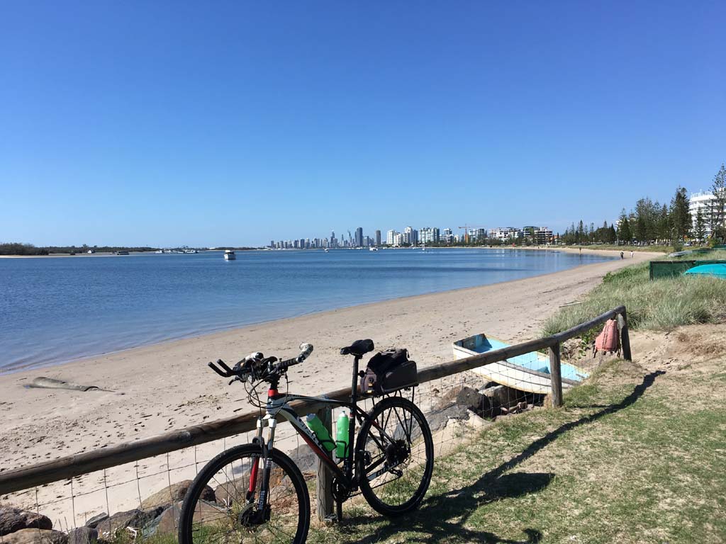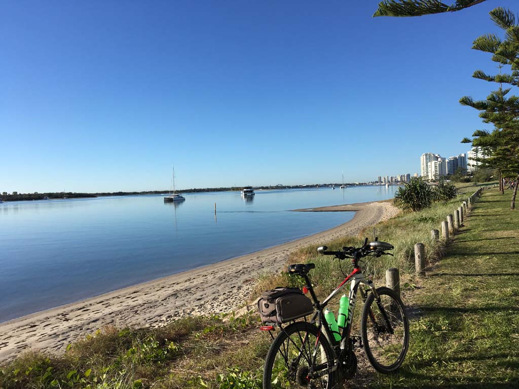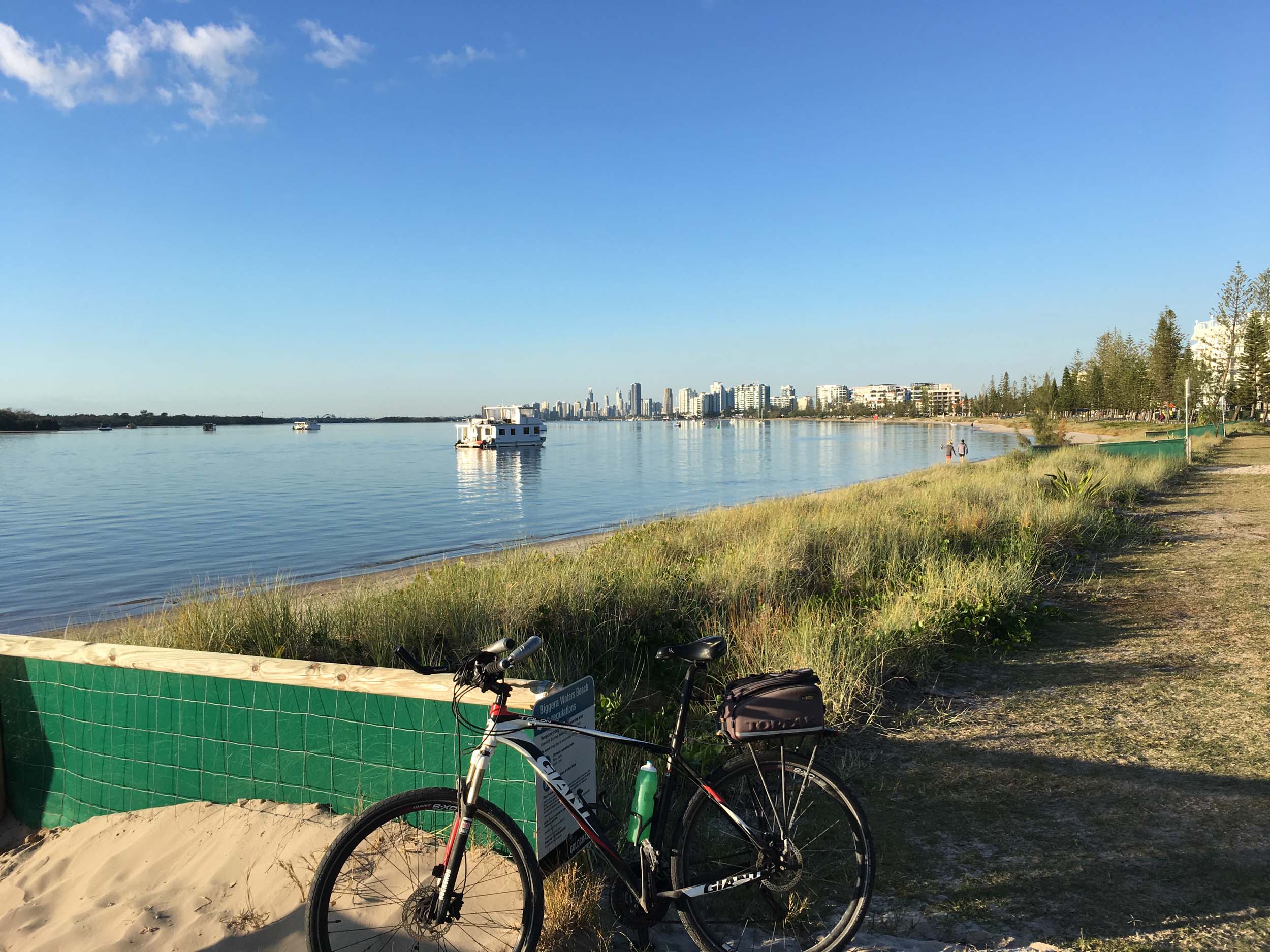 Rode to the end of the Broadwater Spit then around the shared path that surround the Doug Jennings park. Back along the gravel track to MacIntosh Park.