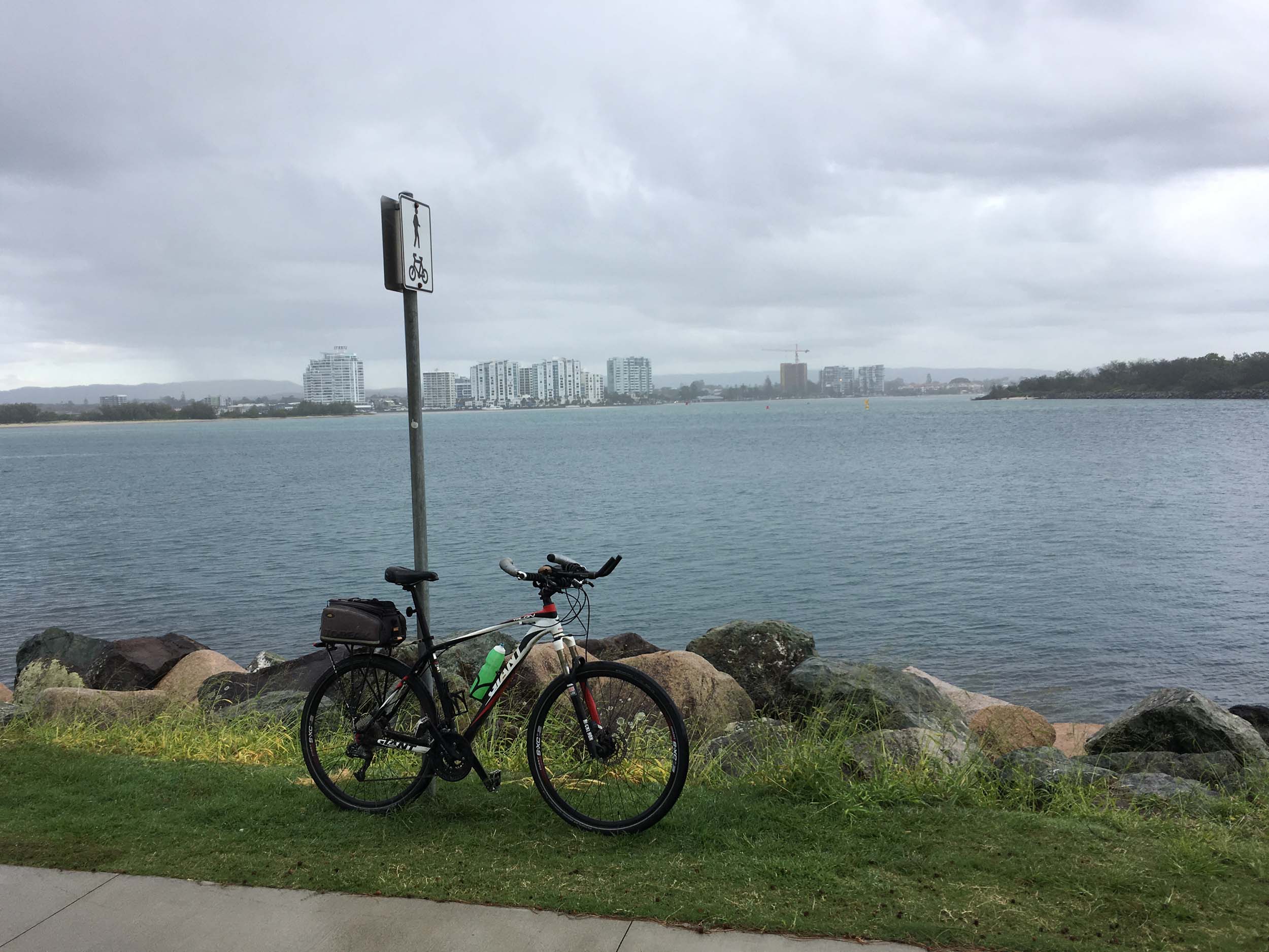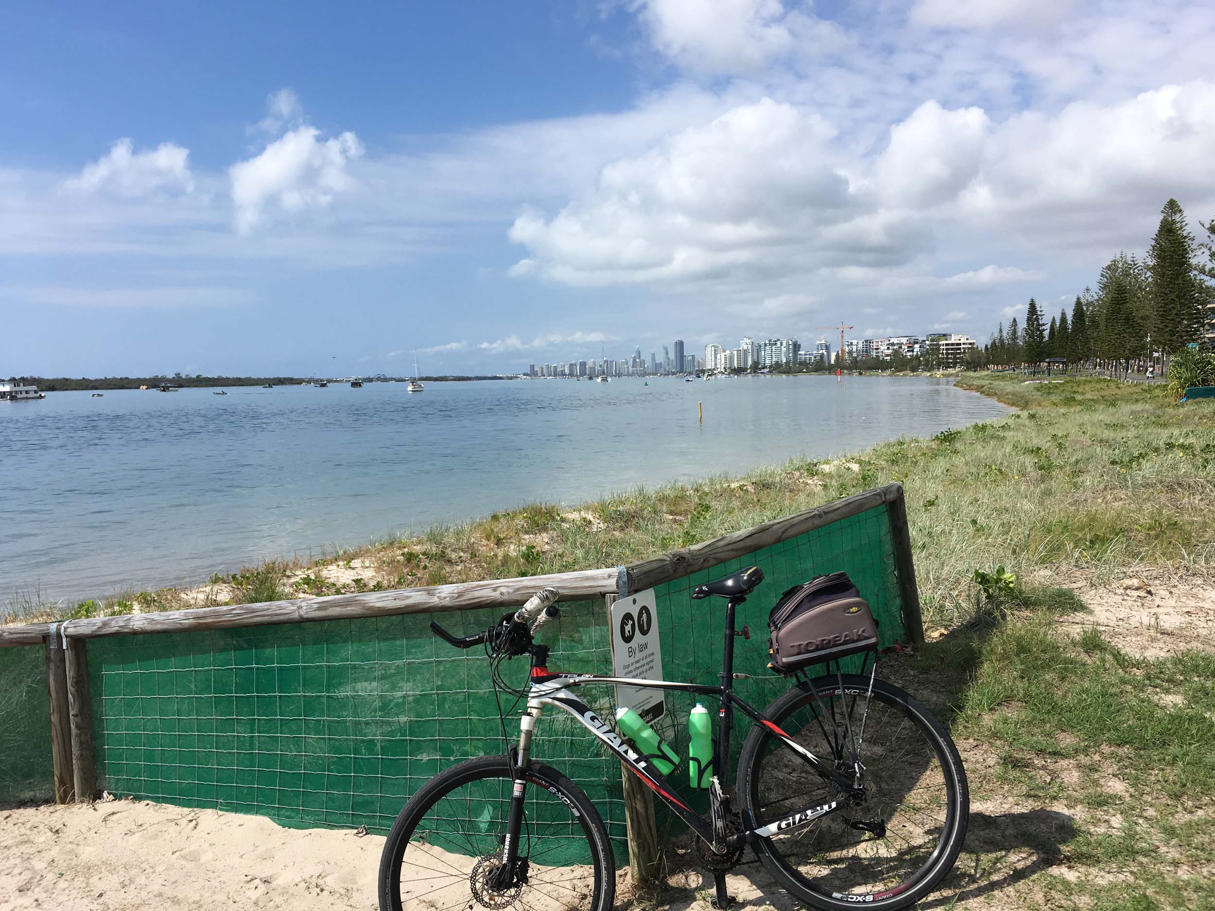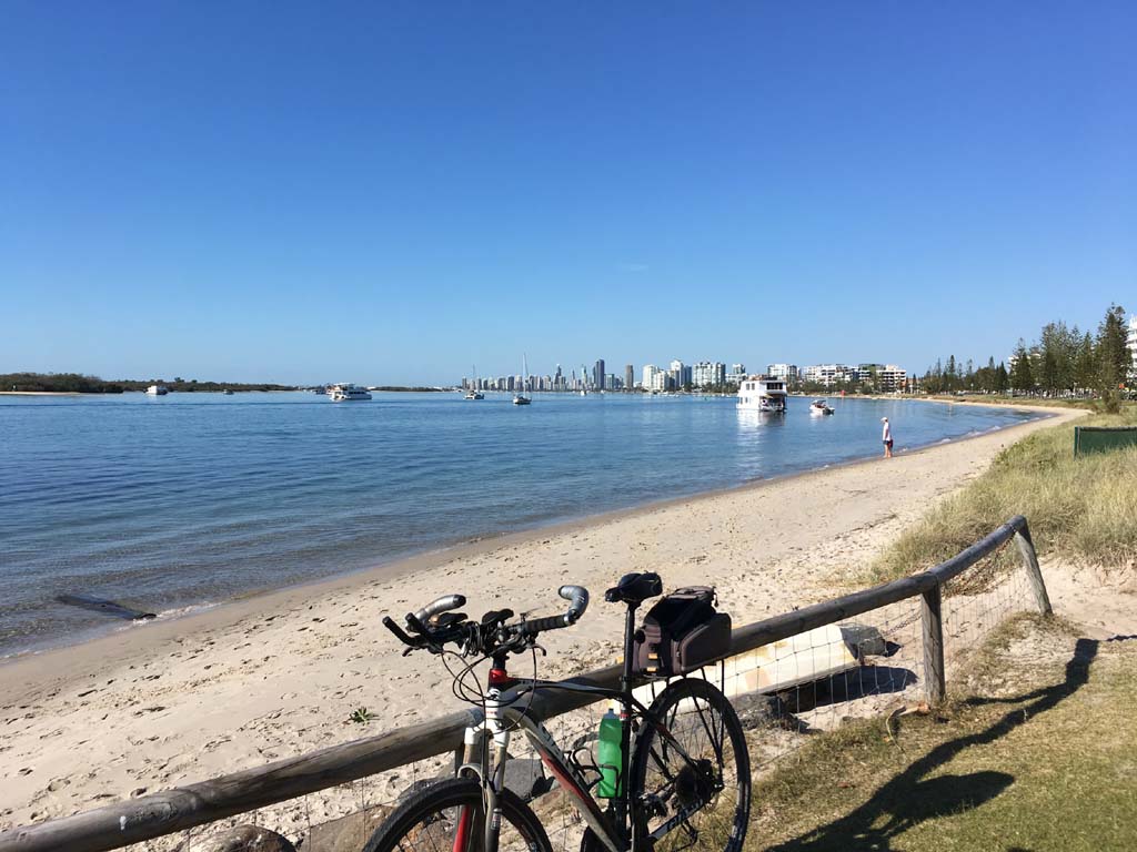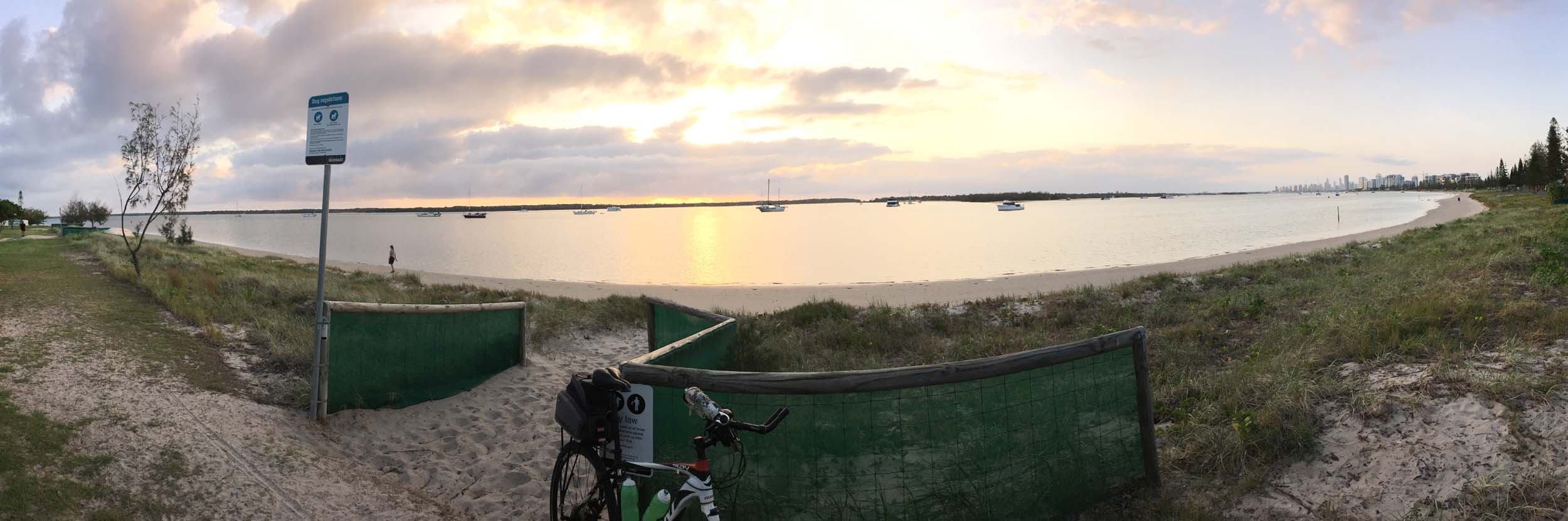 Rode to the end of the Broadwater Spit then around the shared path that surround the Doug Jennings park. Back along the gravel track to MacIntosh Park.