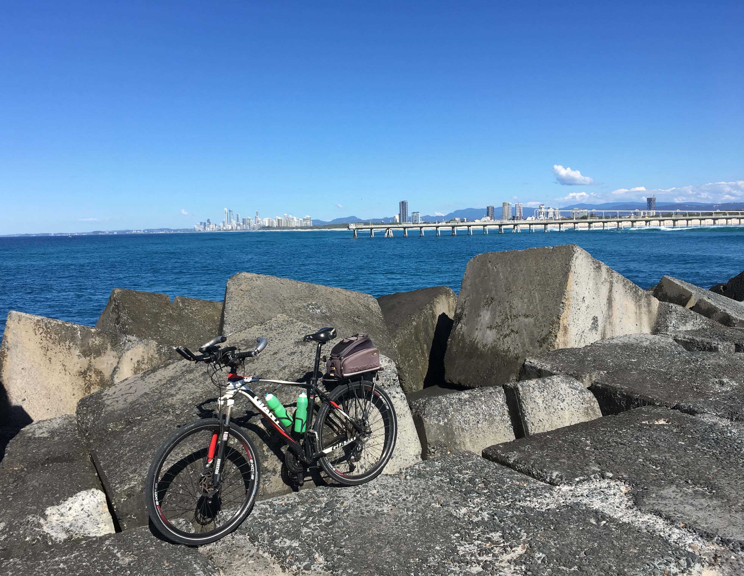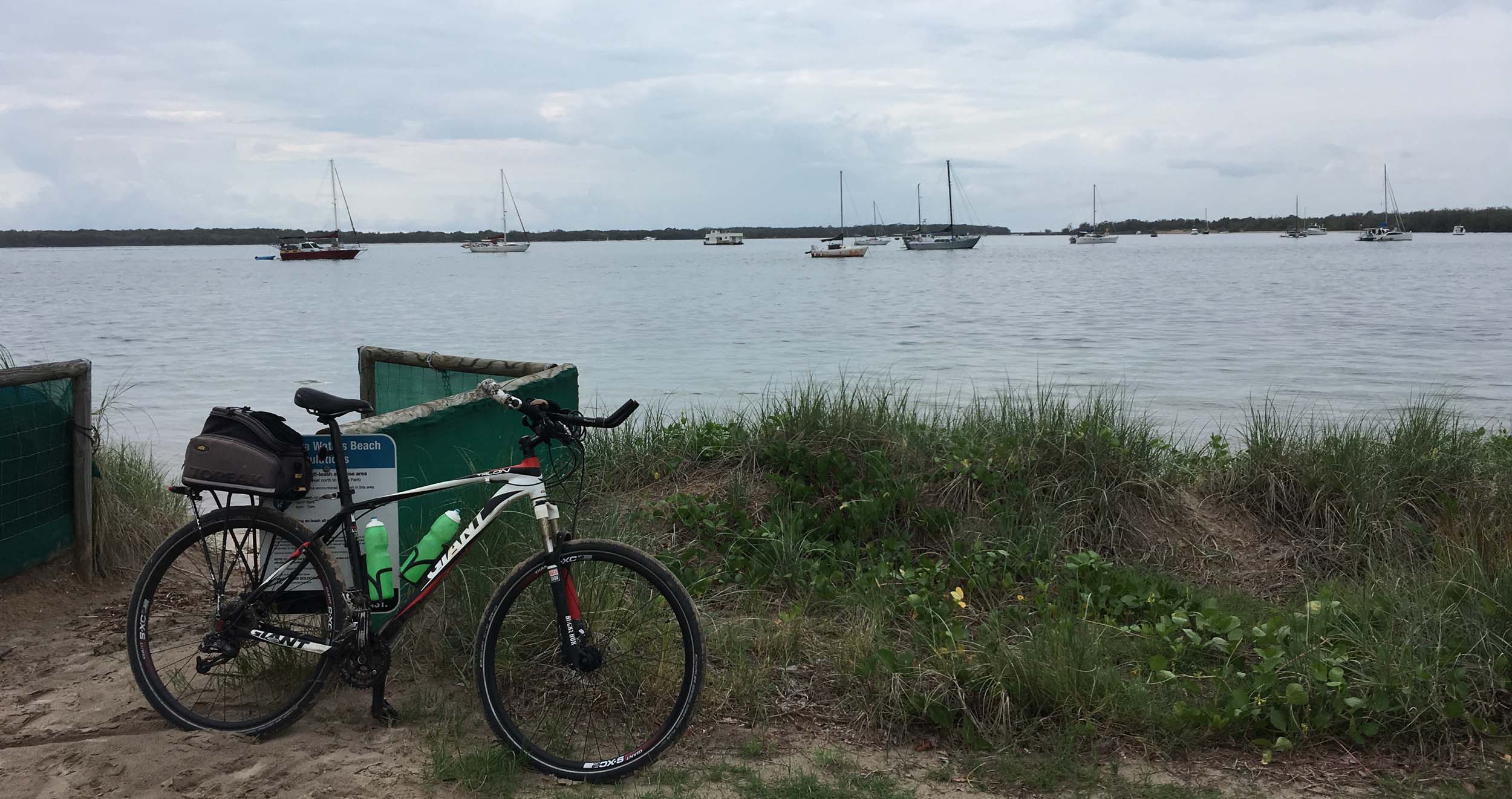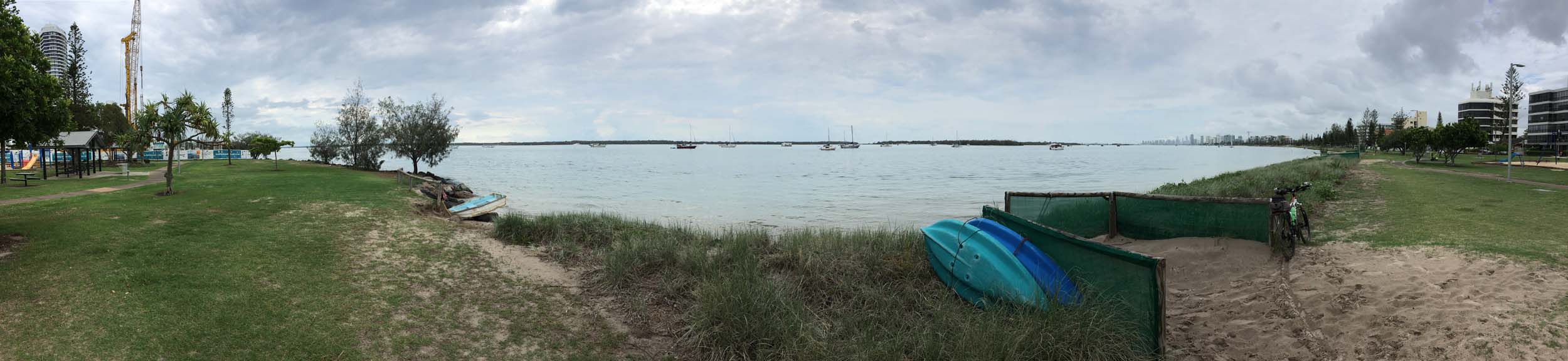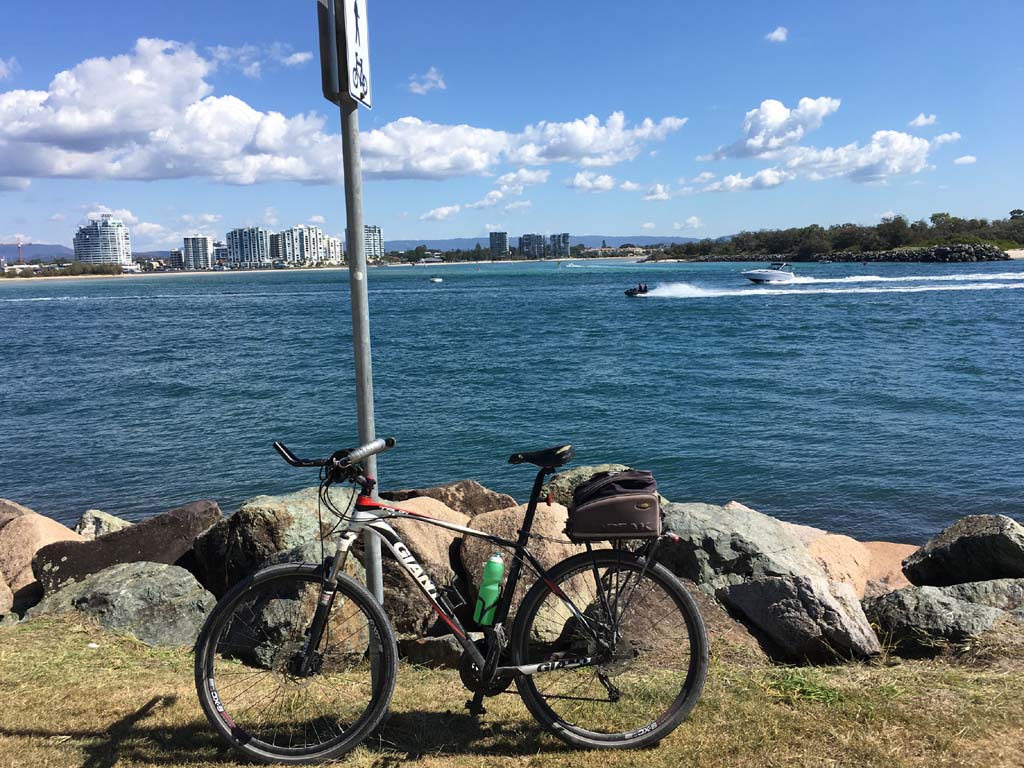 Rode to the end of the Broadwater Spit then around the shared path that surround the Doug Jennings park. Back along the gravel track to MacIntosh Park.