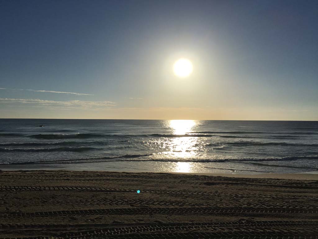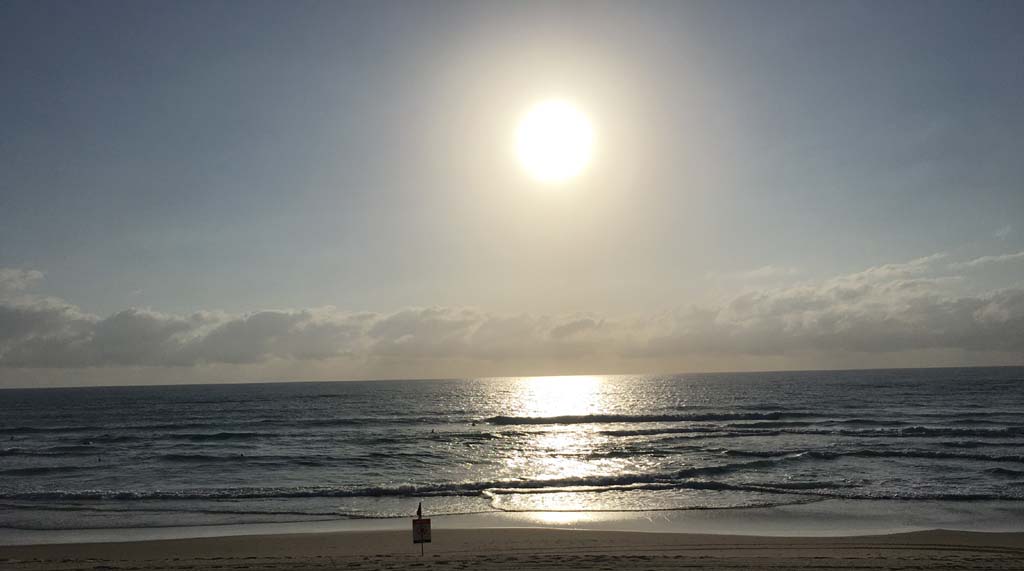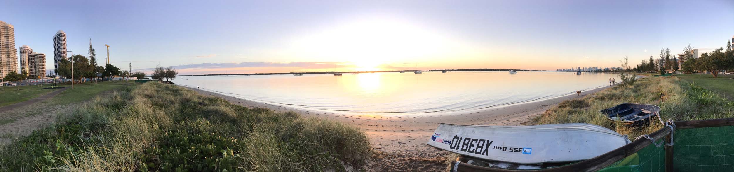 After sunrise, I had brekky and left at 7:31am. I rode my normal route with the Burleigh Heads option. The breeze was non existent.