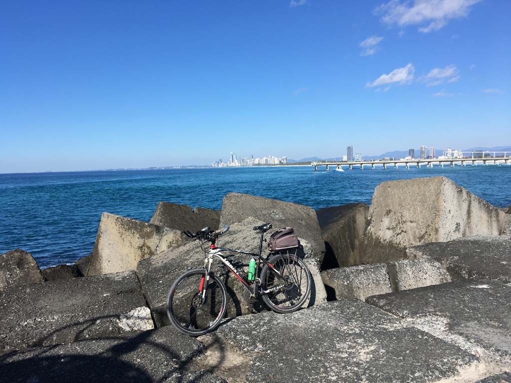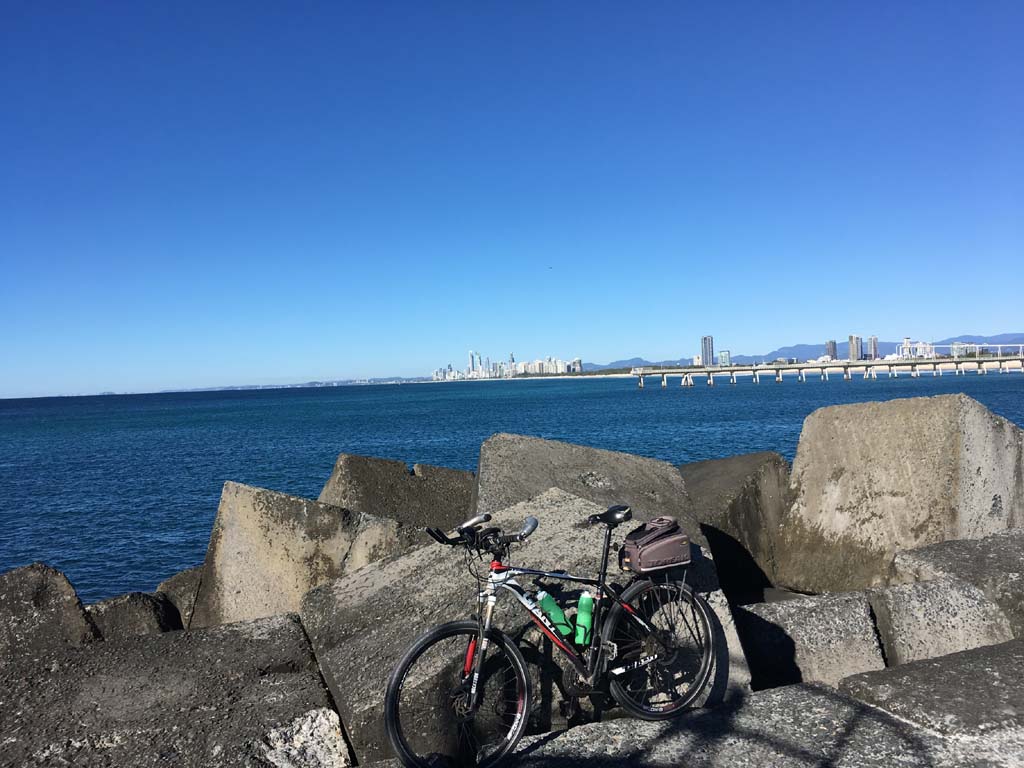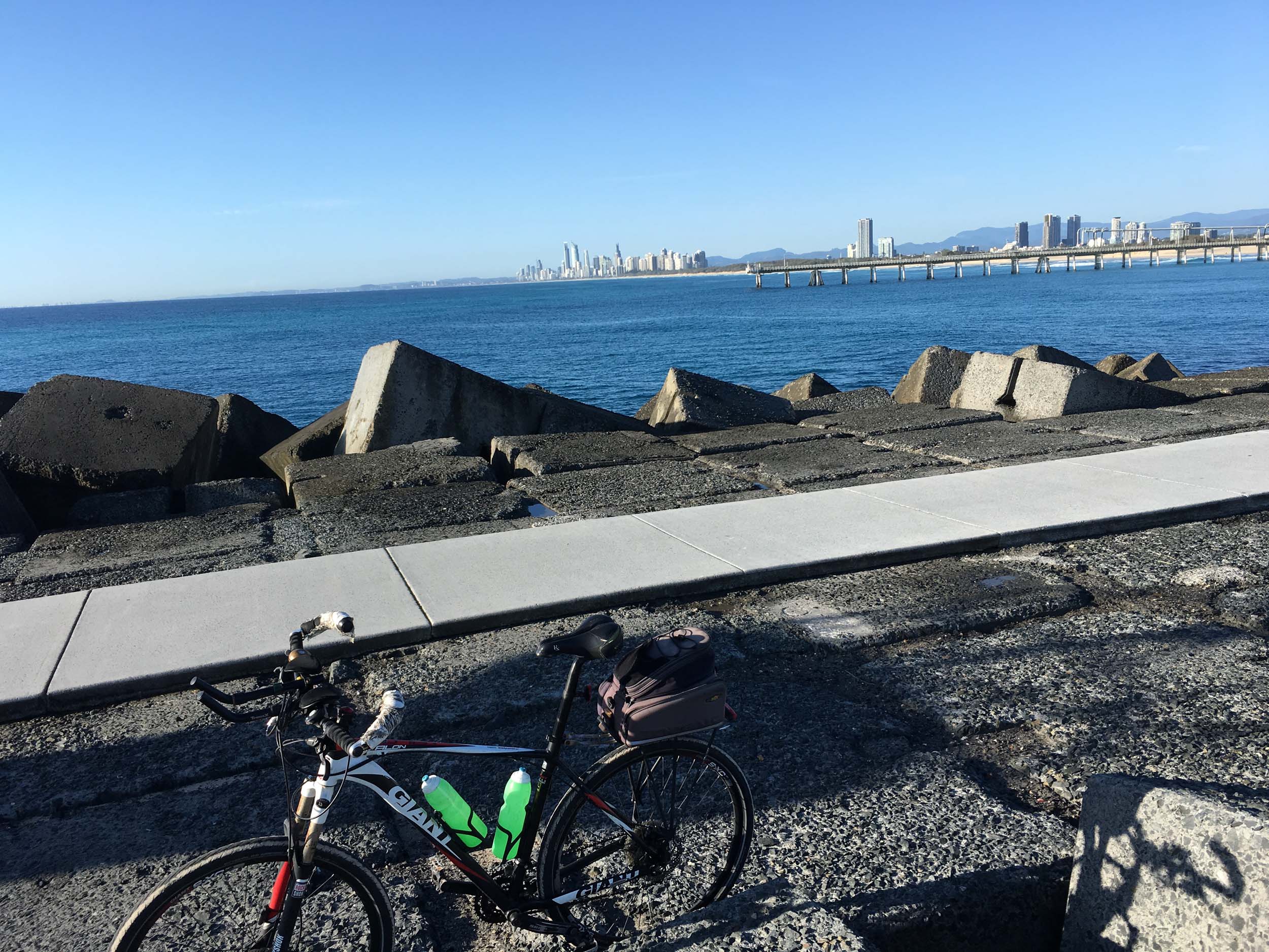Rode to the end of the Broadwater Spit then around the shared path that surround the Doug Jennings park. Back along Seaworld Dve, past the Southport YC and back home.