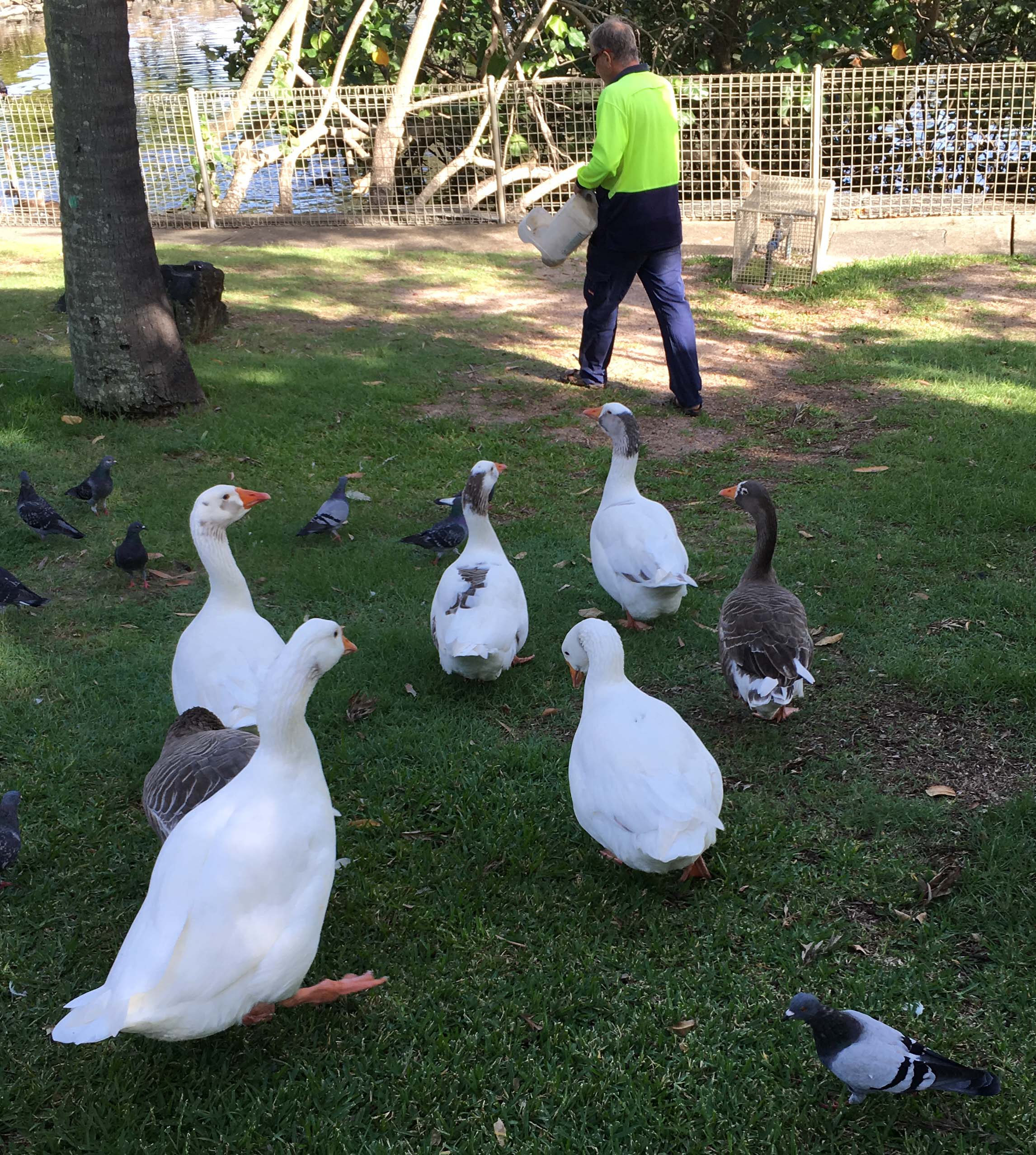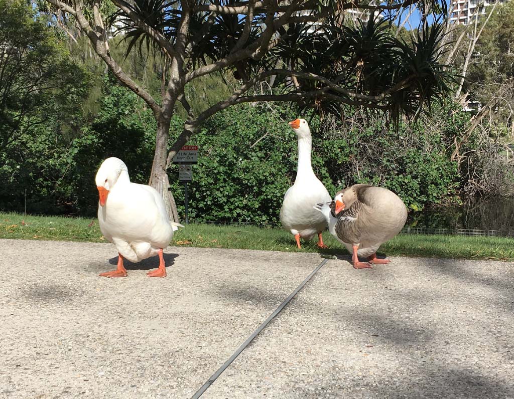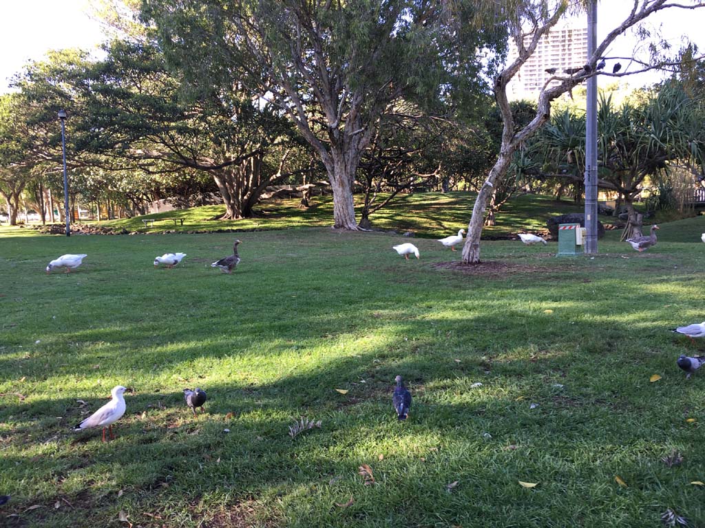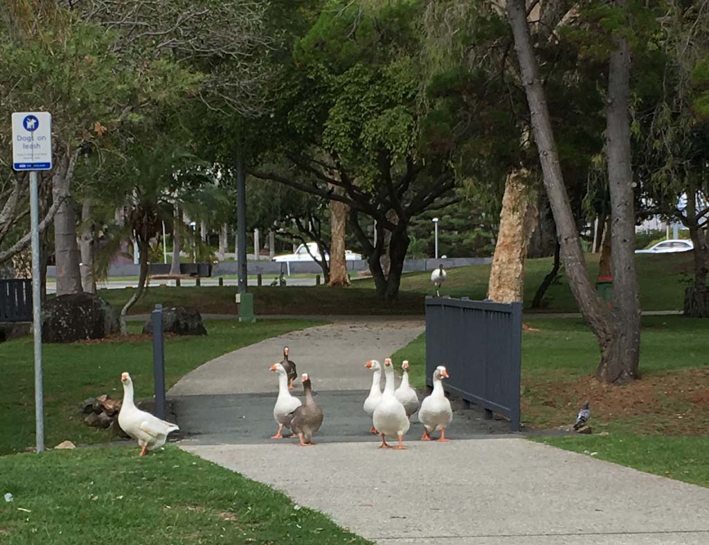 As normal, I rode to the end of both Spits. Sat at the end of the East Spit and ate my 2 bananas. They were YUMMA. Rode to the end of the Broadwater Spit then around the shared path that surround the Doug Jennings park. Back along the Federation Walk to Southport SLSC then along the shared path back to MacIntosh Island opposite Narrowneck at Main Beach. Back at MacIntosh Is. I rode my lap of the Island and then took photos of Peter Peacock and Goosey Lucy and mates.