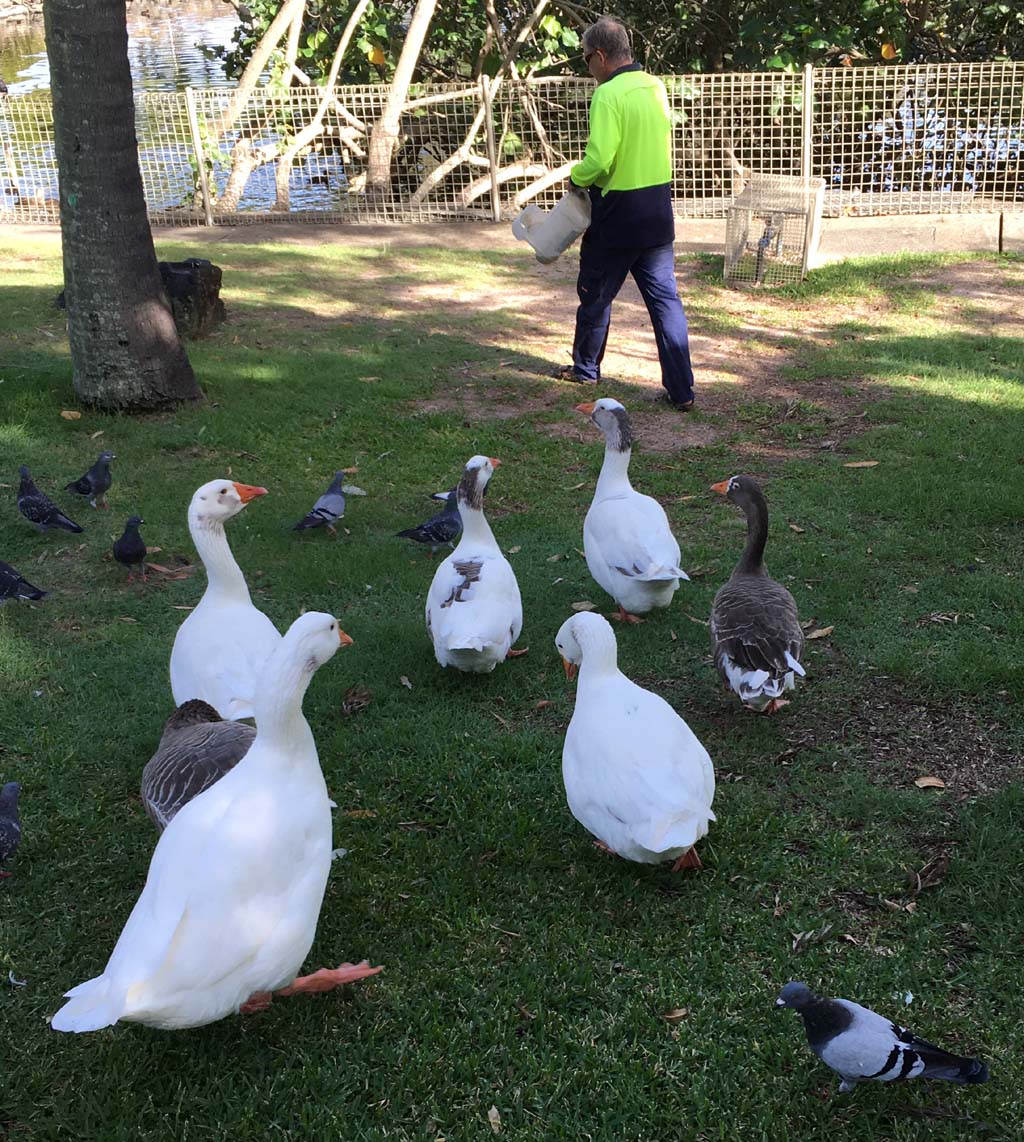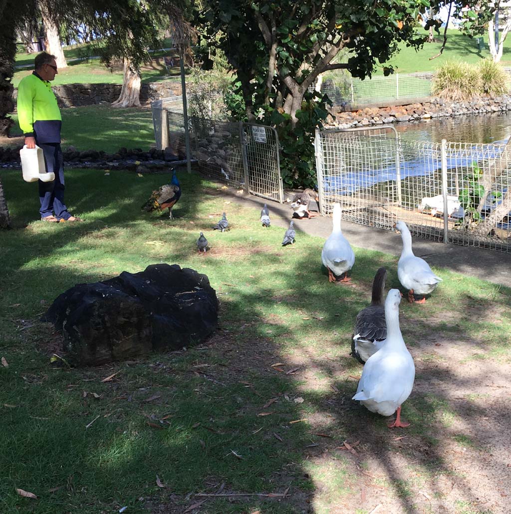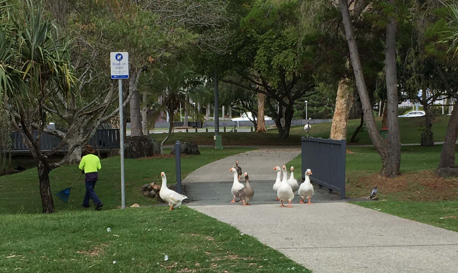As normal, I rode to the end of both Spits. Sat at the end of the East Spit and ate my 2 bananas. They were YUMMA. Rode to the end of the Broadwater Spit then around the shared path that surround the Doug Jennings park. Back along the Federation Walk to Southport SLSC then along the shared path back to MacIntosh Island opposite Narrowneck at Main Beach. Back at MacIntosh Is. I rode my lap of the Island and then took photos of Peter Peacock and Goosey Lucy and mates.