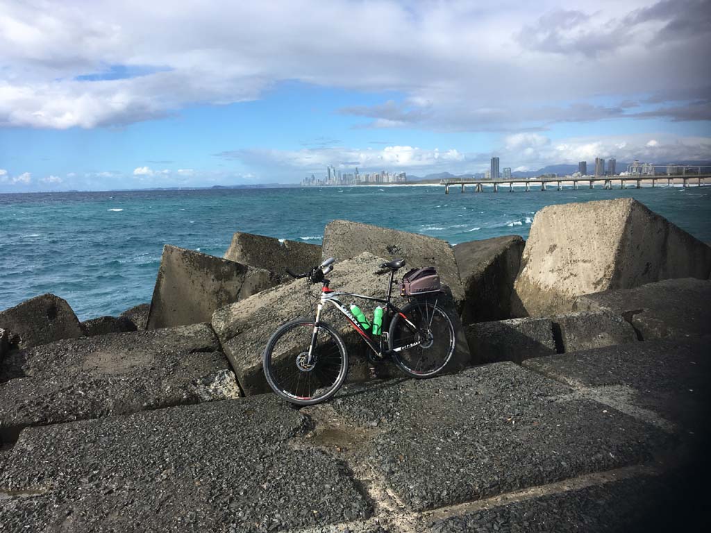Rode to the end of the Broadwater Spit then around the shared path that surround the Doug Jennings park. Back along Federation Walk, past the Southport YC, and did a lap at MacIntosh is before stopping at Cafe Rockpool for a coffee. Kamal the manager came and chatted for a few minutes and asked about Mase. After coffee, I headed home. Another brilliant ride.