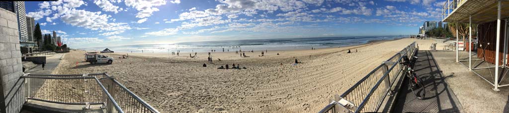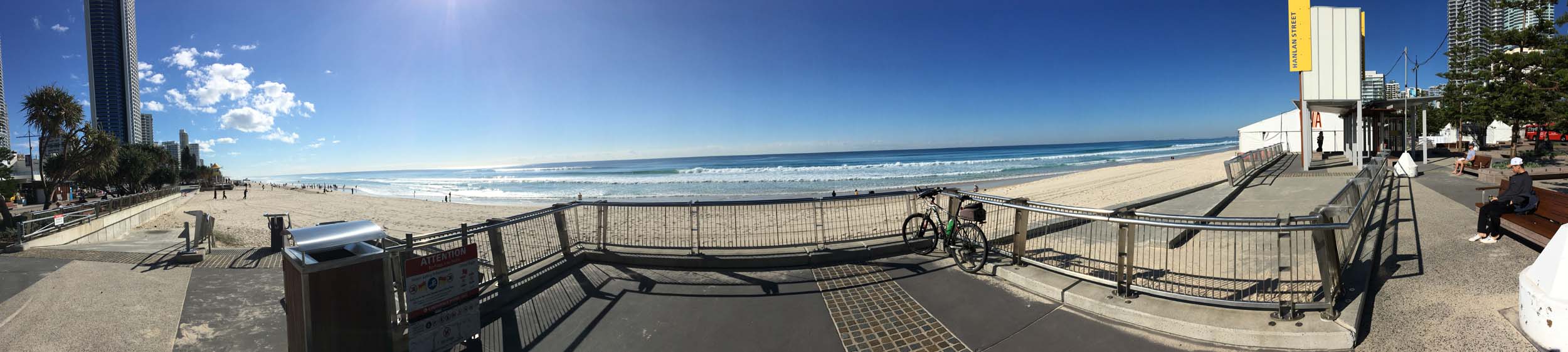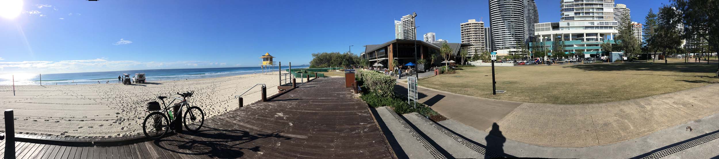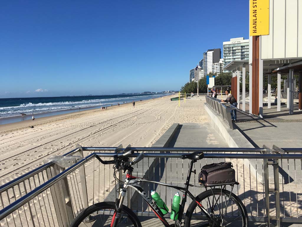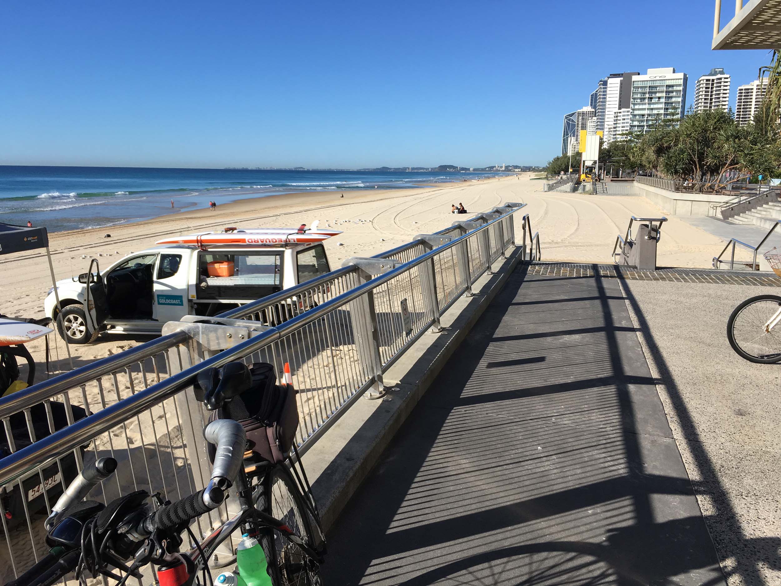 I left at 8:00am. I rode my normal Surfers/Spit via MacIntosh Park route to Broadbeach.