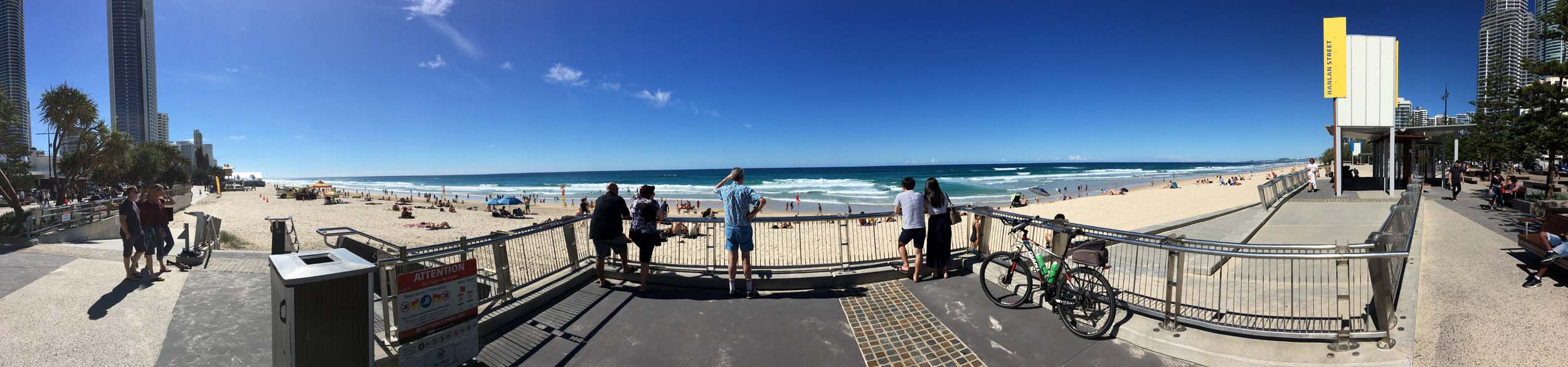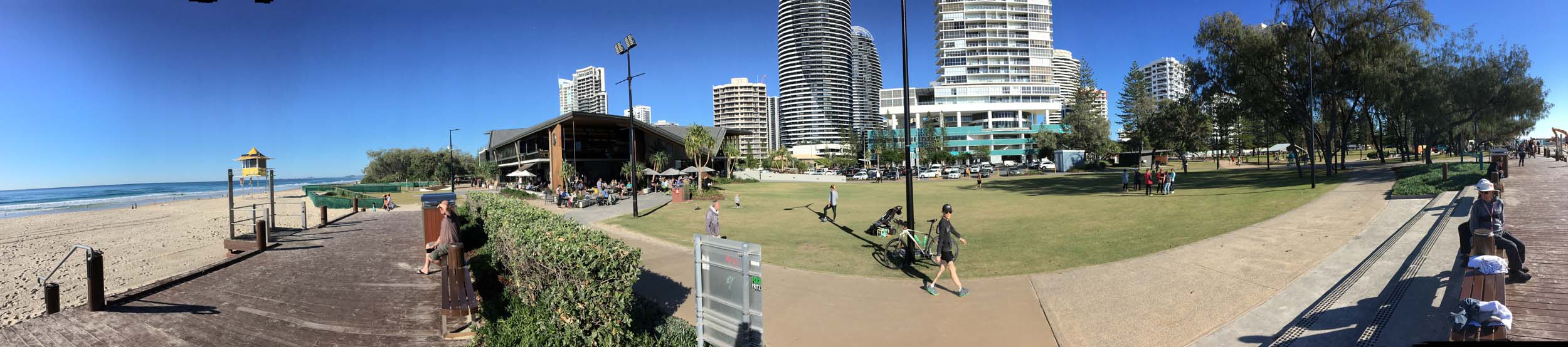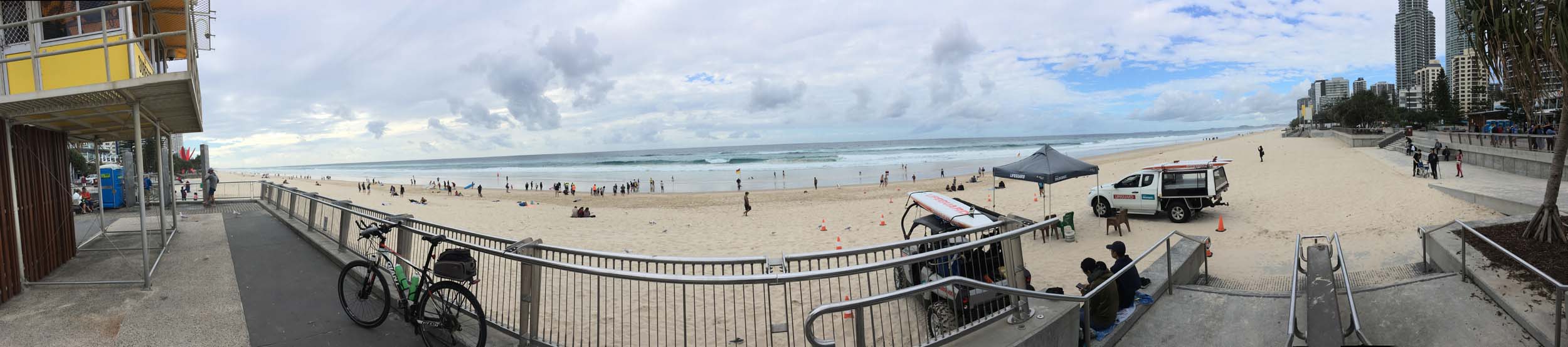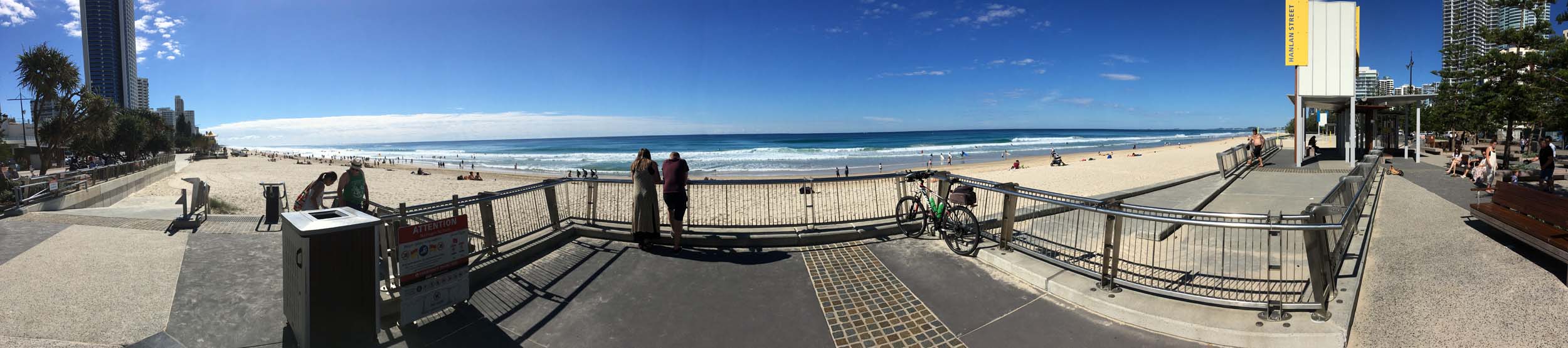I left at 8:00am. I rode my normal Surfers/Spit via MacIntosh Park route to Broadbeach.