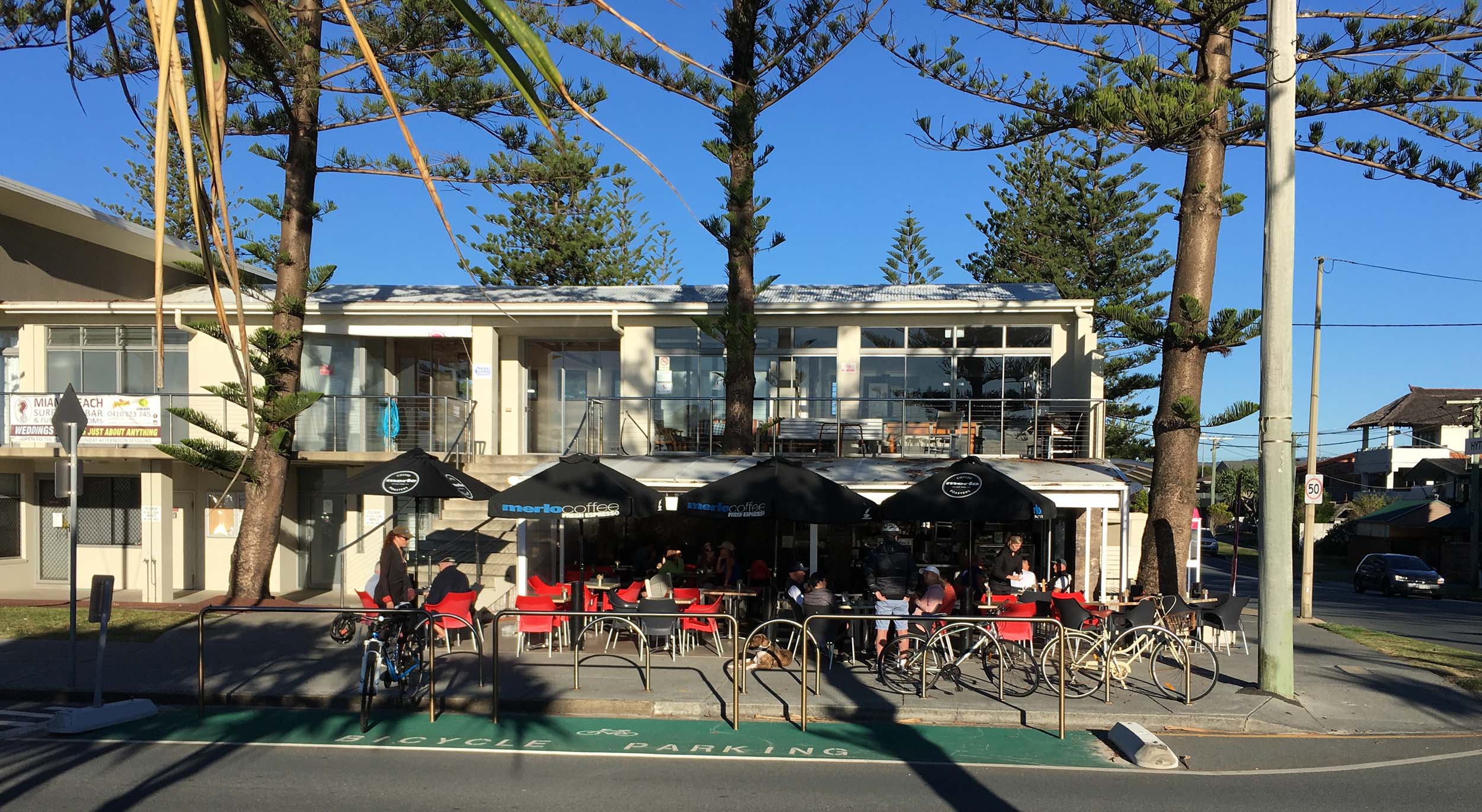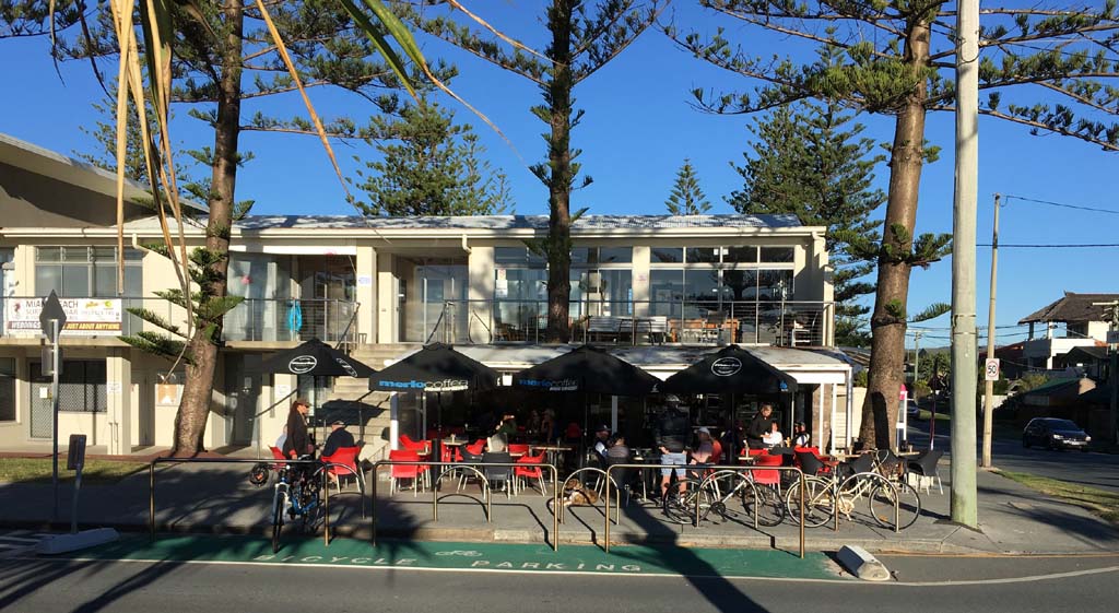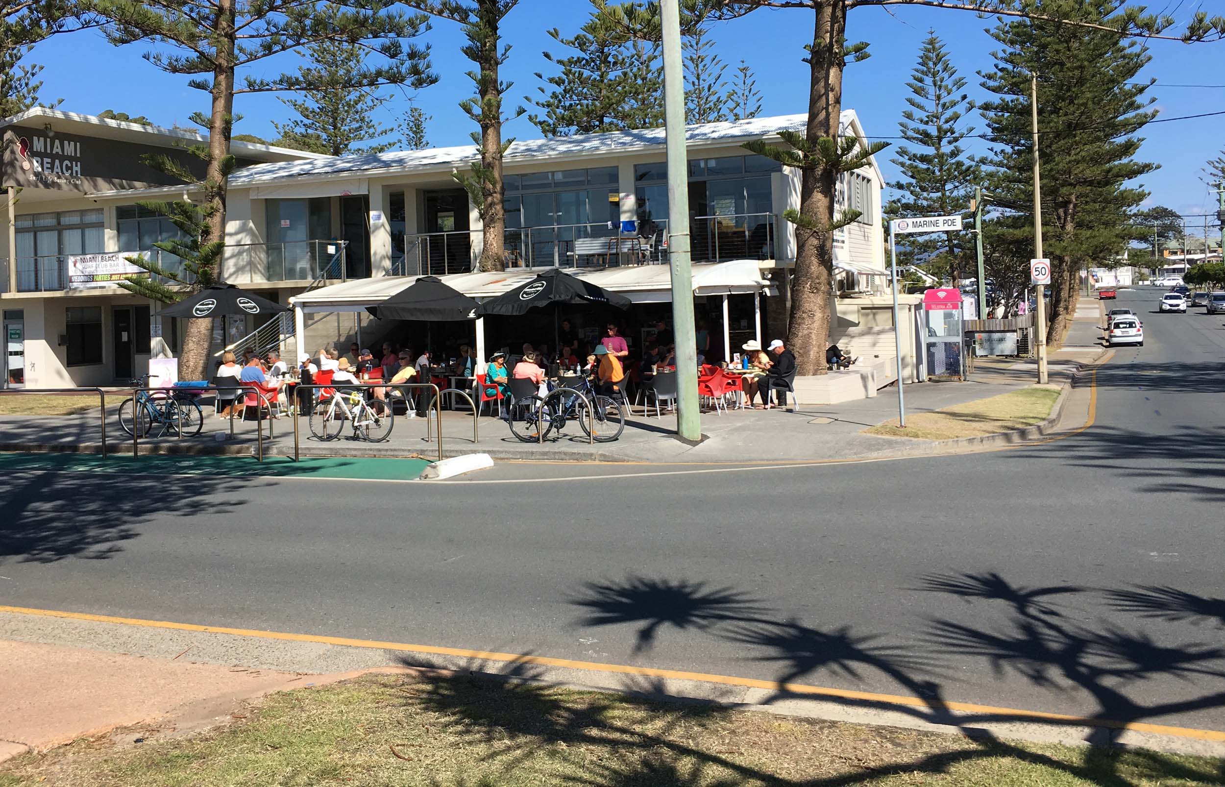 As usual, I rode Northward to my Lands End turnaround point. Check out the photo I took there of the Broadwater, how beautiful. I continued down to MacIntosh Is. rode 1 lap then over the bridge at Narrowneck. I continued on to Robbies' cafe beside the Miami Beach SLSC via Broadbeach. Stopped out the front, checked if there was a share table. Yep. SO I went and grabbed it. Mrs Robbie was on the till, ordered a coffee from her. Don't know where Robbie is currently, he last rode on 5th August according to Strava and was home. Robbies' cafe was jumping, I counted at least 40 people sitting at the tables. They have about 8 girls working behind the counter and kitchen. they were 'flat out'. I may have waited 5 minutes max, nothing really.