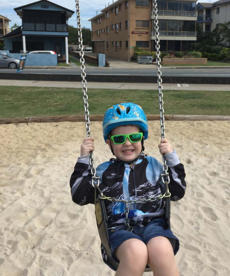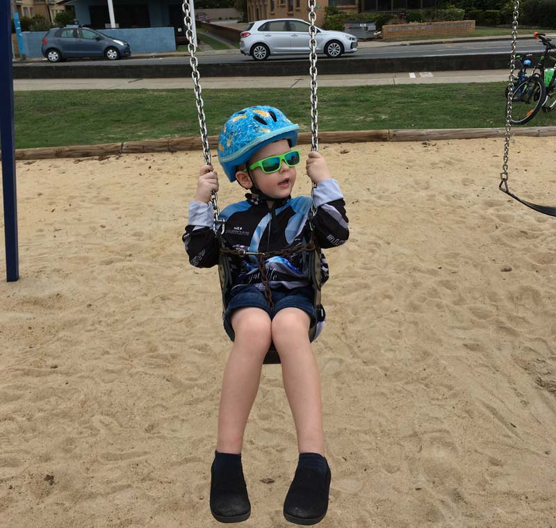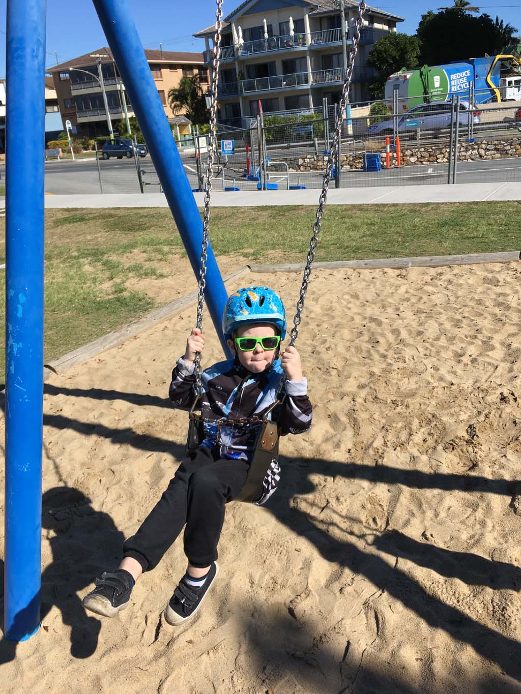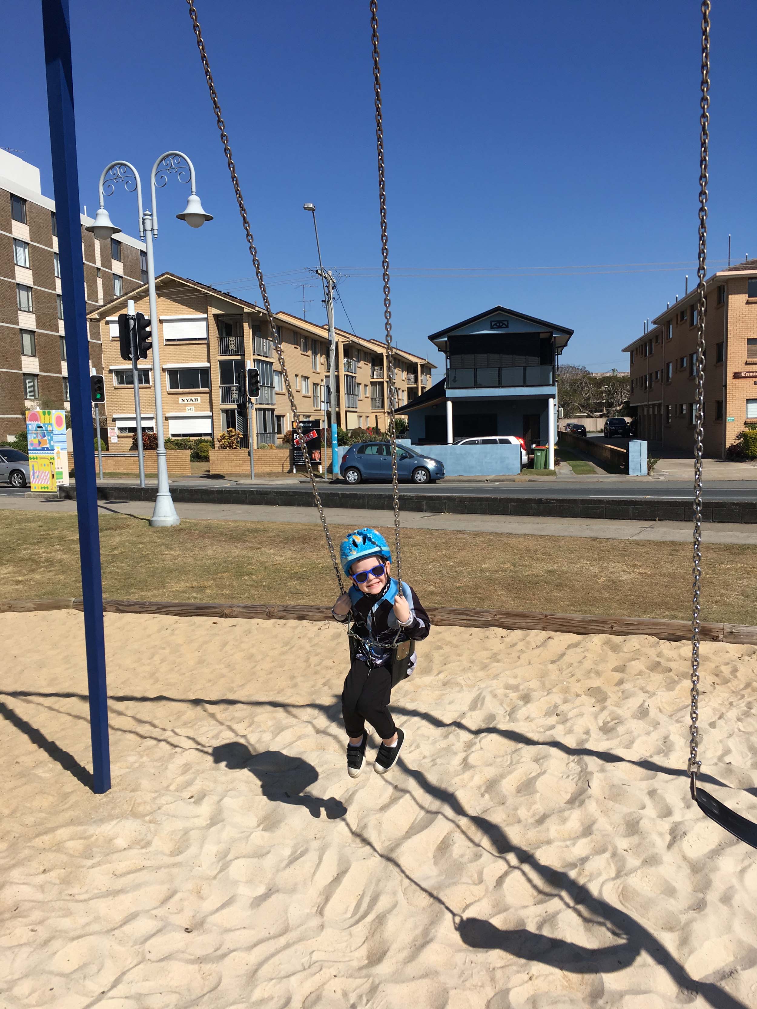 Enjoying the swing. Papa it squeaks. it needs oiling.