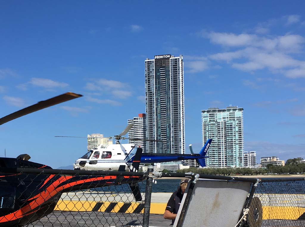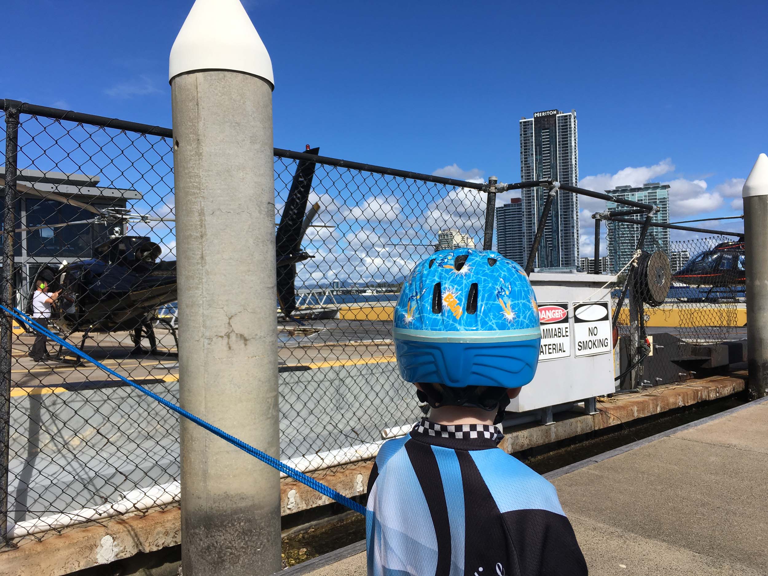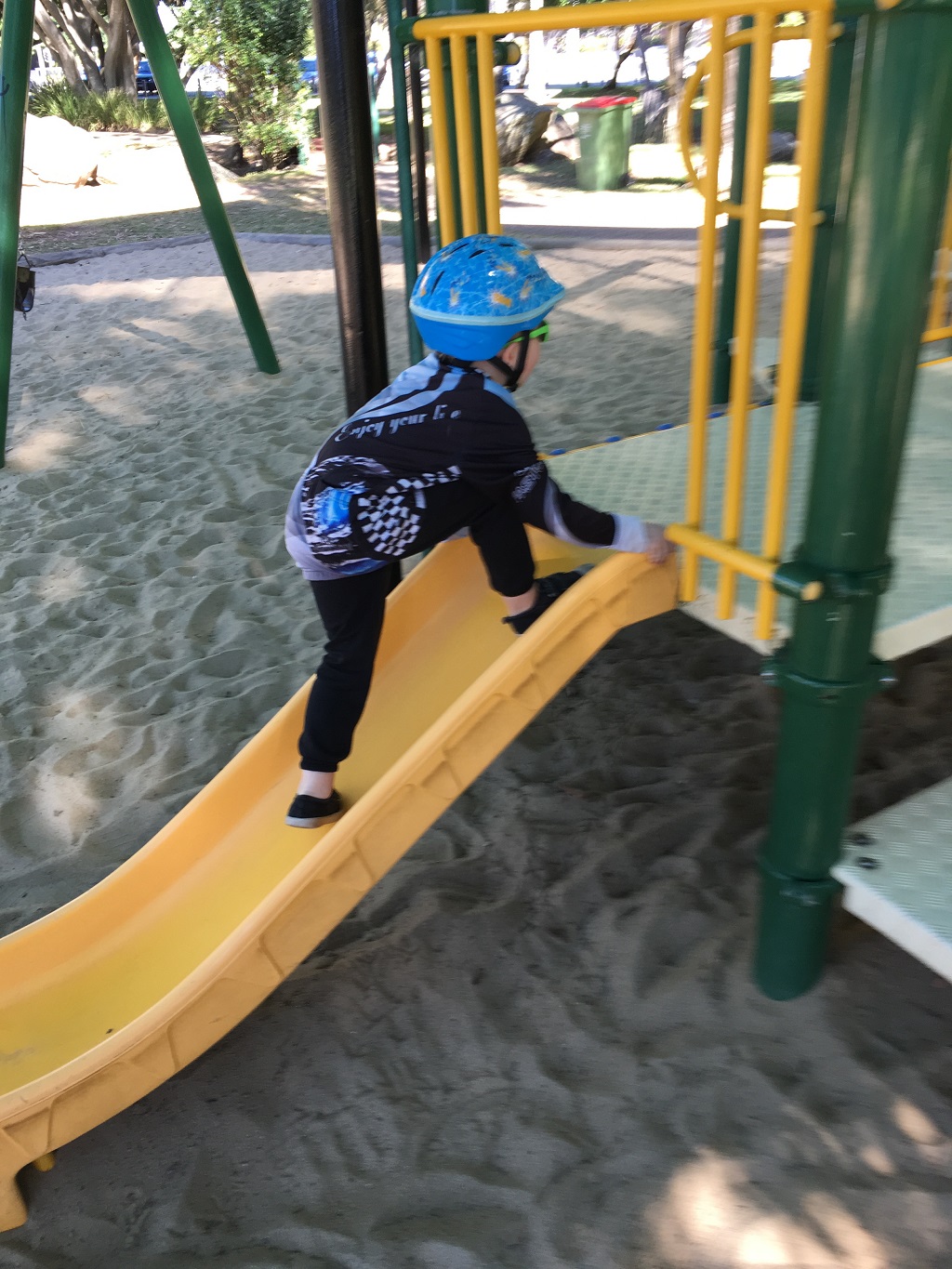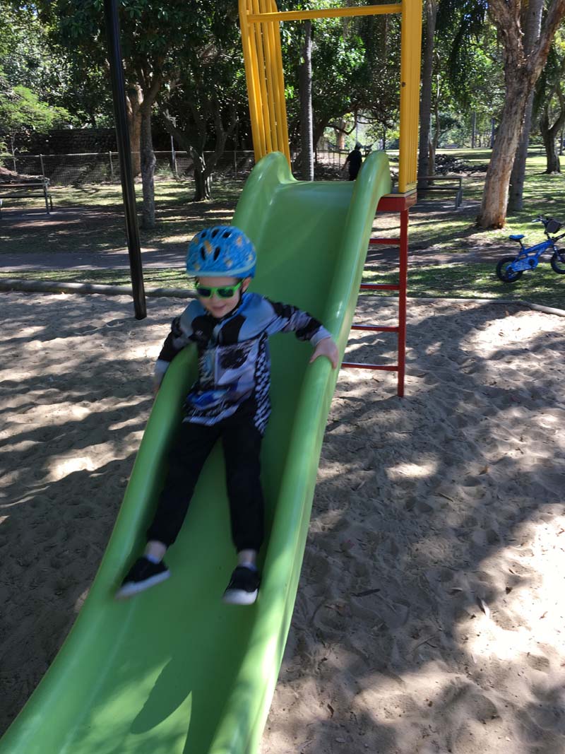 Next stop was the tunnel slide playground near the Southport SLSC, so we rode to there and Mase had numerous slides, then we headed off to Helitours again. Today, there was only two helicopter operating and we watched one do a circuit, take off, fly around and land. Mase was rapt.