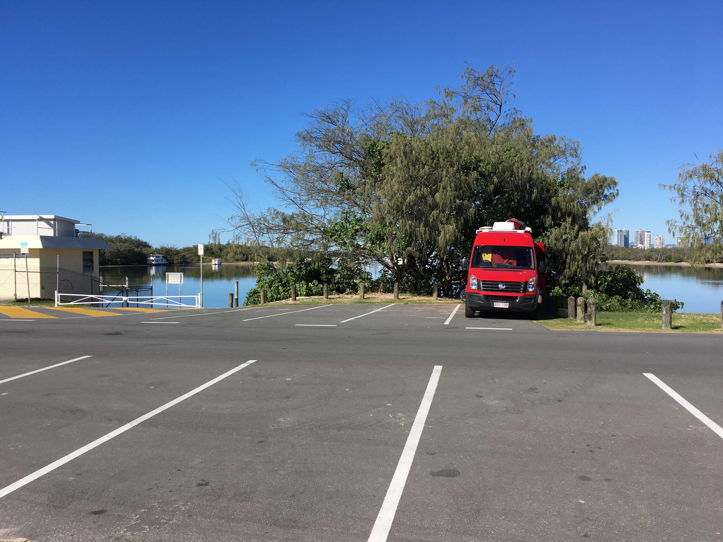 I saw my guy in the motorhome, he slept at Bum's Bay opposite Doug Jennings Park at the end of the Spit.