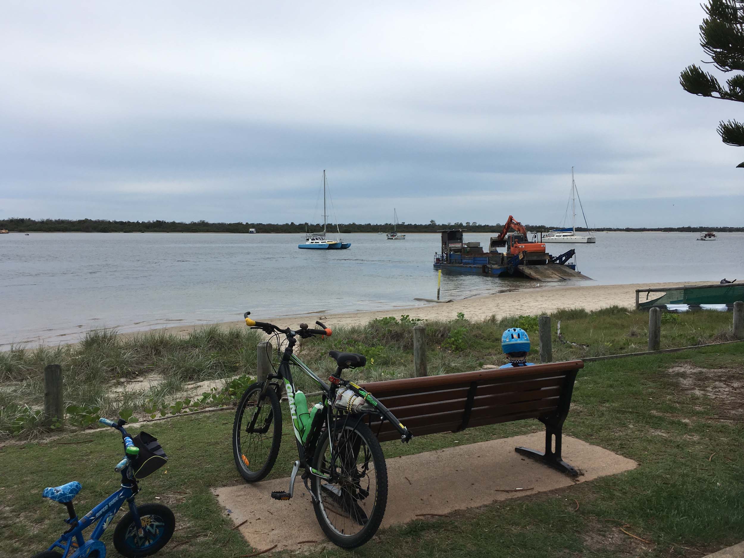 We rode along the shared path from our place, continued on past Susie Lou (the pride of the fleet). As we approached the Rockpool area, Mase told me that he was buggered and wanted me to connect the tagalong. I coerced him into riding to the Sundale Bridge over the Nerang river, a distance of 5.1kms.