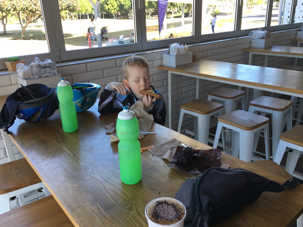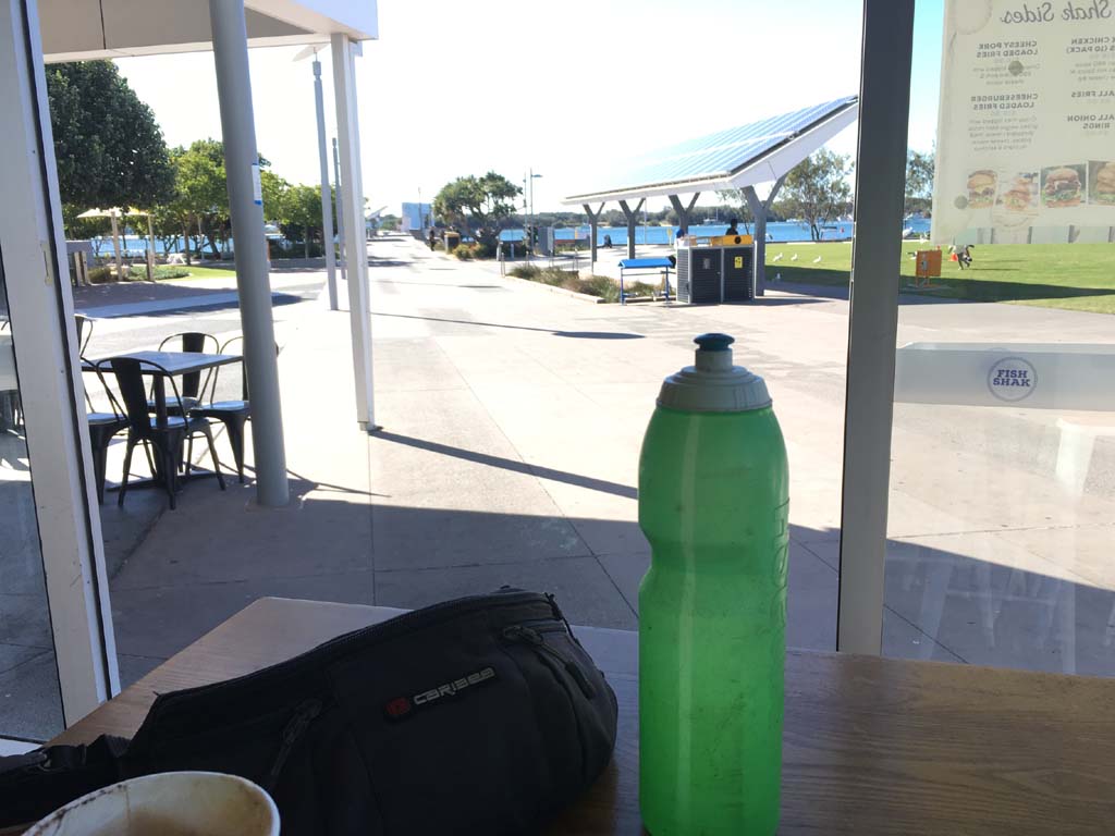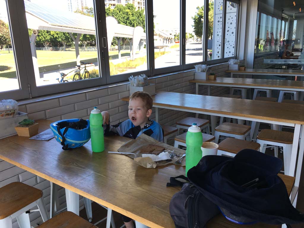 Stopped for a coffee at Cafe Rockpool after completing another lap of MacIntosh Is. Spoke to Kamal who is manager of cafe Rockpool. He asked when he would see Mase (grandson) again, I said soon. After coffee I headed back home. Another brilliant ride.