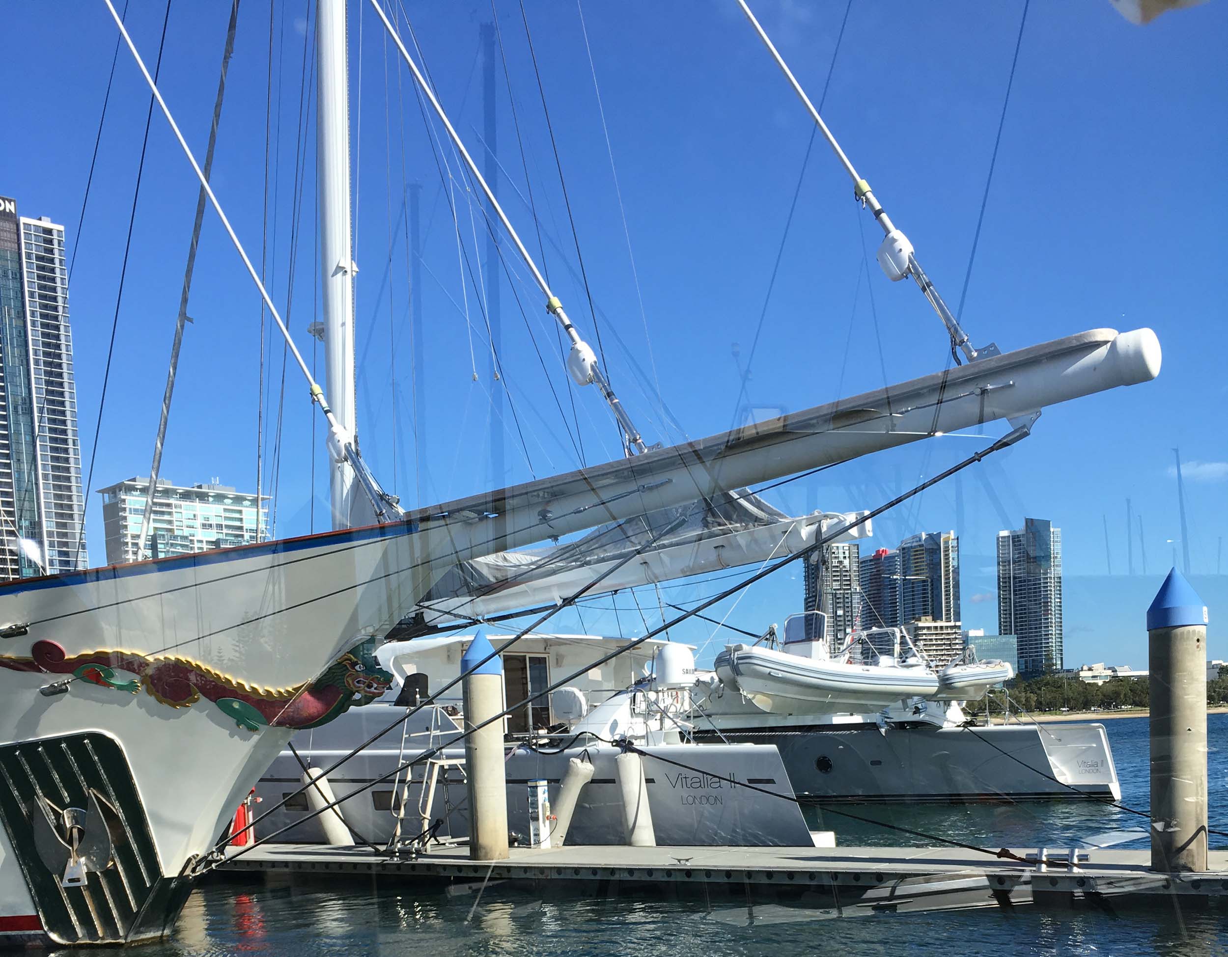 Rode to the end of the Broadwater Spit then around the shared path that surround the Doug Jennings park. There was 'my guy in the motorhome' parked in his usual spot. See photo below. Back along Seaworld Drive, checked out Seaworld, looking for their monorail but to no avail. Past the Southport YC and as I was feeling tired, I headed to cafe Rockpool for a coffee then headed back to home. Another brilliant ride.