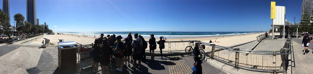 Left Robbies and headed back to Surfers to take my daily 'weather' photos. I usually take 4 and pick the best one. Today while taking photos I had Rochesdale State High school students and teacher behind me, so I let them in front. The teacher was telling them about Surfers etc. I didn't stay long and headed off to the Spit.