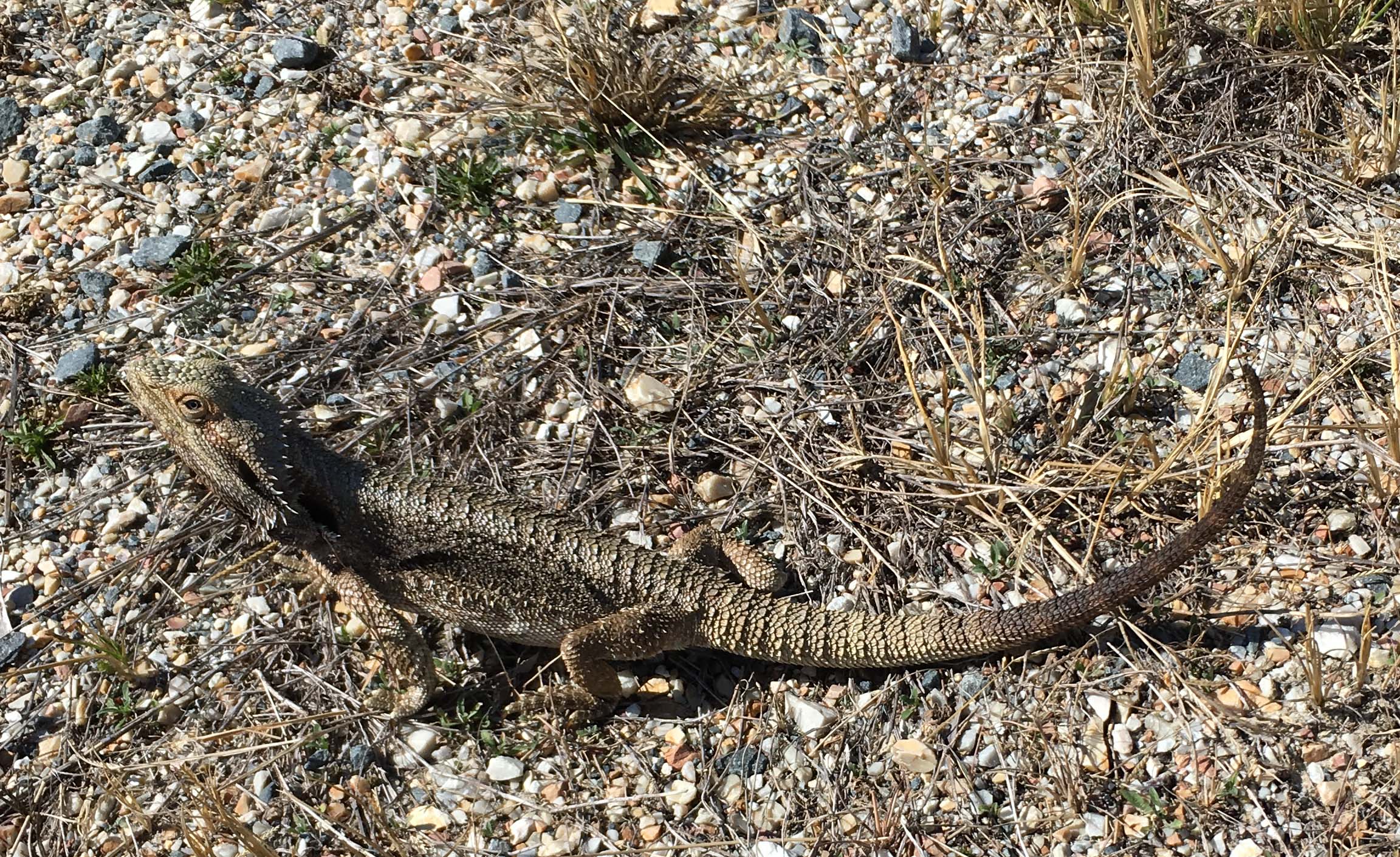 As I do everytime, I ride the gravel Federation Walk track, I keep my eyes open for any wildlife. Today, I was in luck, I saw a 'bearded dragon' I think that is what it is. It was just standing beside the track, I stopped, put my bike down, got out my phone and tried to sneak back to him without scaring him. This is pretty hard when you are as large as me and wearing a bright orange cycling top. Anyway, he didn't move, so I keep taking photos of him as I moved closer. He was extremely photogenic and didn't move at all. See photo below. Continued onto the Spit.