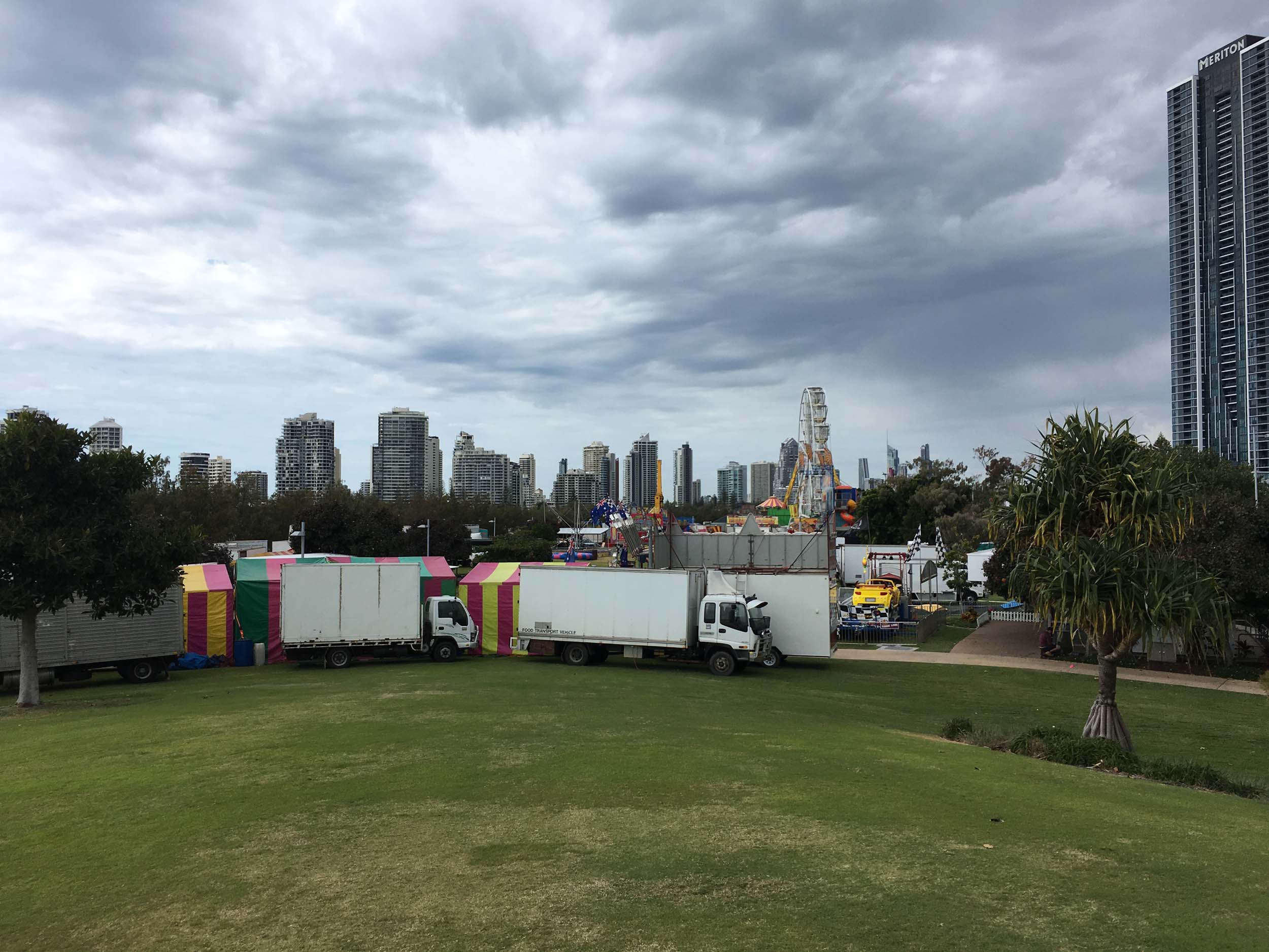 I didn't ride to the end of the Broadwater Spit, but continued back along Seaworld Dve, past the Southport YC and then checked out the Gold Coast Show preparations, before stopping at Cafe Rockpool for a coffee and a chat with Kamal and Christina.