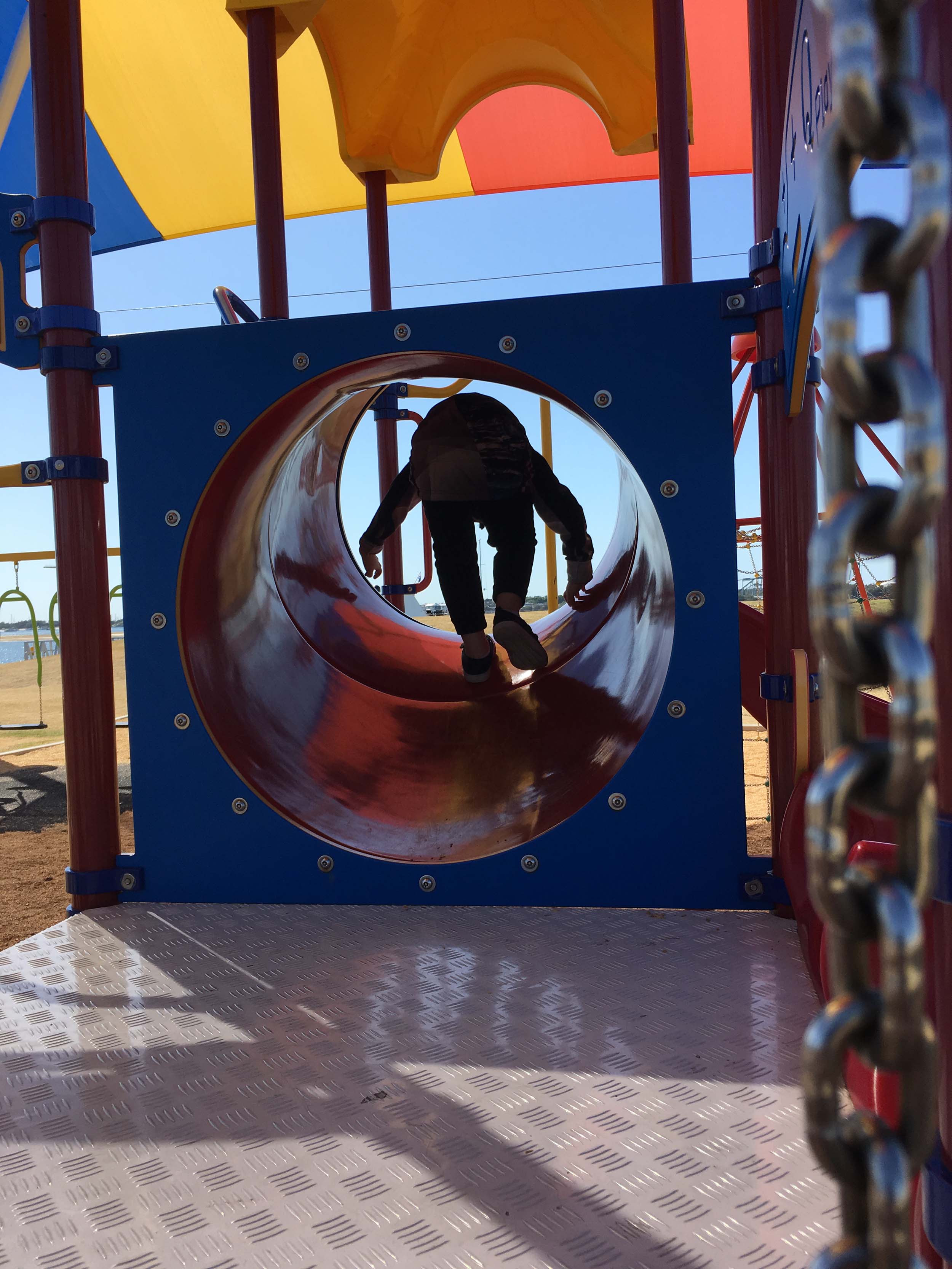 Mase wanted to visit a number of playgrounds. So that was our mission.