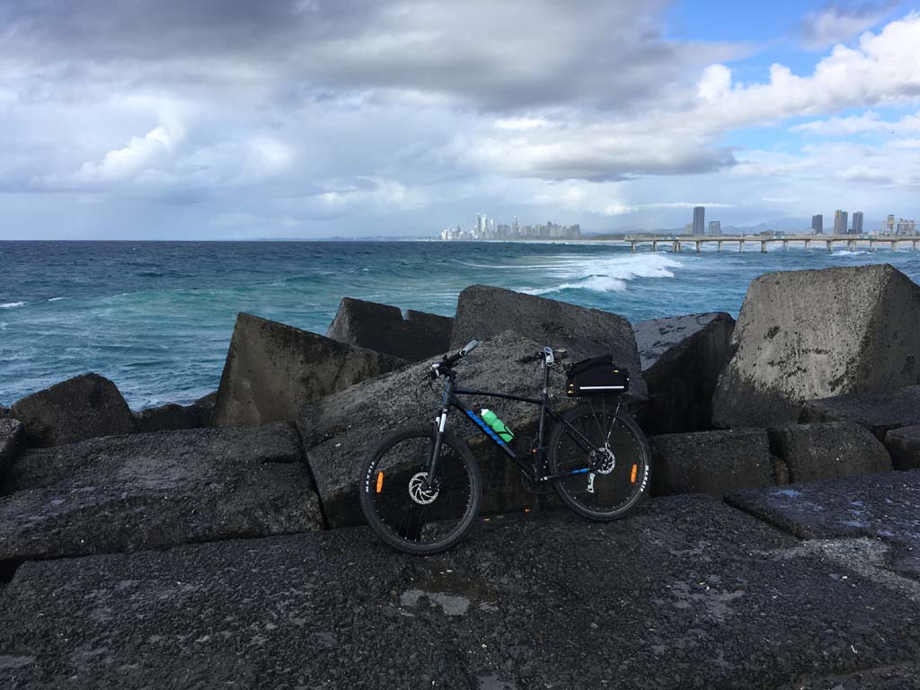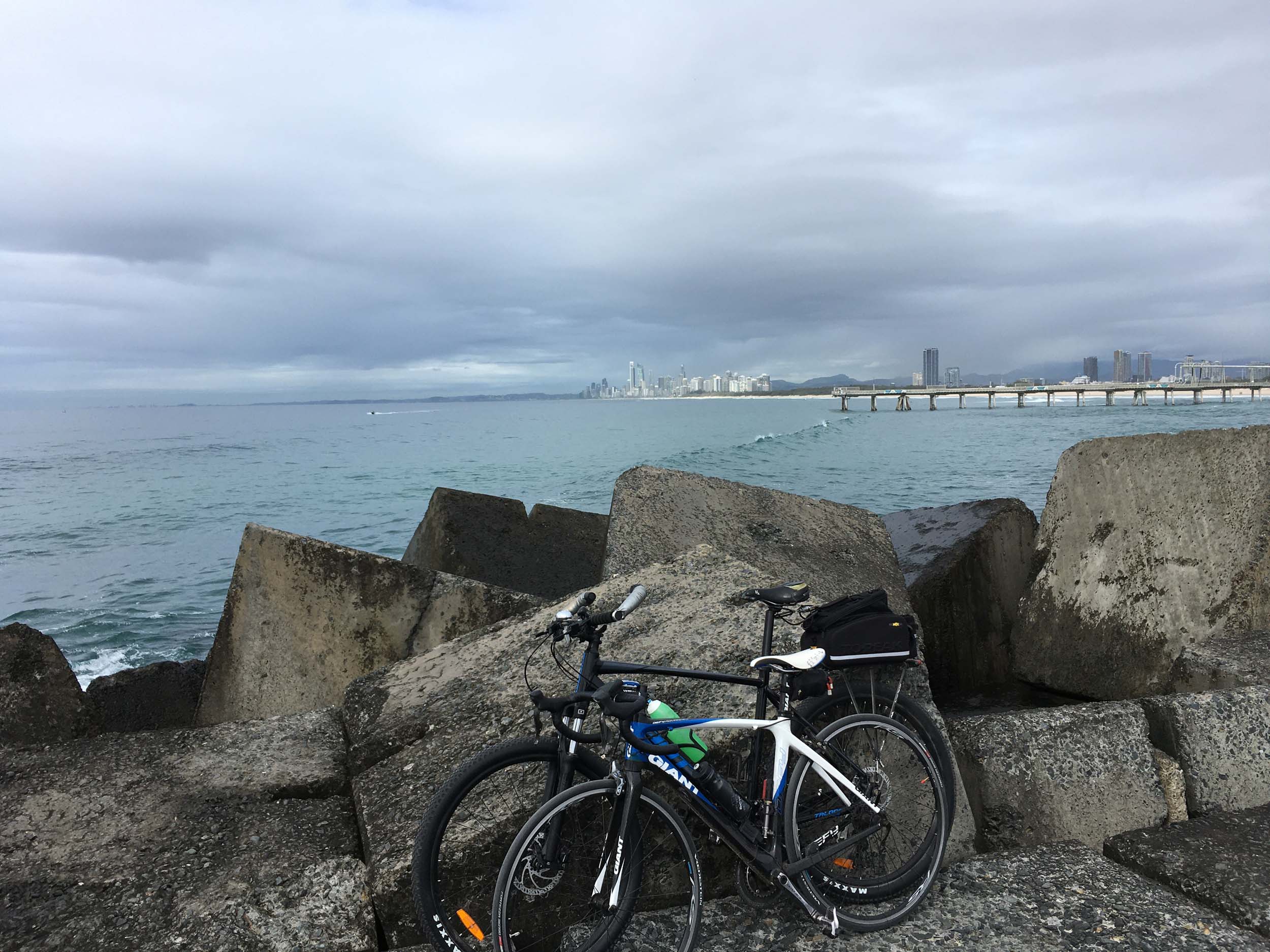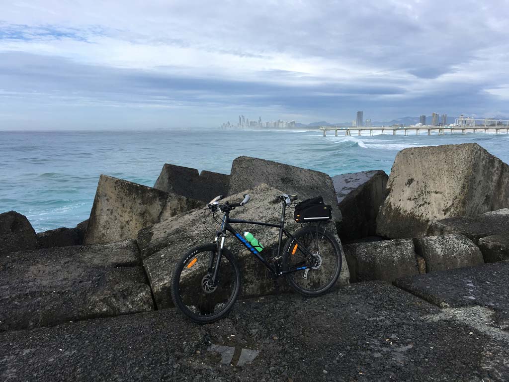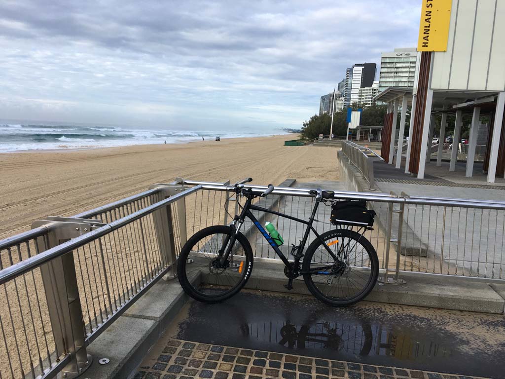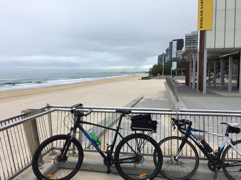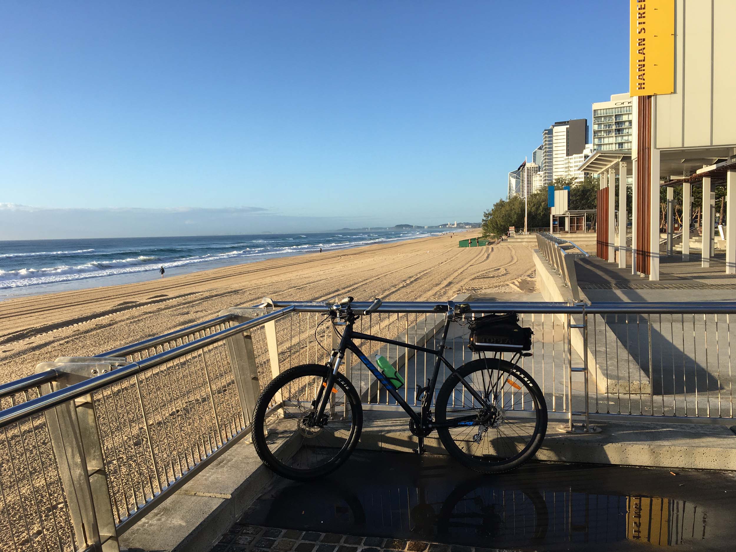 Home to Turnaround Pt down to Surfers via GC600 Park to Robbies Cafe to The Spit (both ends) then back through GC600 Park back to the Turnaround Pt and finally back Home about 60kms.