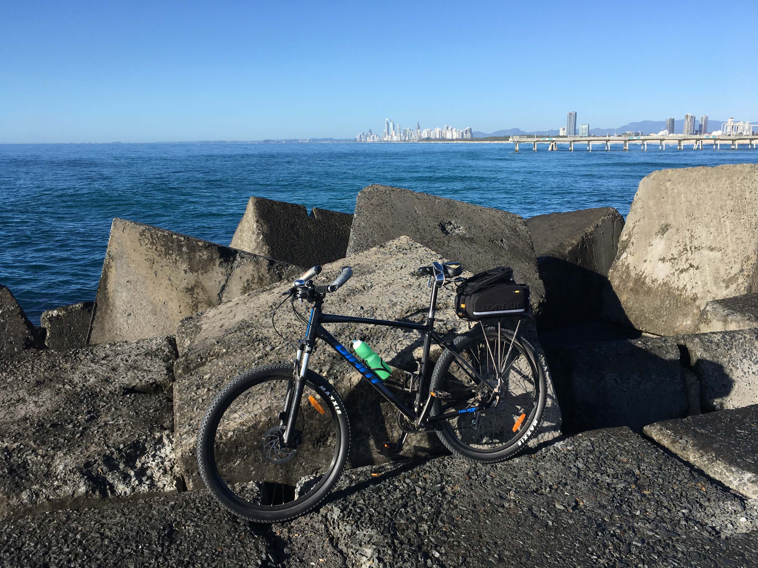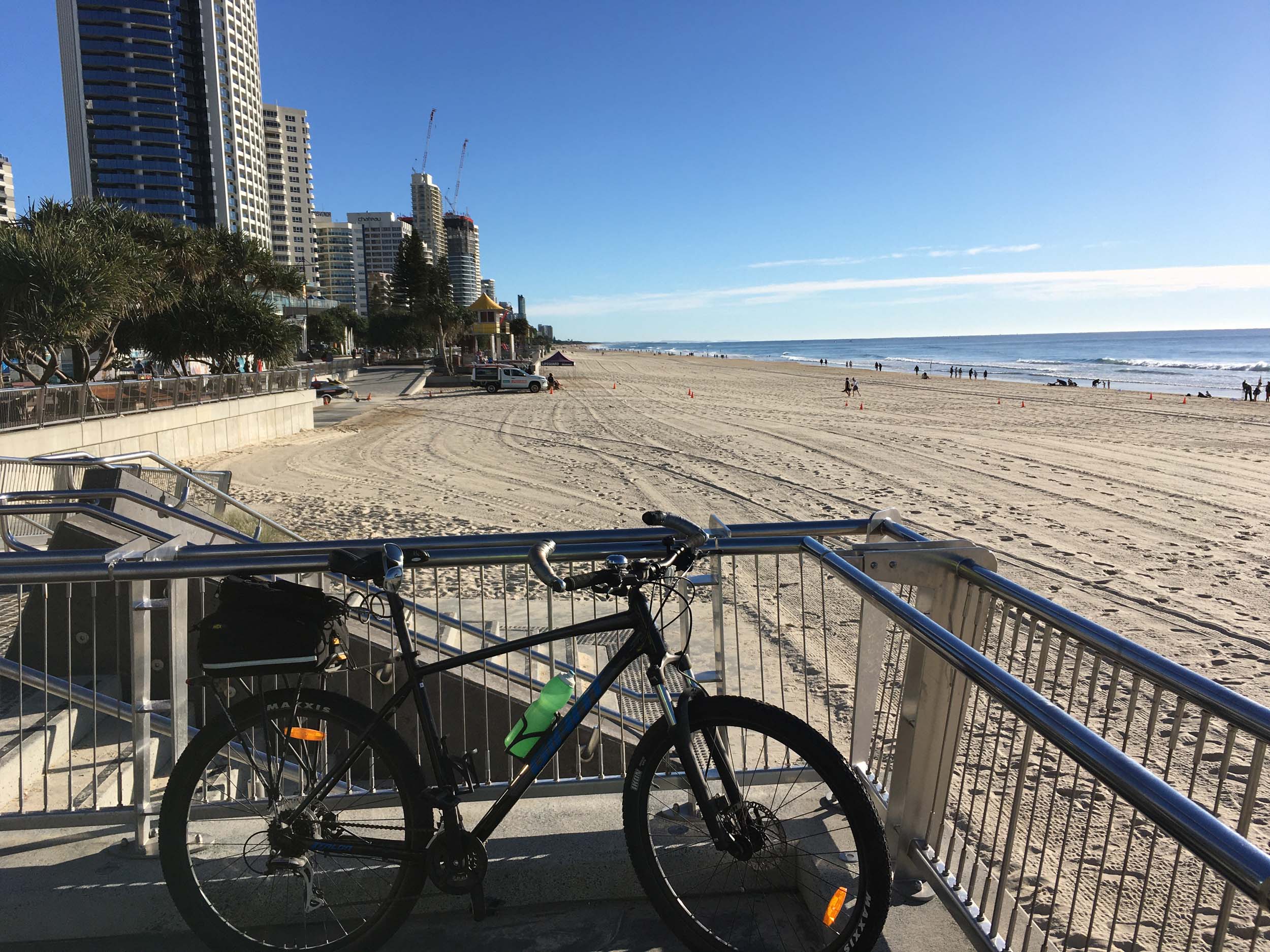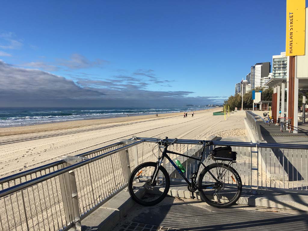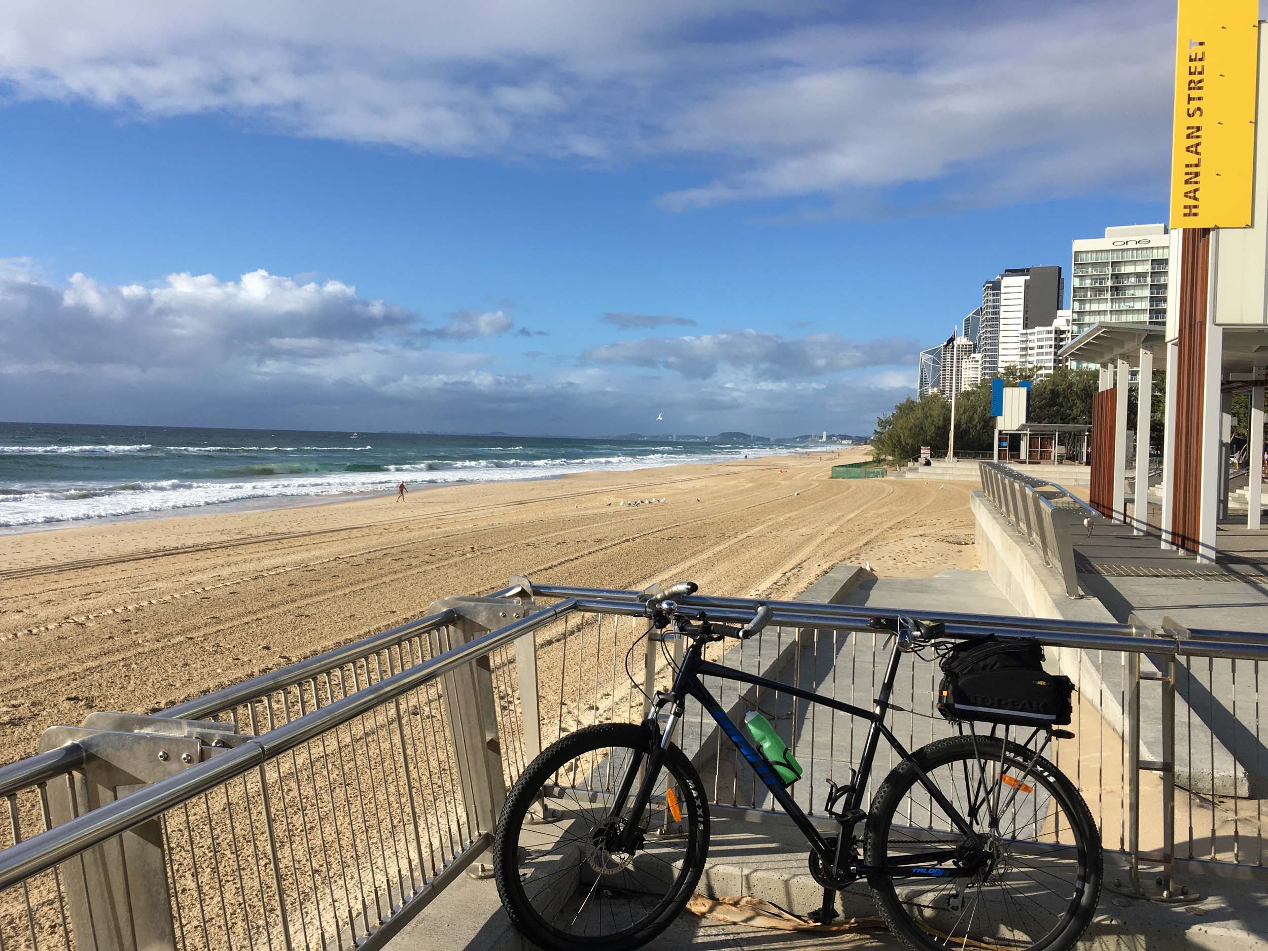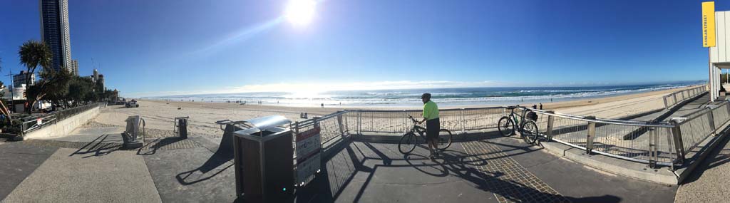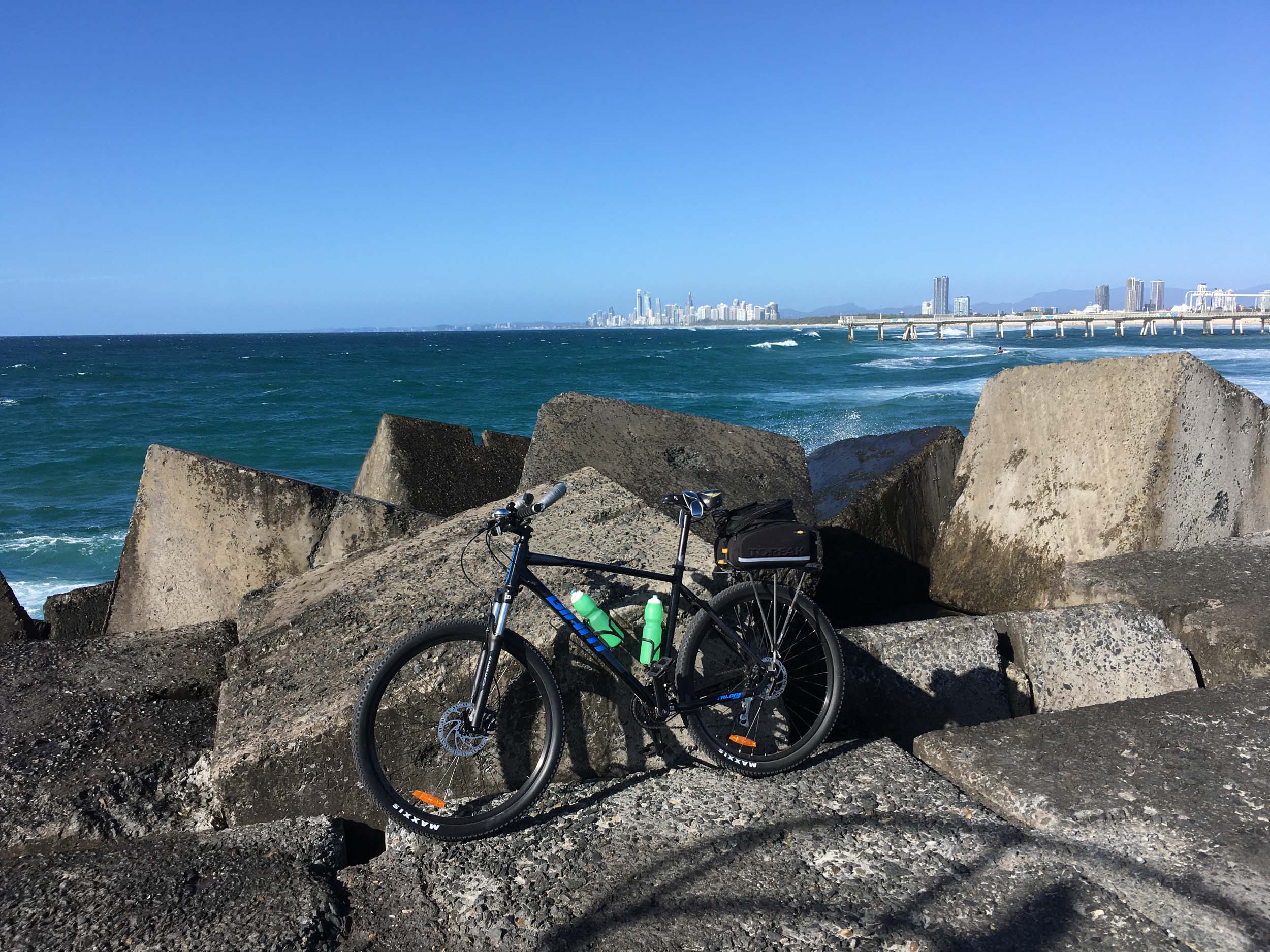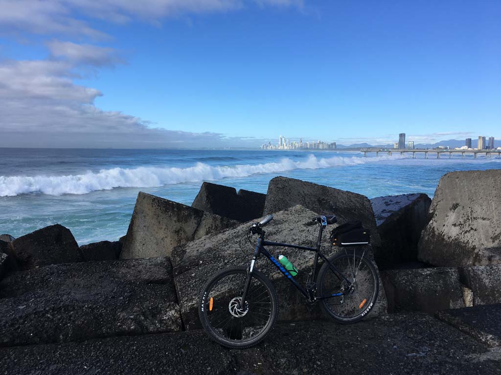 Home to Turnaround Pt down to Surfers via GC600 Park to Robbies Cafe to The Spit (both ends) then back through GC600 Park back to the Turnaround Pt and finally back Home about 60kms.